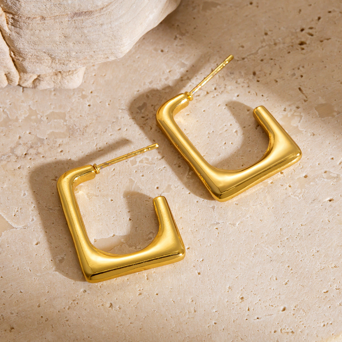 Cross-Border Best-Selling Titanium Steel Earrings, 18K Gold Plated Irregular Square Studs for Women's Daily Commute