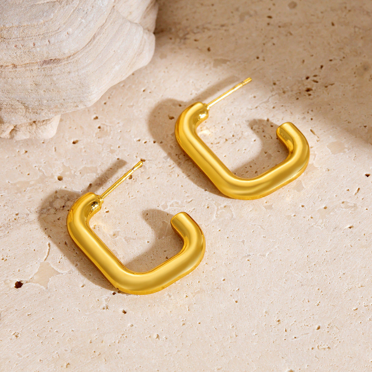 Wholesale Ins Minimalist Stainless Steel Earrings, 18K Gold Plated Strip C-Shaped Titanium Steel Retro Luxury Studs