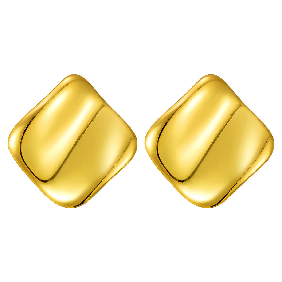 New - style Irregular Smooth Earrings: Square and Round Shapes with Concave - Convex Effect, British - style Stainless Steel Golden Studs, Fashionable & Unique Design