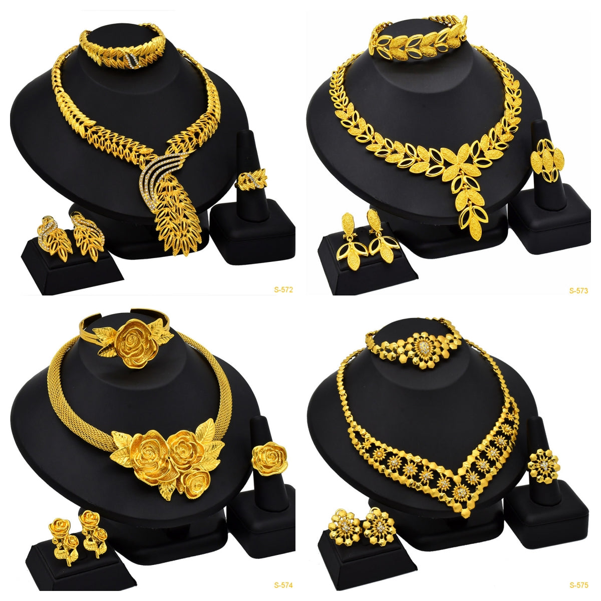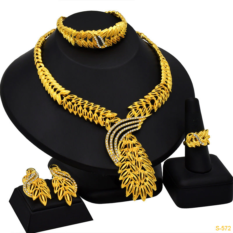 24K Dubai Gold Jewelry Set, Trendy Style for Europe, America & Africa, 4-Piece Jewelry with Earrings, Factory In-Stock Wholesale