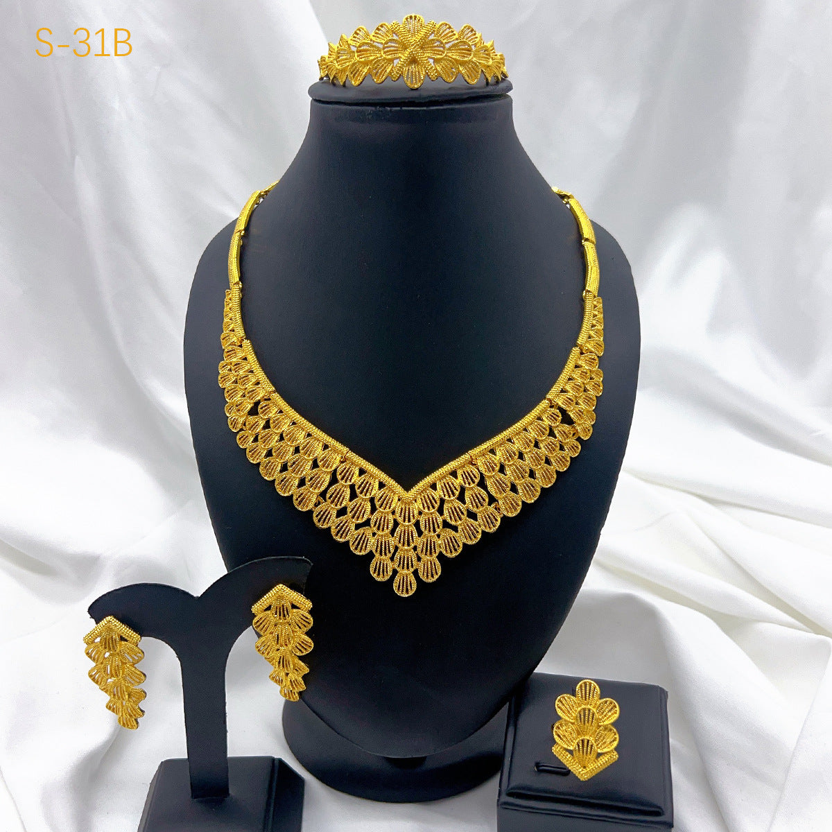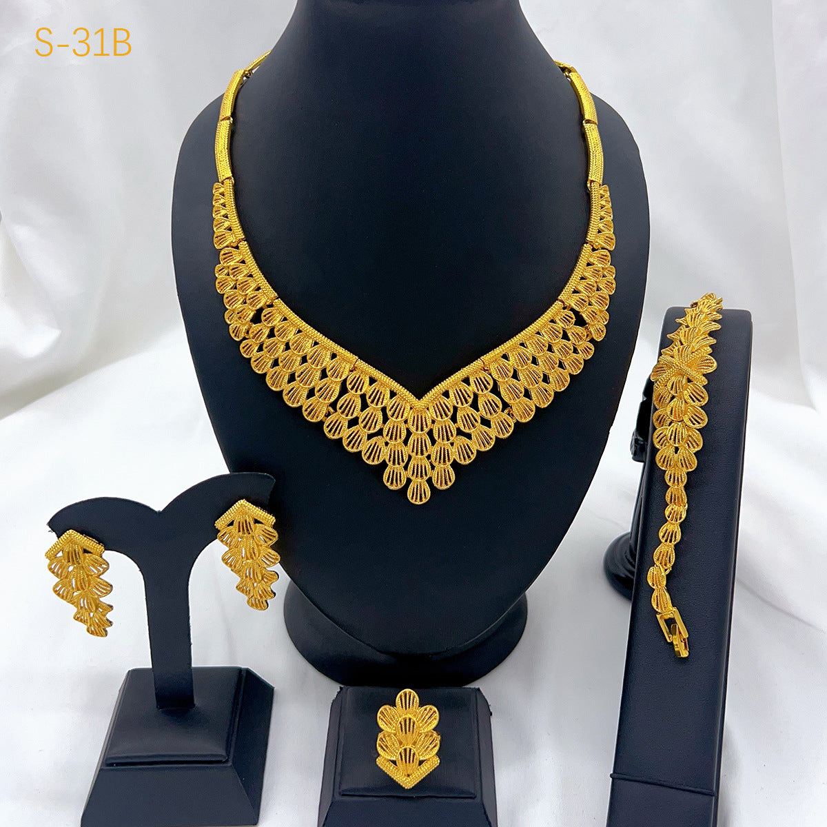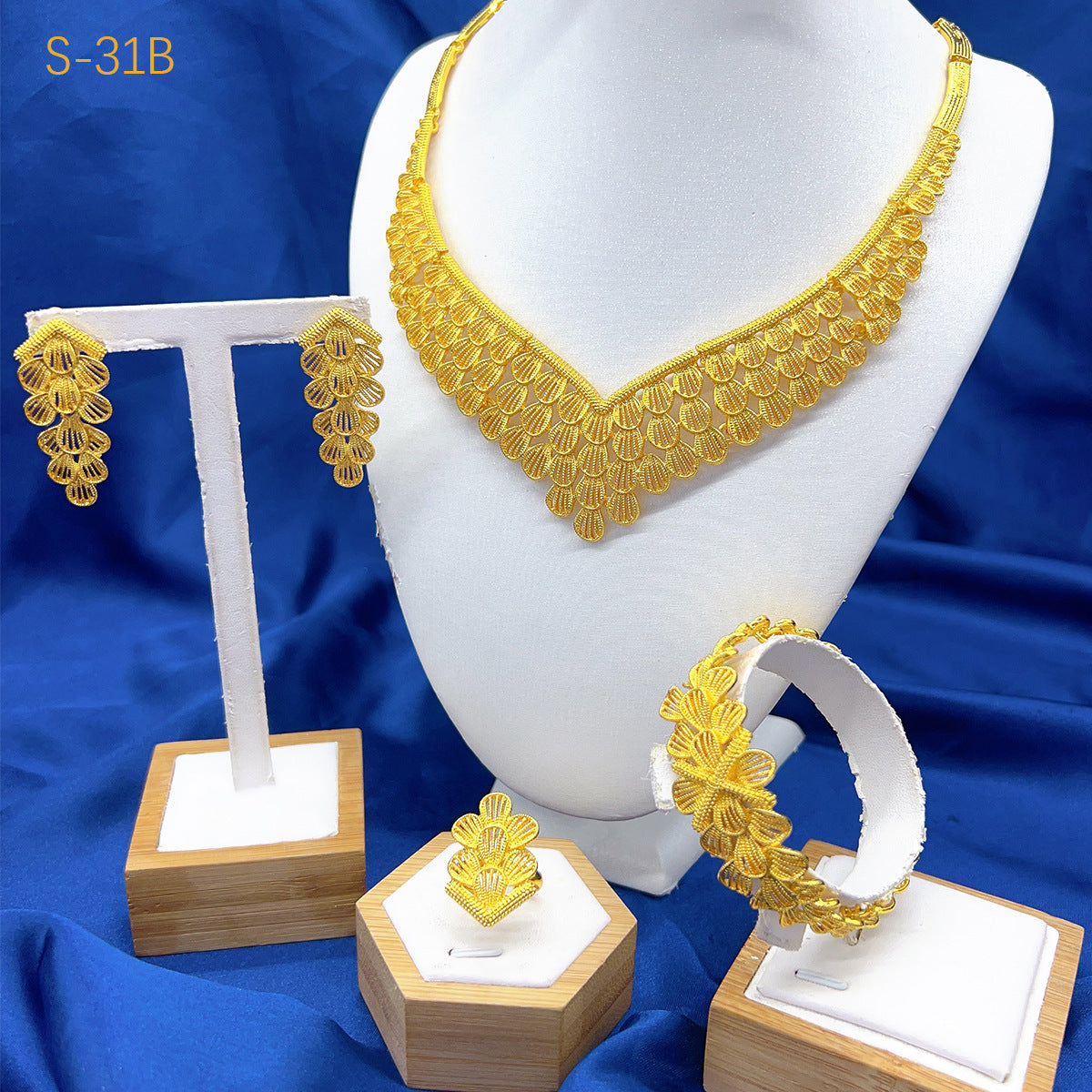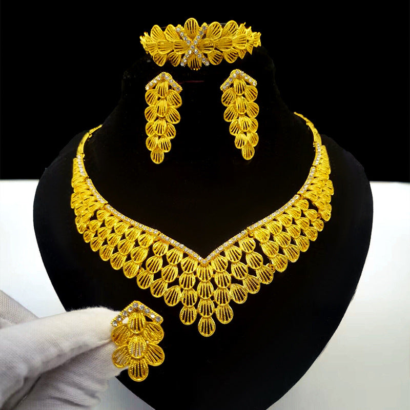 24K Gold Plated Jewelry Set, Bridal Necklace Earrings Ring Bracelet for Middle East, Dubai, India & Nigeria, Wholesale