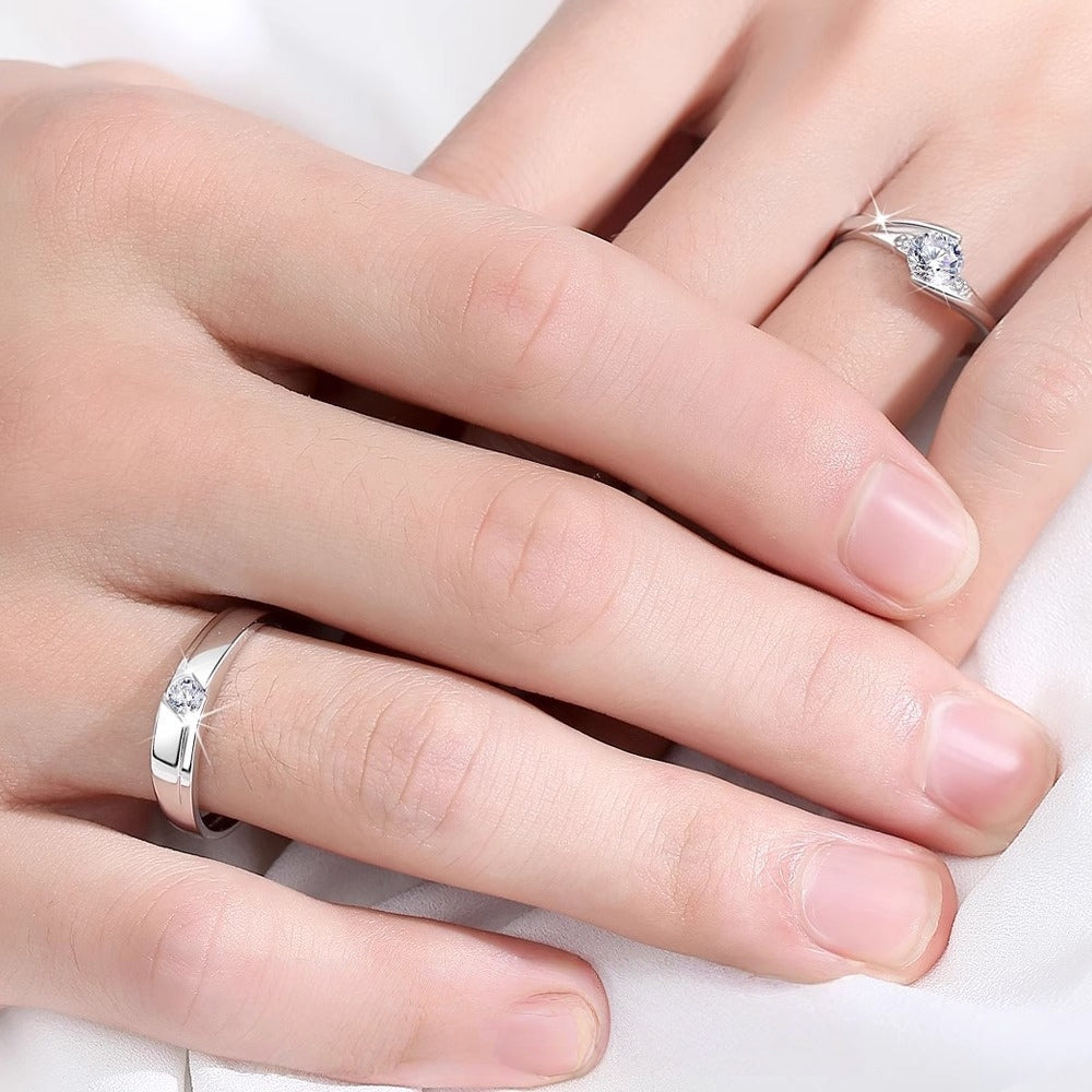 925 Sterling Silver Moissanite Couple Rings, D-Color Simulated Wedding Bands, Niche Luxury Cross-Border Gift for Her