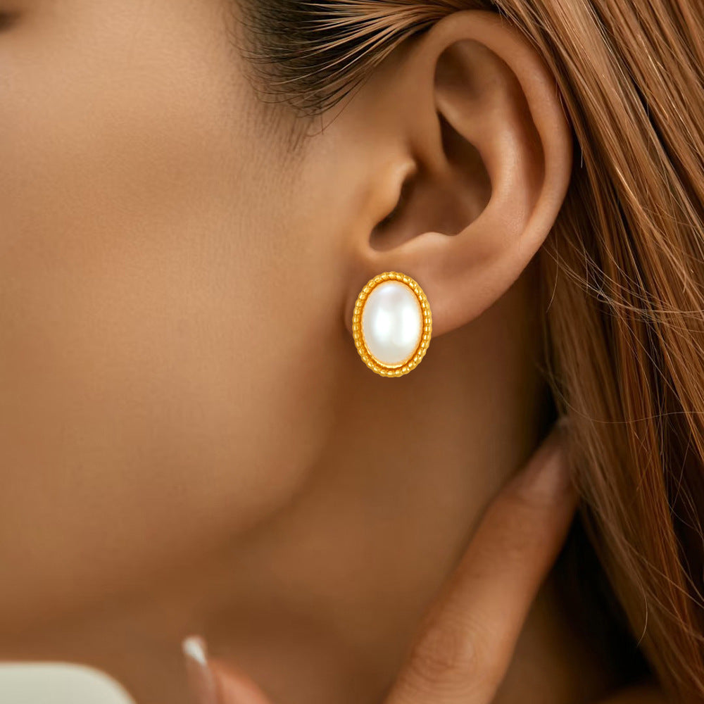 New Fashion Minimalist Chanel-Style Oval Pearl Stainless Steel Stud Earrings, Versatile Elegant Earrings for Women Wholesale