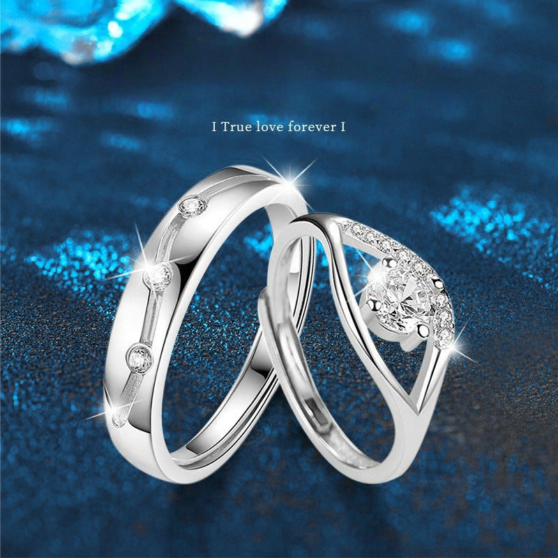 925 Sterling Silver Moissanite Fated Couple Rings, Simple Open Adjustable DIY Jewelry - Perfect for Lovers