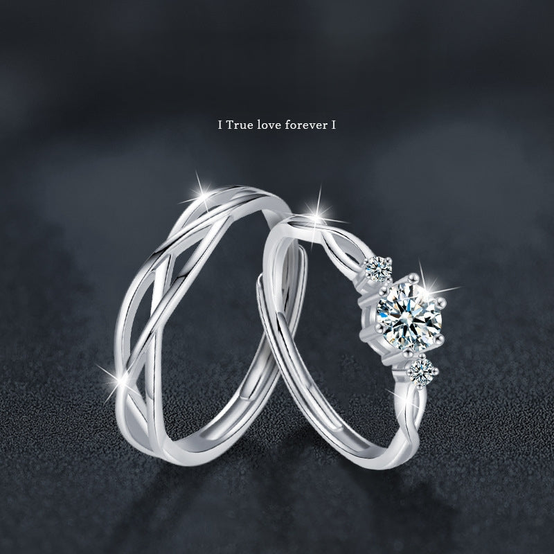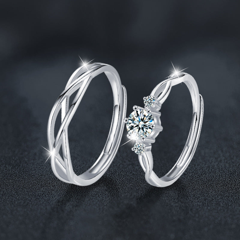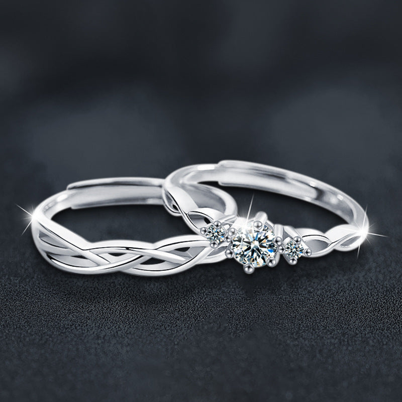 S925 Sterling Silver Love - Entangled Black Hair Couple Rings, Simple Korean - Style Open Moissanite Rings - Ideal Engagement & Wedding Gift