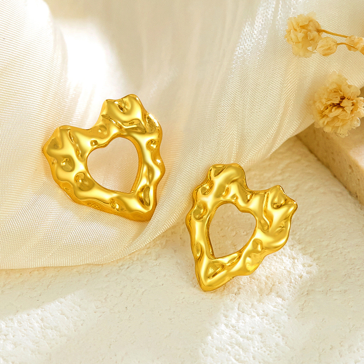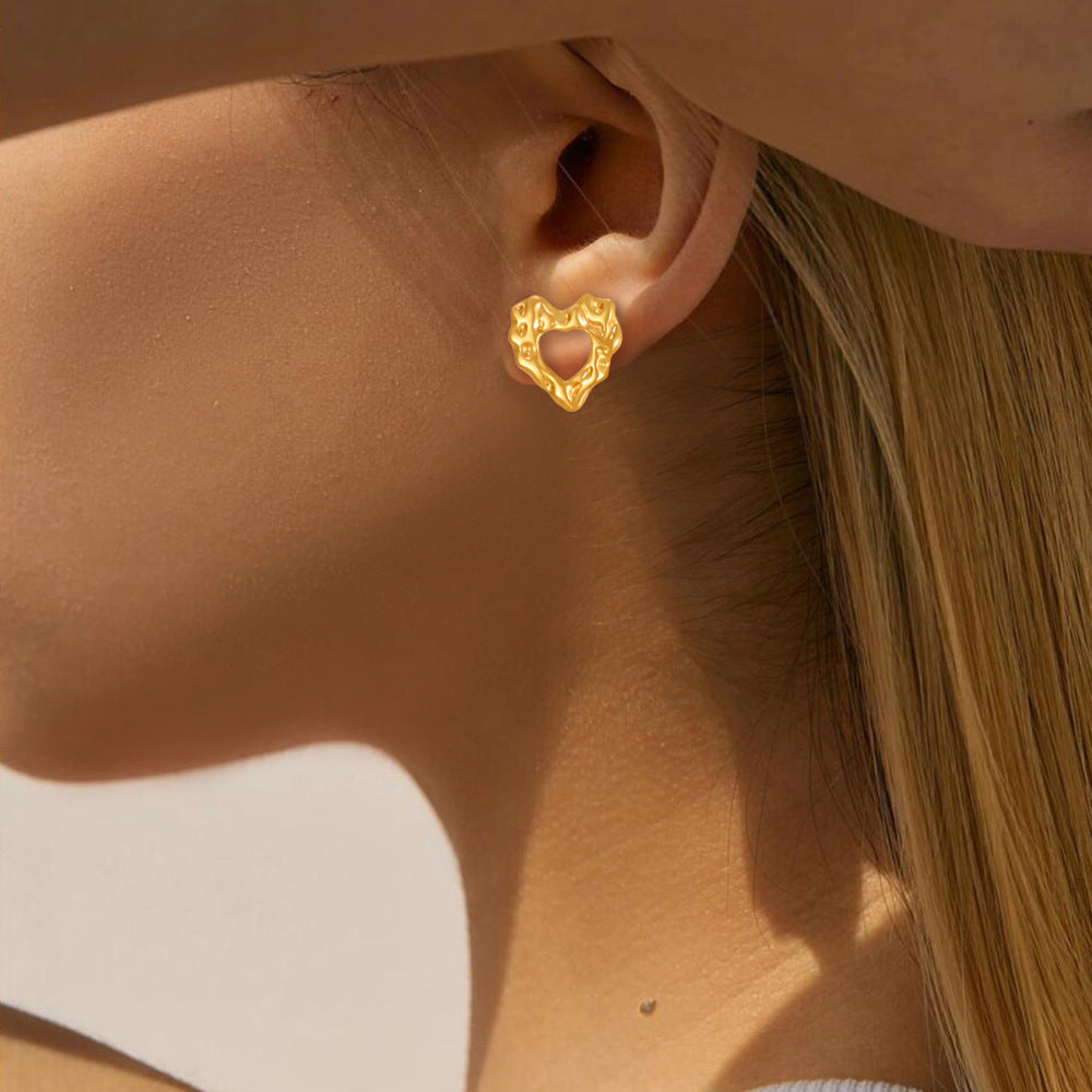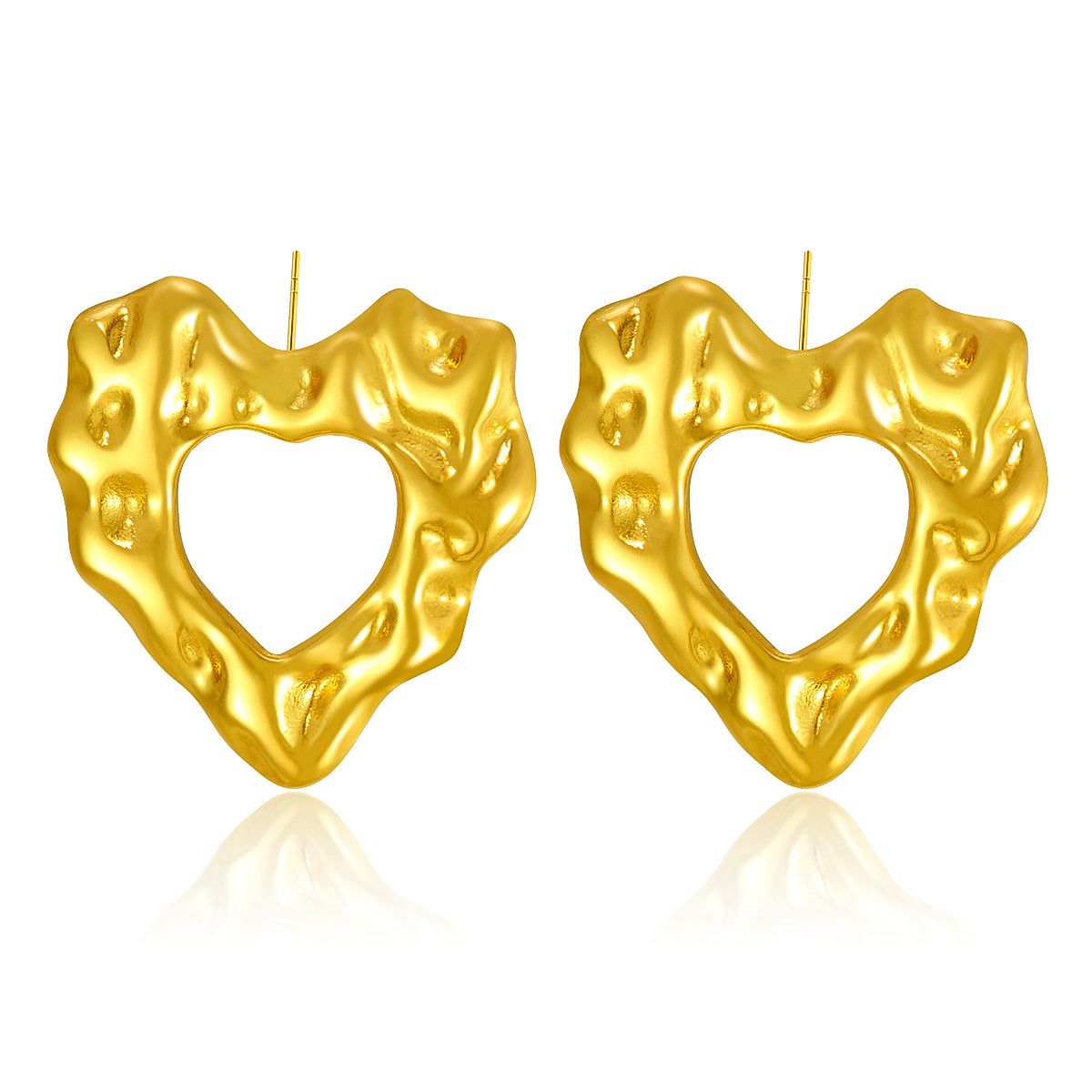 Cross-Border Euro-American Titanium Steel Pleated Geometric Earrings for Women, New Cross-Border Irregular Heart Stud Earrings, Vintage Trendy Ear Jewelry