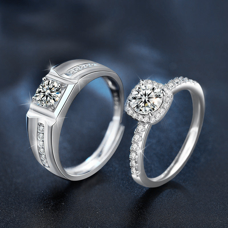 S925 Sterling Silver Sugar Cube Moissanite Couple Rings, Minimalist Quiet Luxury Accessories - Perfect Valentine's Gift