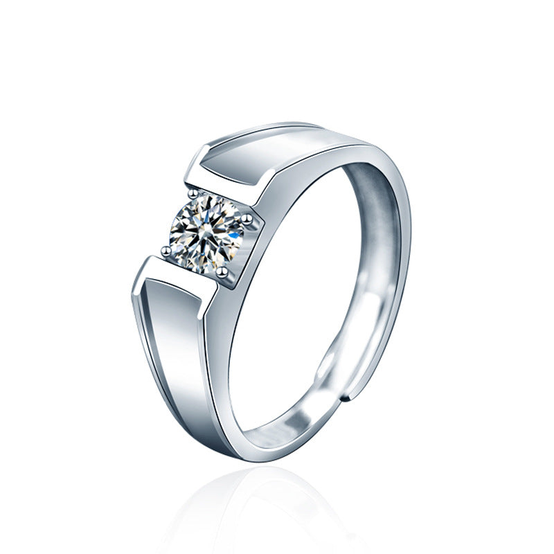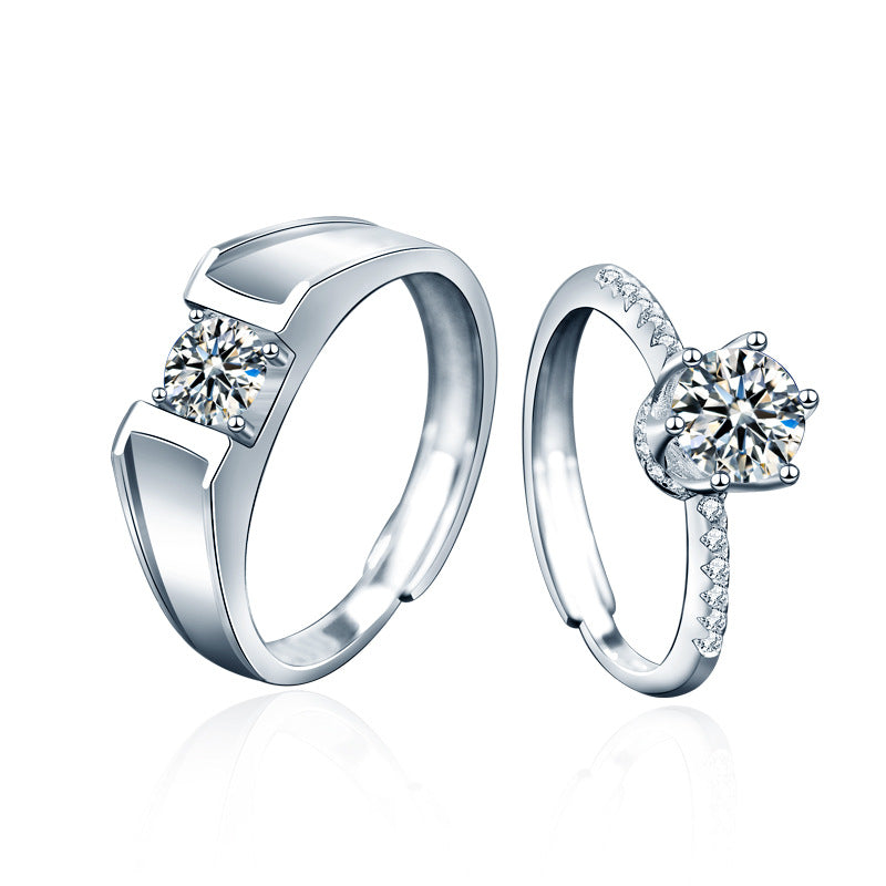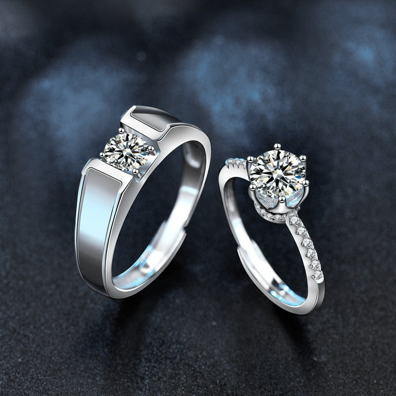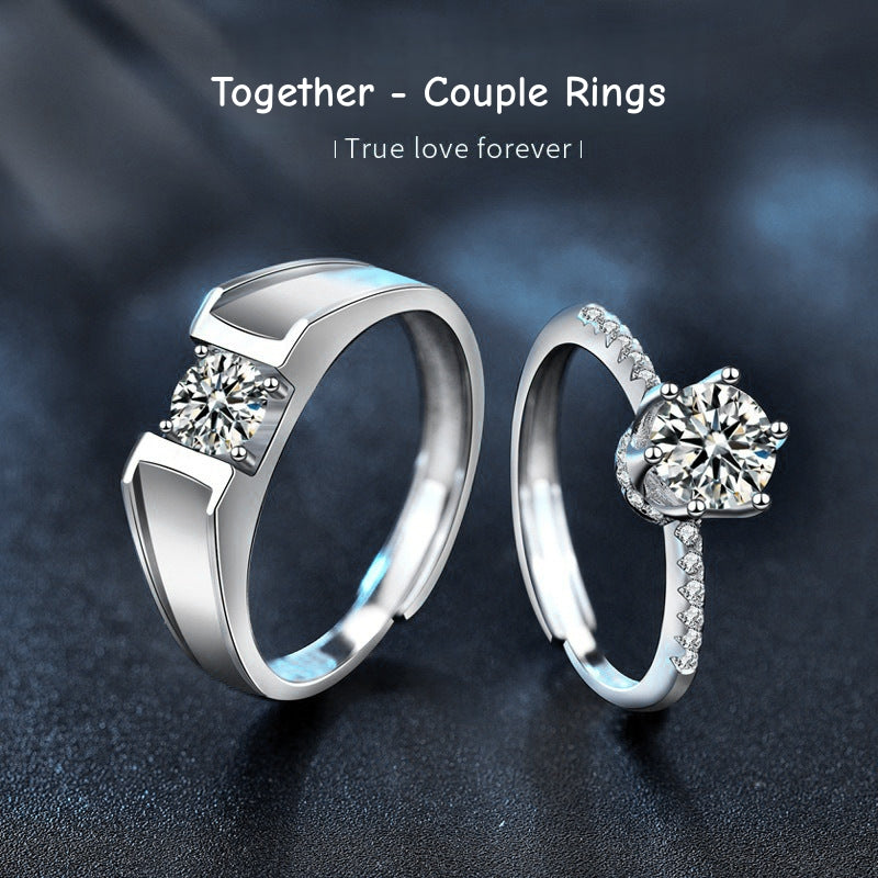 925 Sterling Silver Adjustable Couple Rings, High-End Moissanite Simulated Diamond Bands for Proposal
