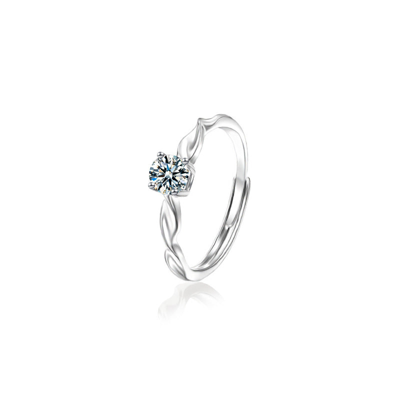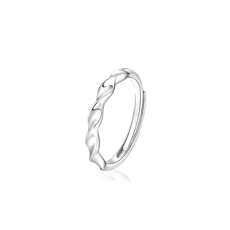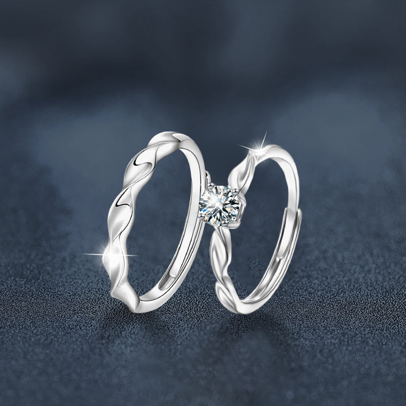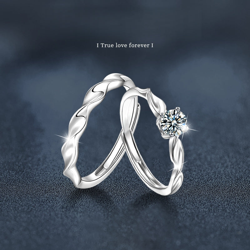 S925 Sterling Silver Twisted Moissanite Couple Rings, Korean-Style Minimalist Adjustable Open Bands for Men & Women