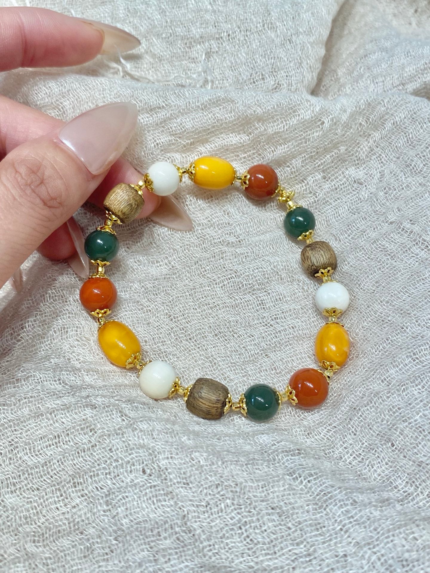 Niche Multi-Stone Sterling Silver Bracelet - Beaded Gold-Tone Boho-Chic Design, Statement Jewelry for Women