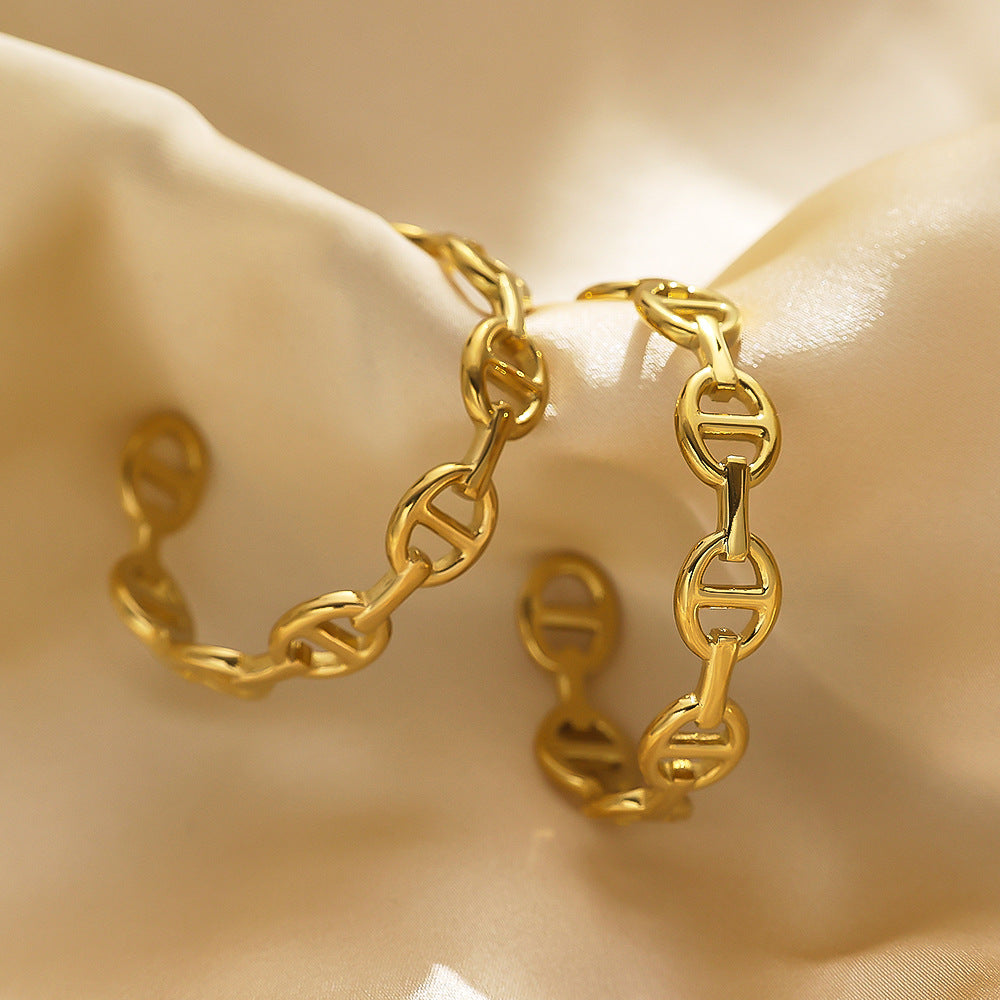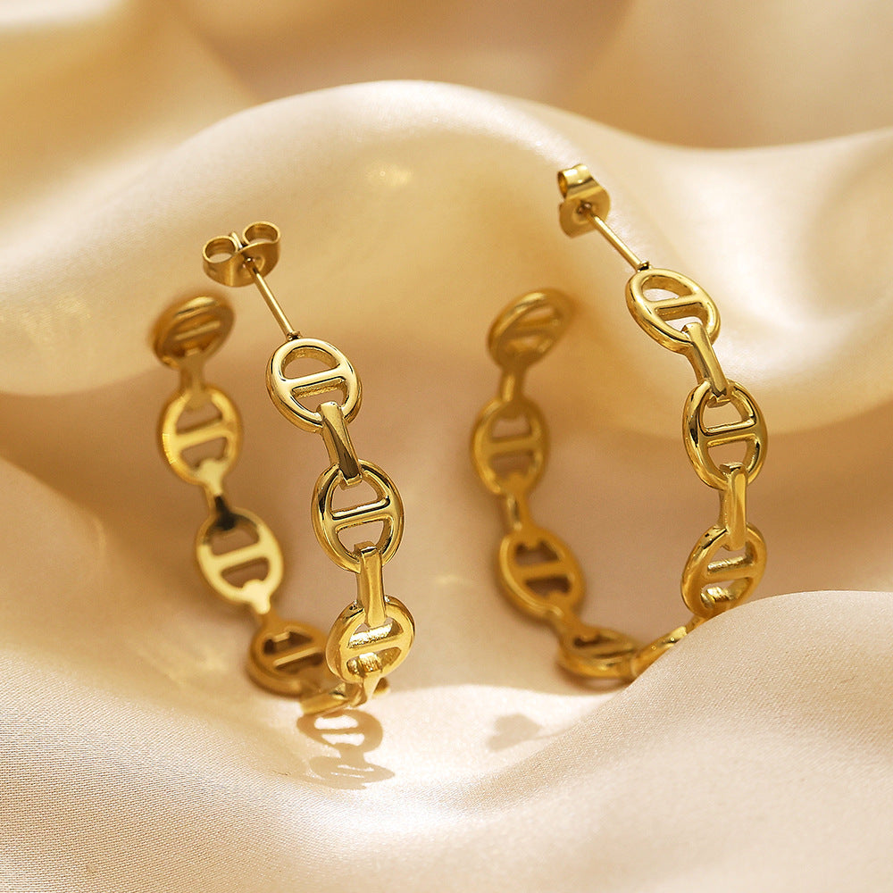 Best-Selling Stainless Steel & Titanium Steel Earrings, High-End Versatile Retro Gold Pig Nose Studs for Women