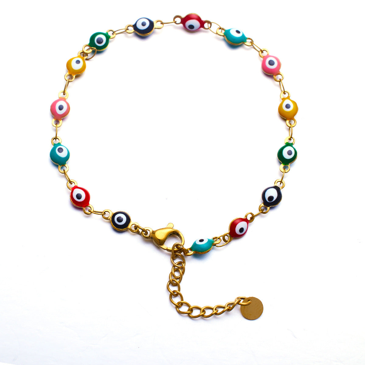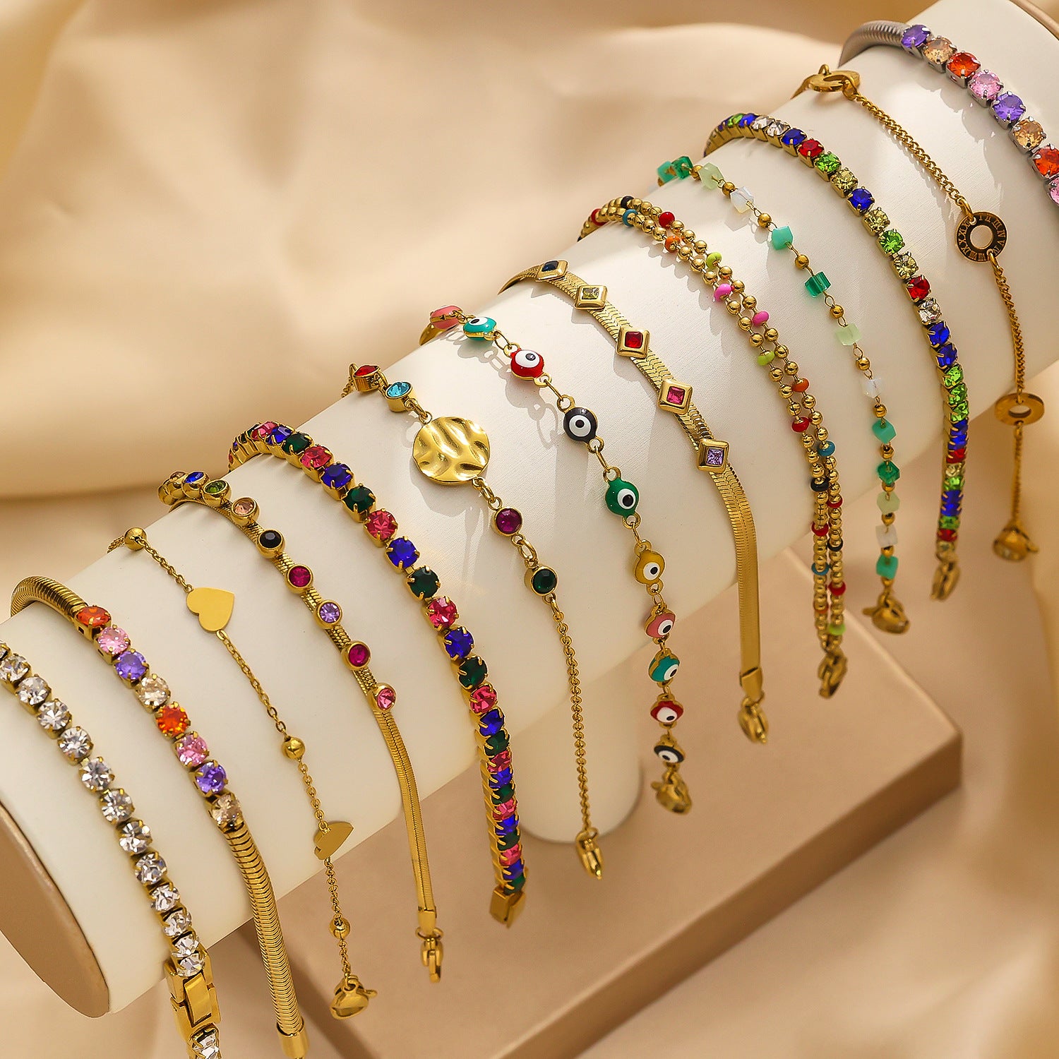 Bohemian INS Vibe Evil Eye Bracelet - Gold-Plated Titanium Steel Bangle with Dazzling Colorful Zircon
