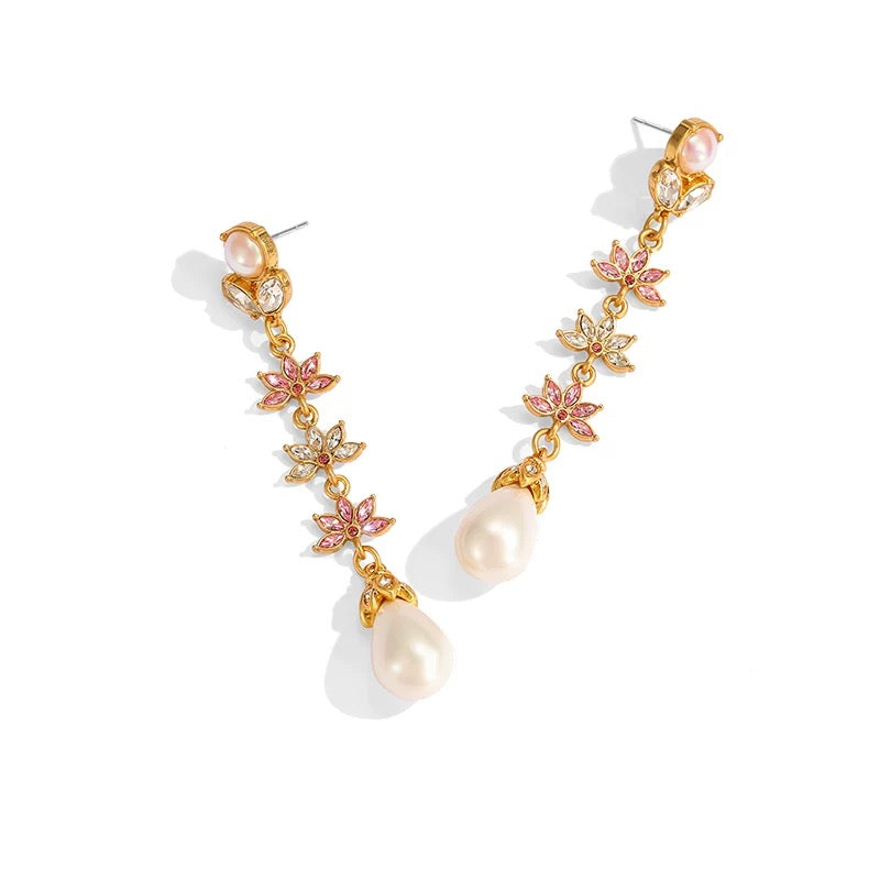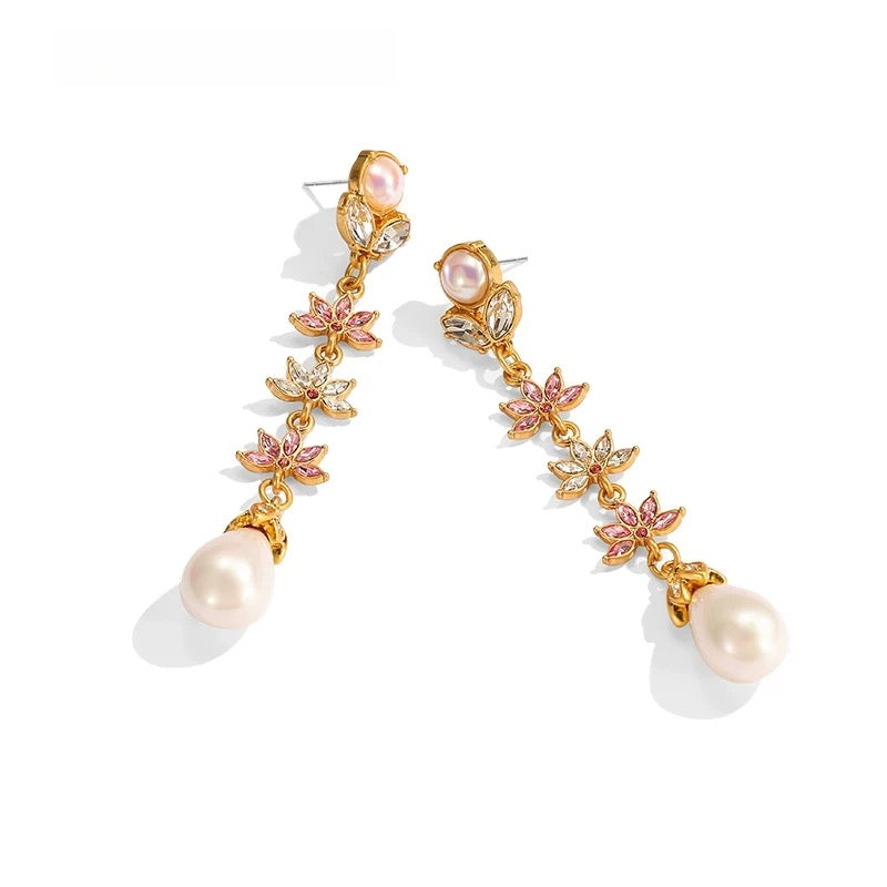 Boho Floral Pearl Jewelry Set - Gold-Tone Romantic Elegant Statement Jewelry for Women, Versatile Fashion Accessory