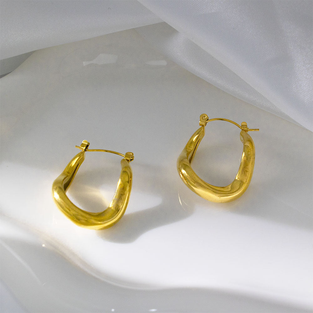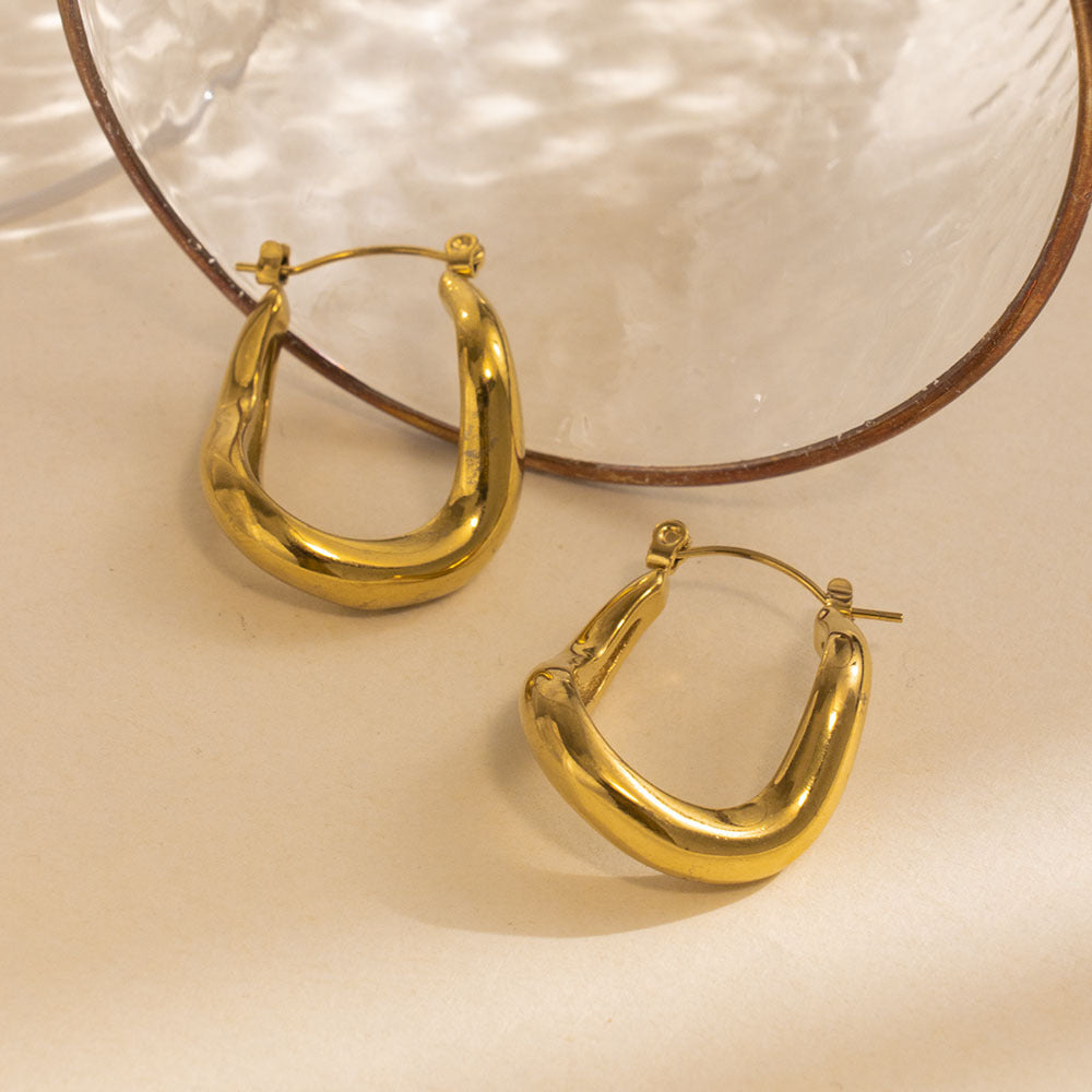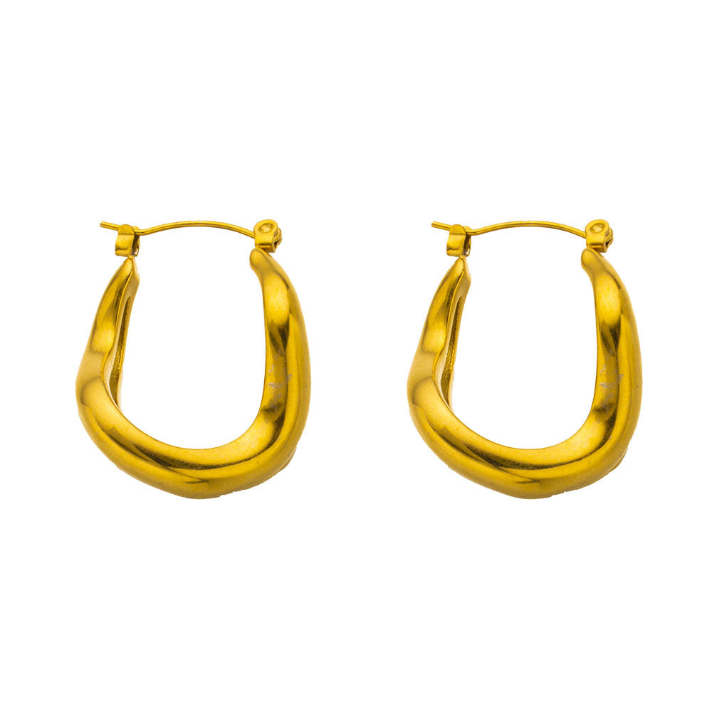 Stainless Steel Pendant Earrings - Light Luxury High-End Electroplated U-Shaped Design, Dopamine Vacation Titanium Steel Jewelry for Women