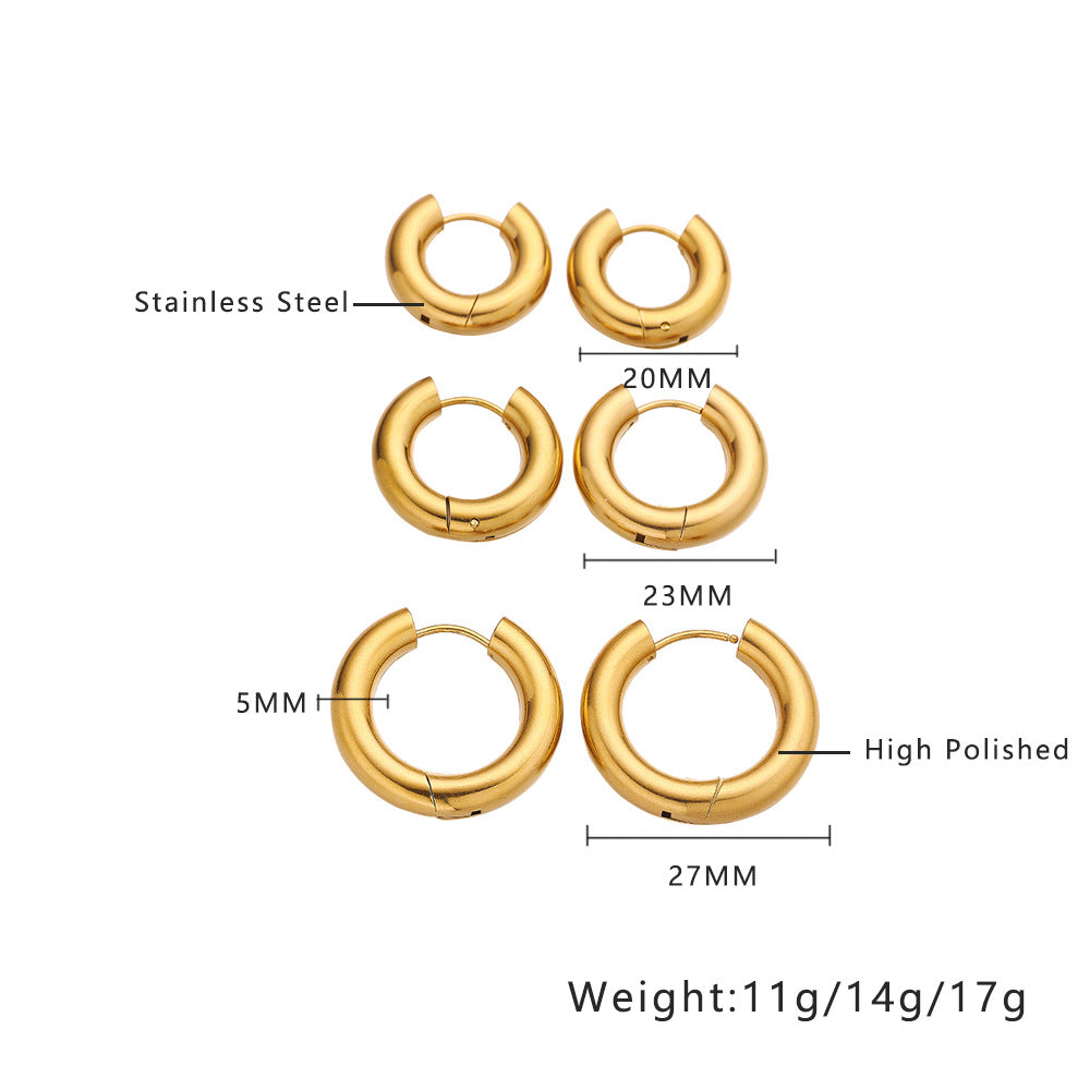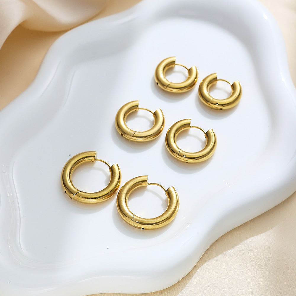 Fashion INS Style Earrings, Gold Polished Round Wire Hoops, Versatile Stainless Steel & Titanium Steel Ear Cuffs