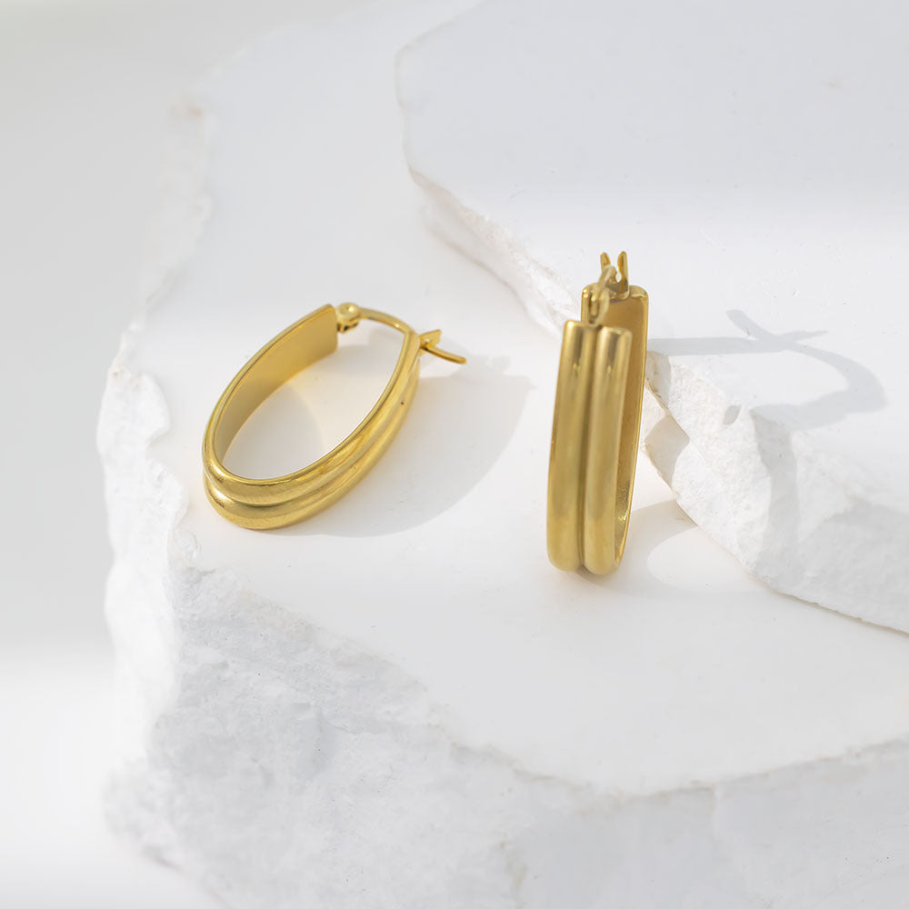 Ins Style Niche Earrings, Minimalist Crossover Stainless Steel Hoops, High-End Trendy Jewelry for Women