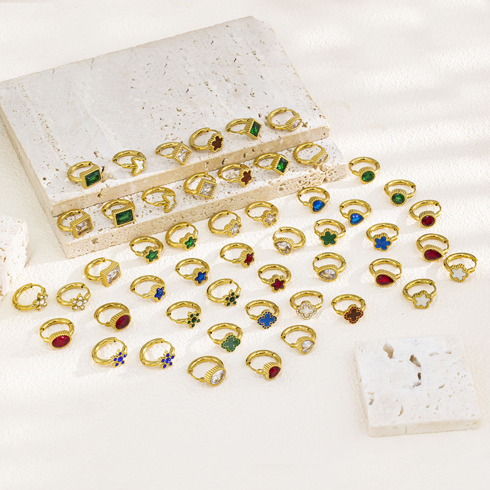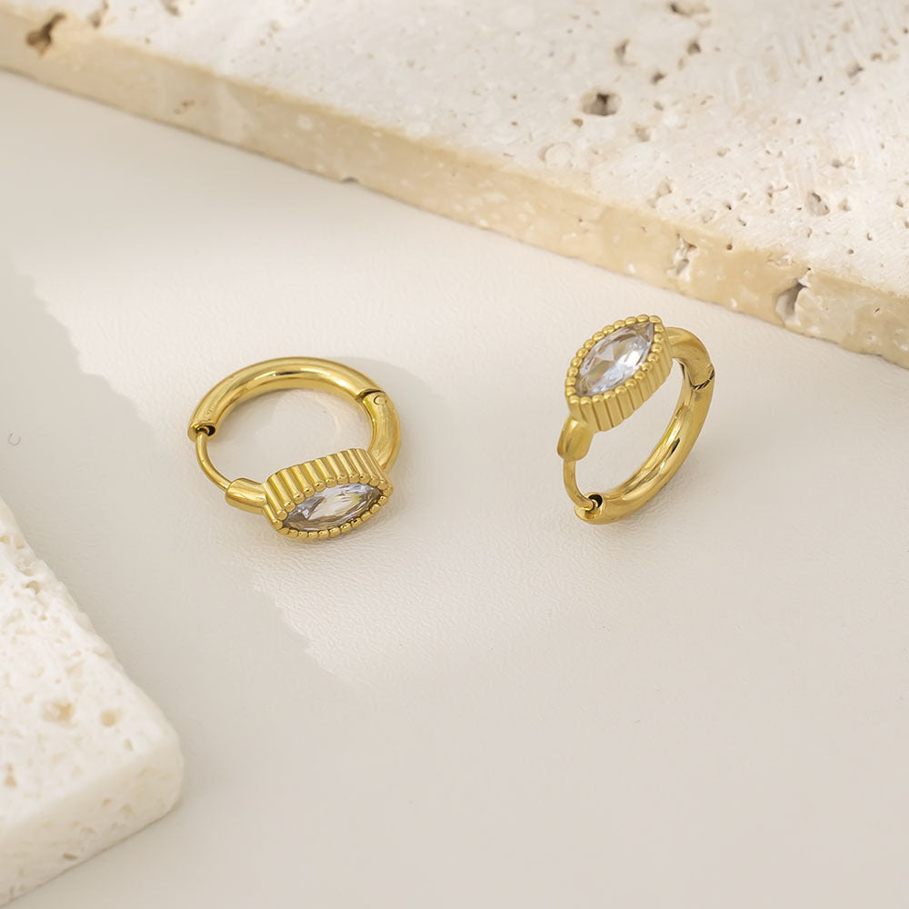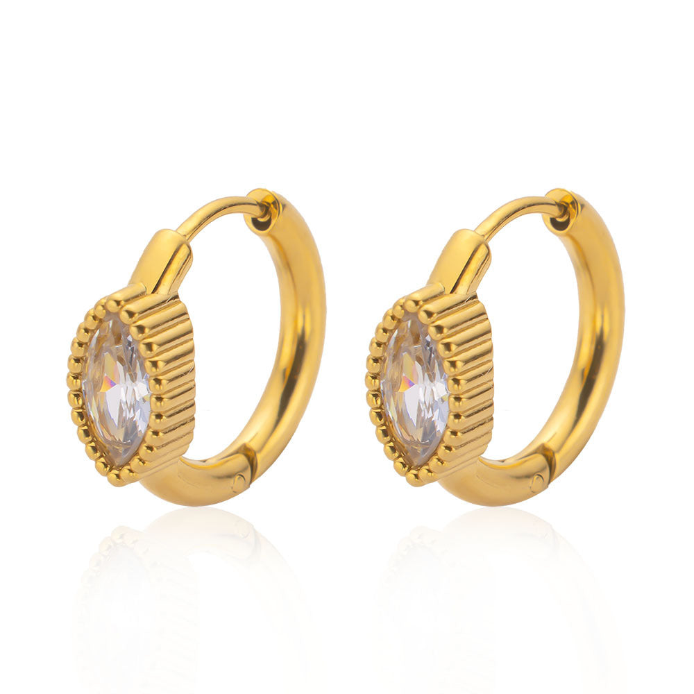 Luxury Geometric Earrings, 18K Gold Plated Diamond - Inlaid Ear Cuffs, High - End Stainless Steel Jewelry for Women