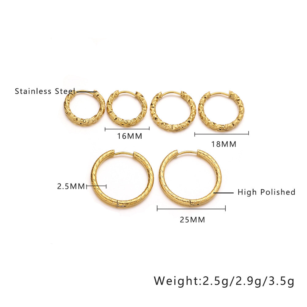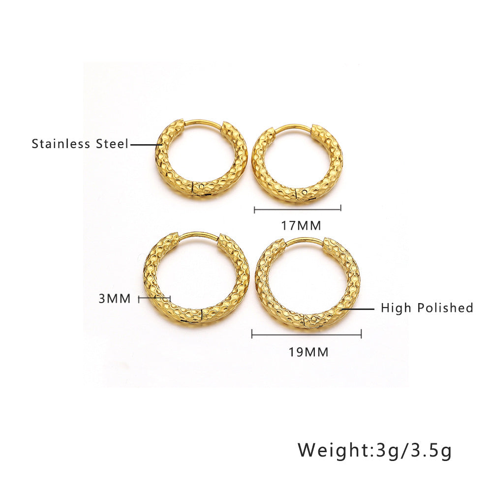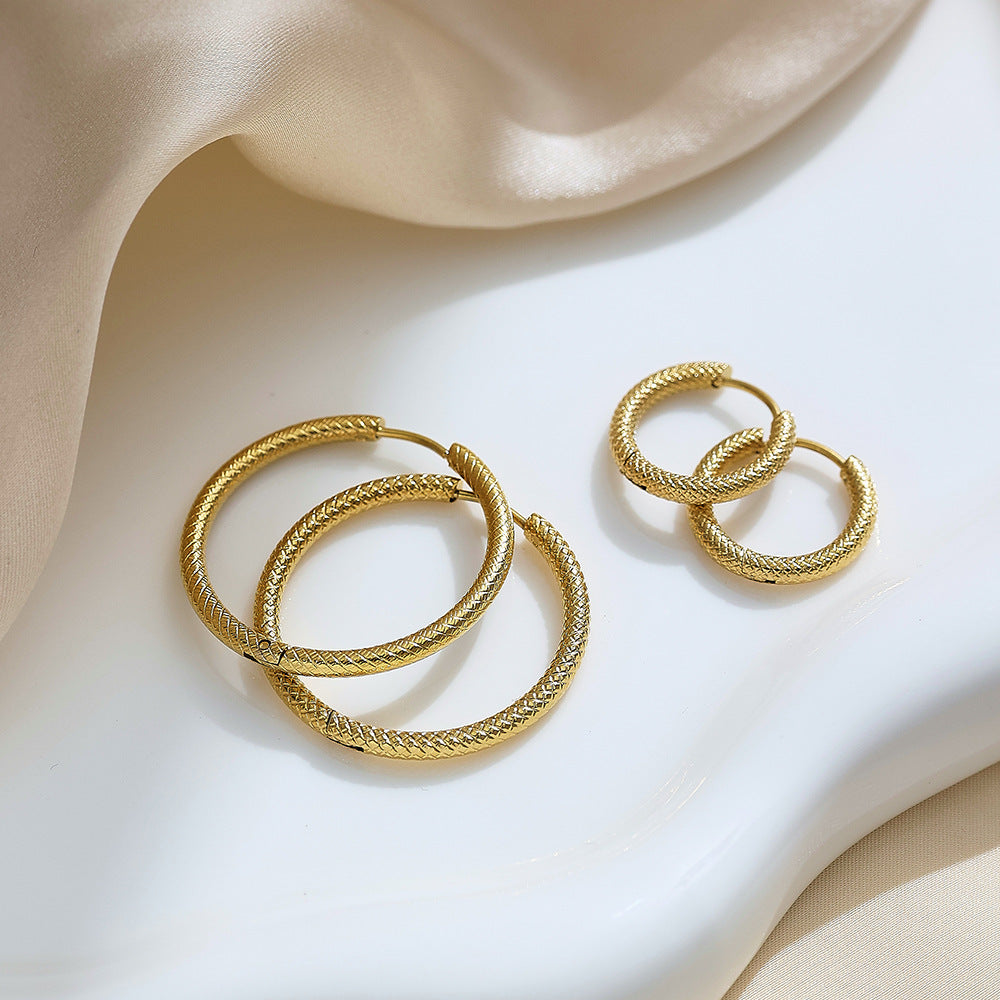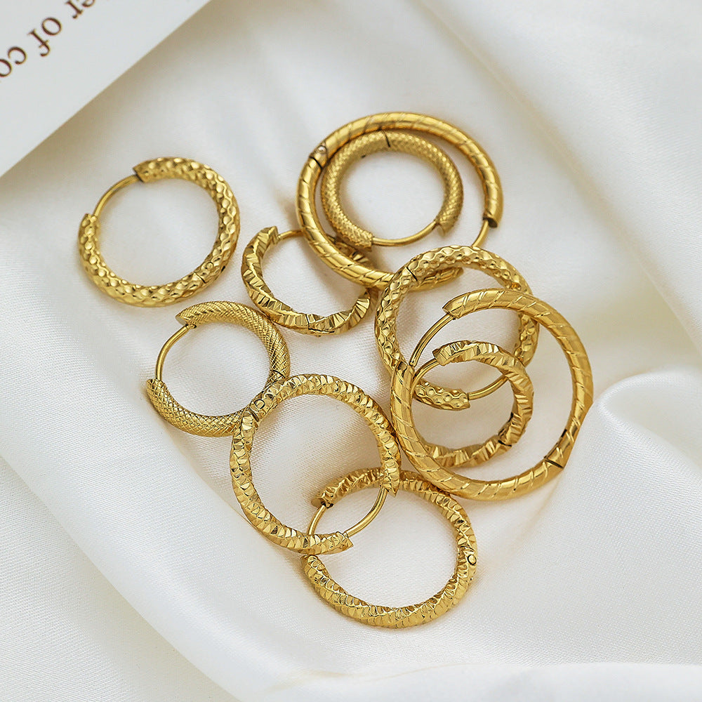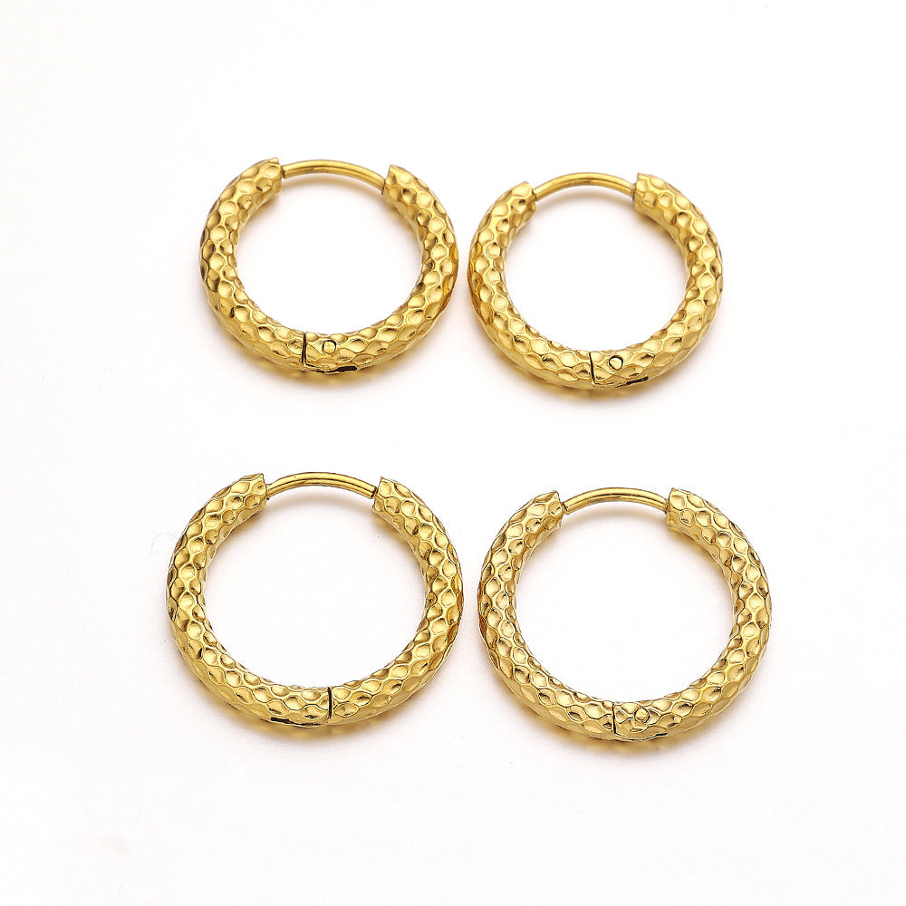 Brand X Retro Gold Titanium Steel Earrings, Embossed Circle Hoops, Minimalist Stylish Fade-Resistant Ear Cuffs for Women