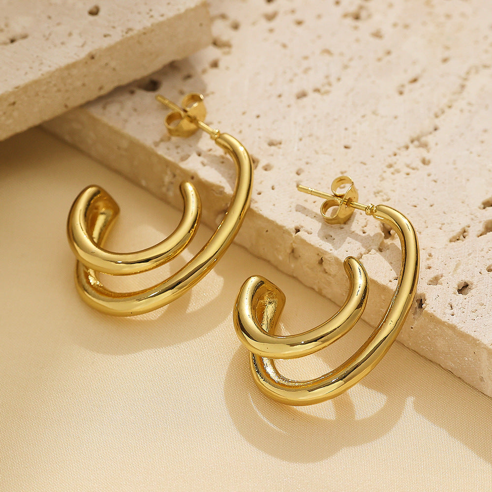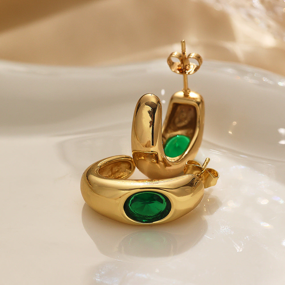 Cross-Border 18K Gold Plated Emerald Zircon Studs, French Retro Unique Titanium Steel & Stainless Steel Earrings for Women