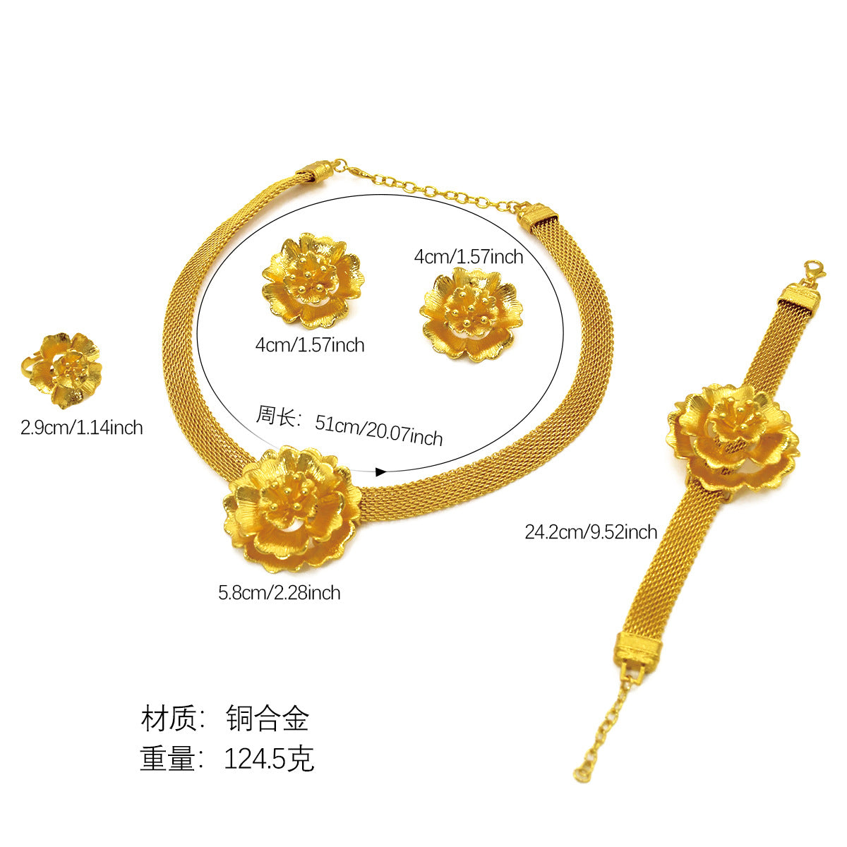 Cross-Border Best-Selling Bridal Jewelry Set, Dubai & Middle East 4-Piece Wedding Jewelry Including Necklace Earrings Bracelet Ring Wholesale