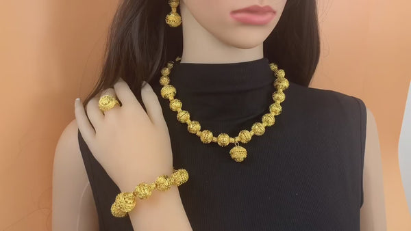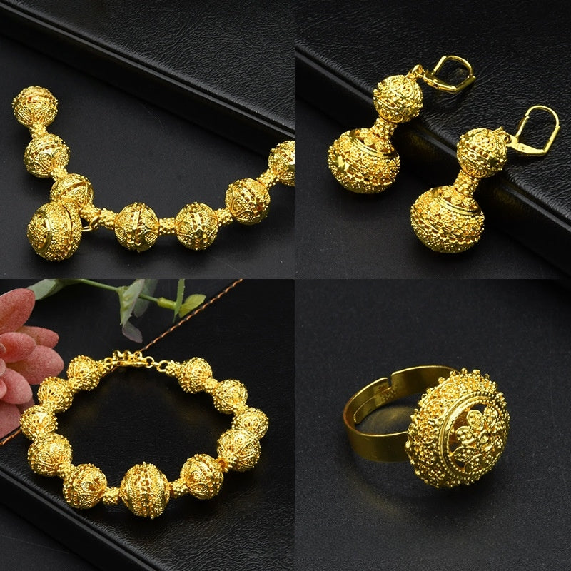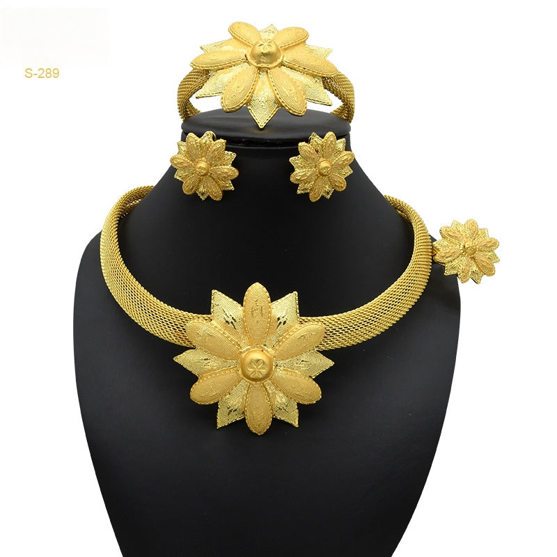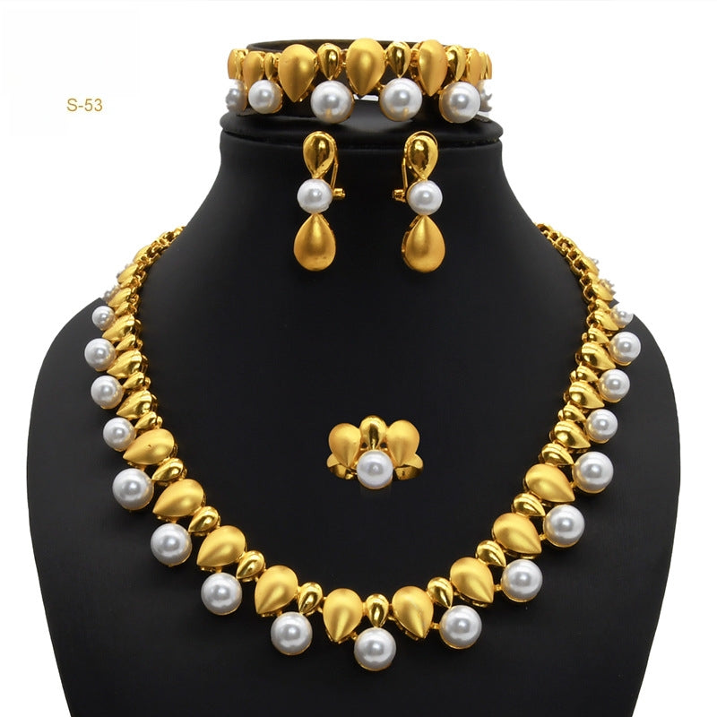 Cross-Border Bridal Beaded 4-Piece Jewelry Set, Nigerian Women's Necklace Earrings Ring Bracelet, In-Stock Wholesale