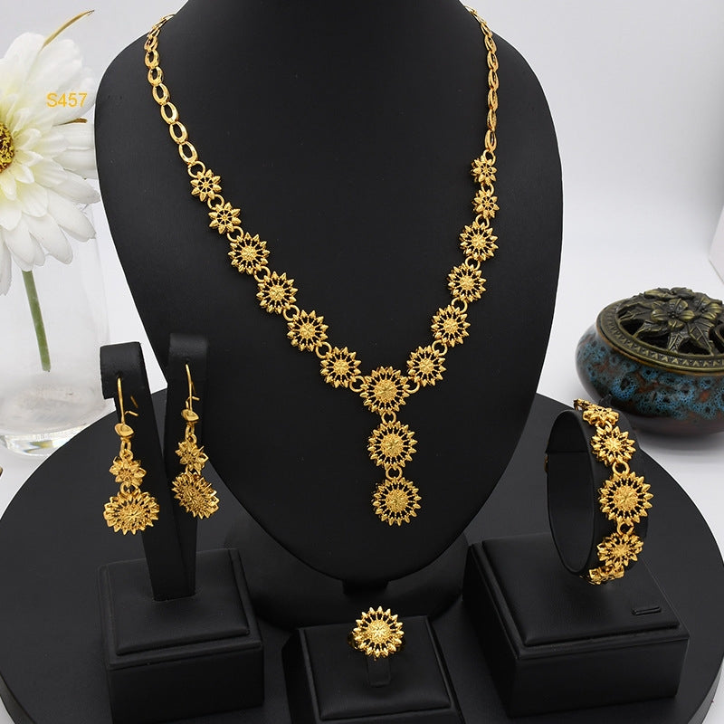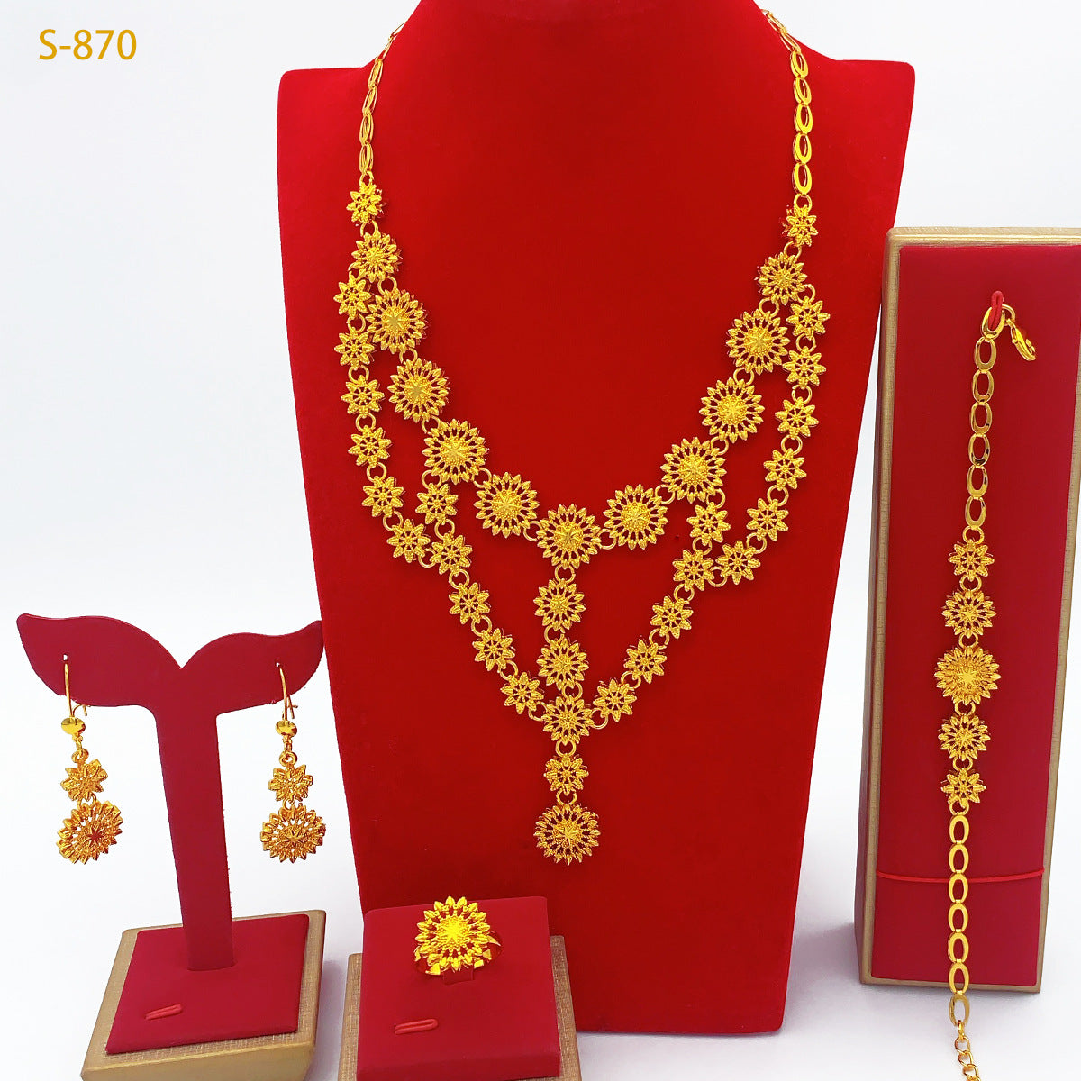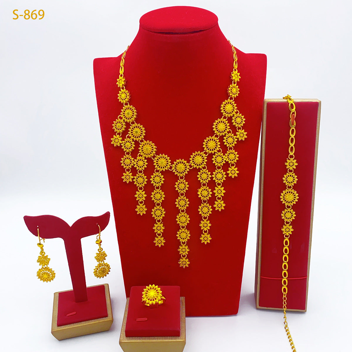 Dropshipping Bridal Jewelry Set for Dubai Middle East, Factory Direct Sale Women's Necklace Earrings Ring Bracelet