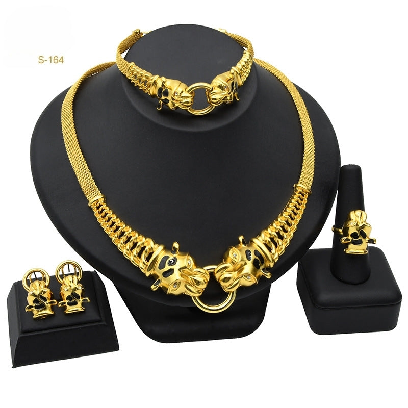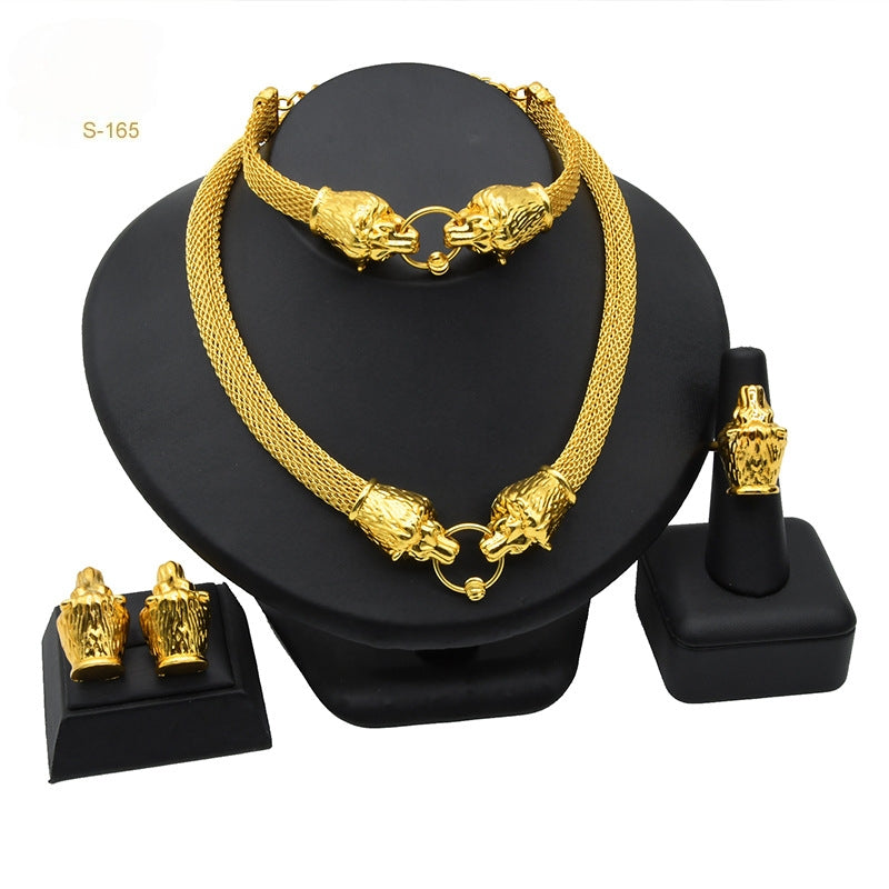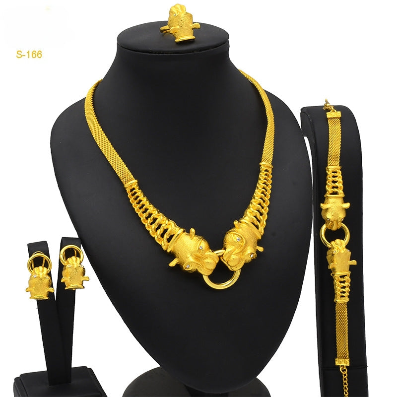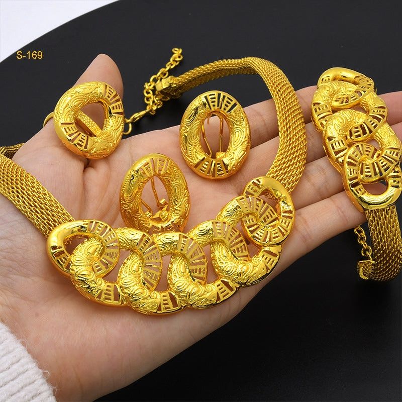 Dubai Middle East 24K Gold Plated Bridal 4-Piece Jewelry Set, Necklace Bracelet Earrings Ring for Bride