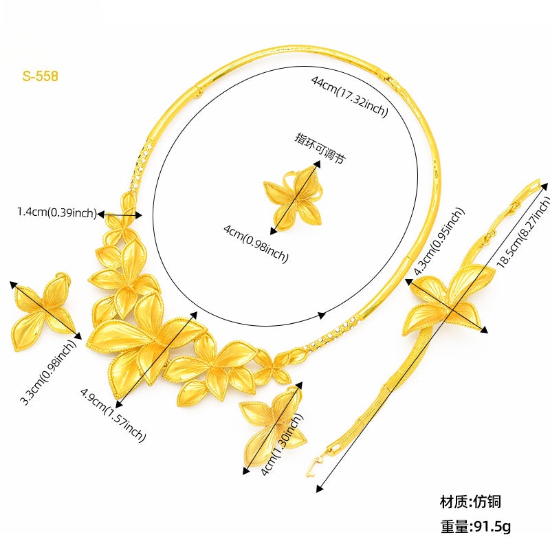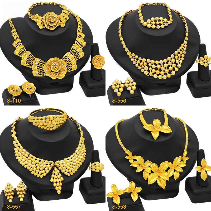 Dubai Women's Jewelry Set, Middle Eastern Bridal 4-Piece Wedding Necklace Earrings Ring Bracelet, Wholesale Price