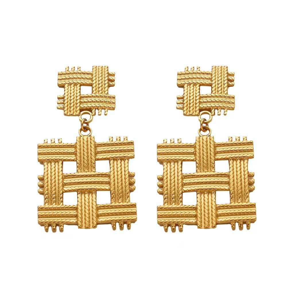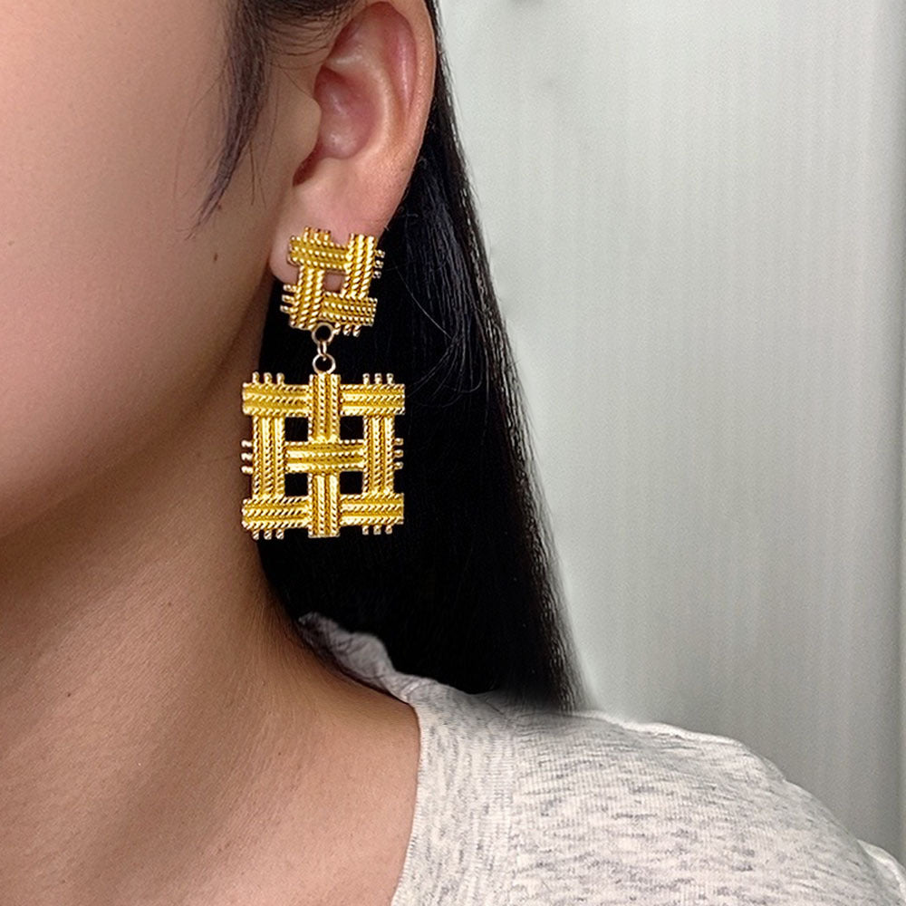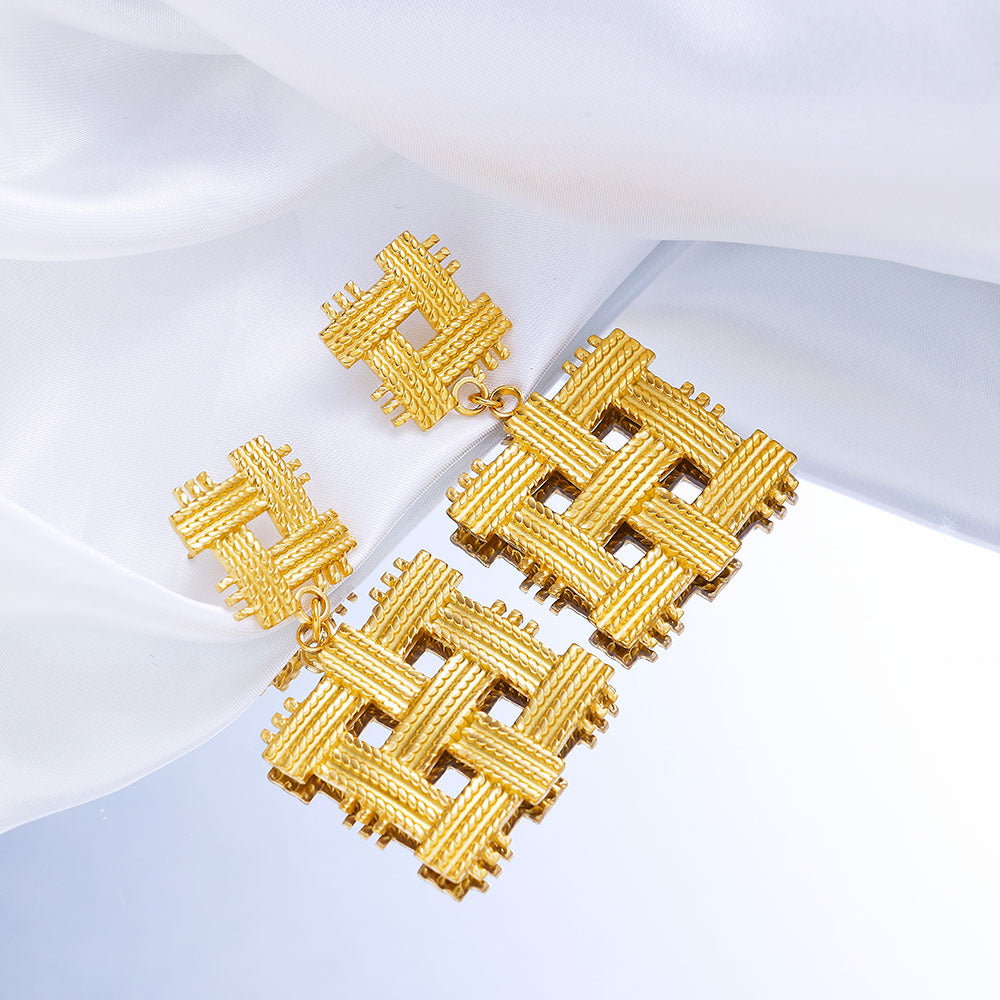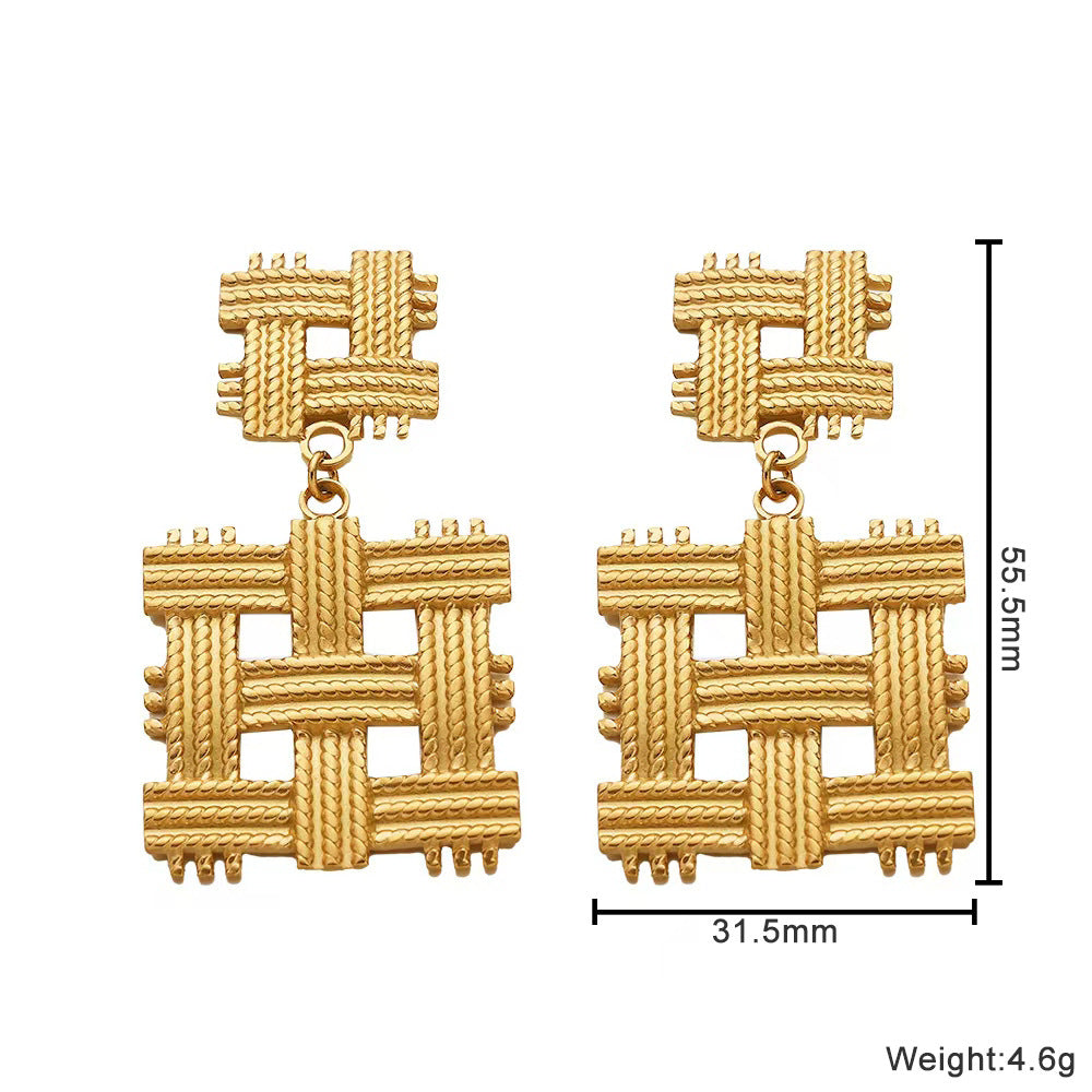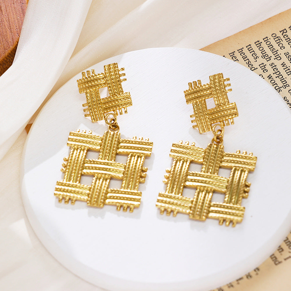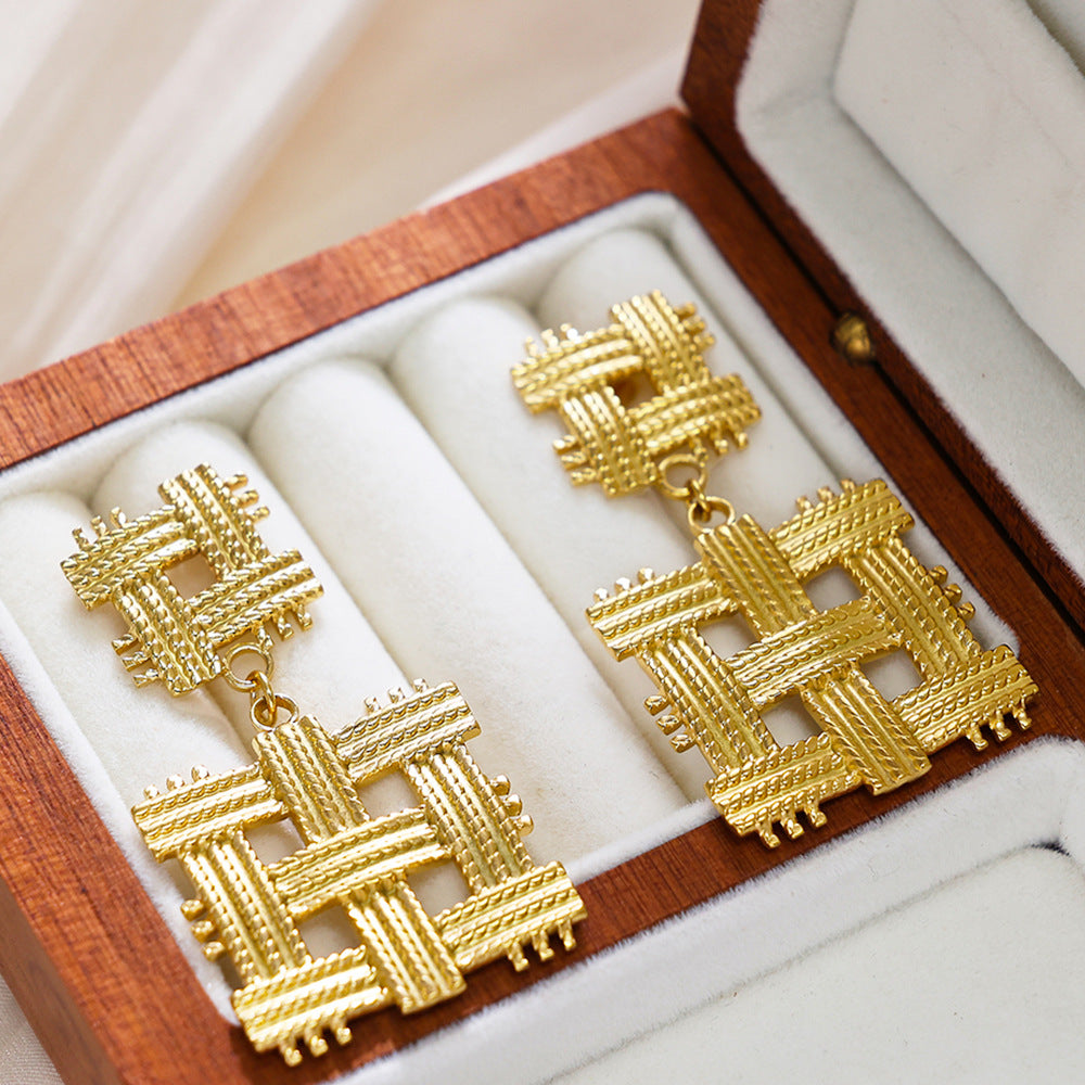 Irregular Titanium Steel Stud Earrings, Exaggerated and High - end Fashion Dangle Earrings, Golden Geometric Braided Titanium Steel Earrings for Women