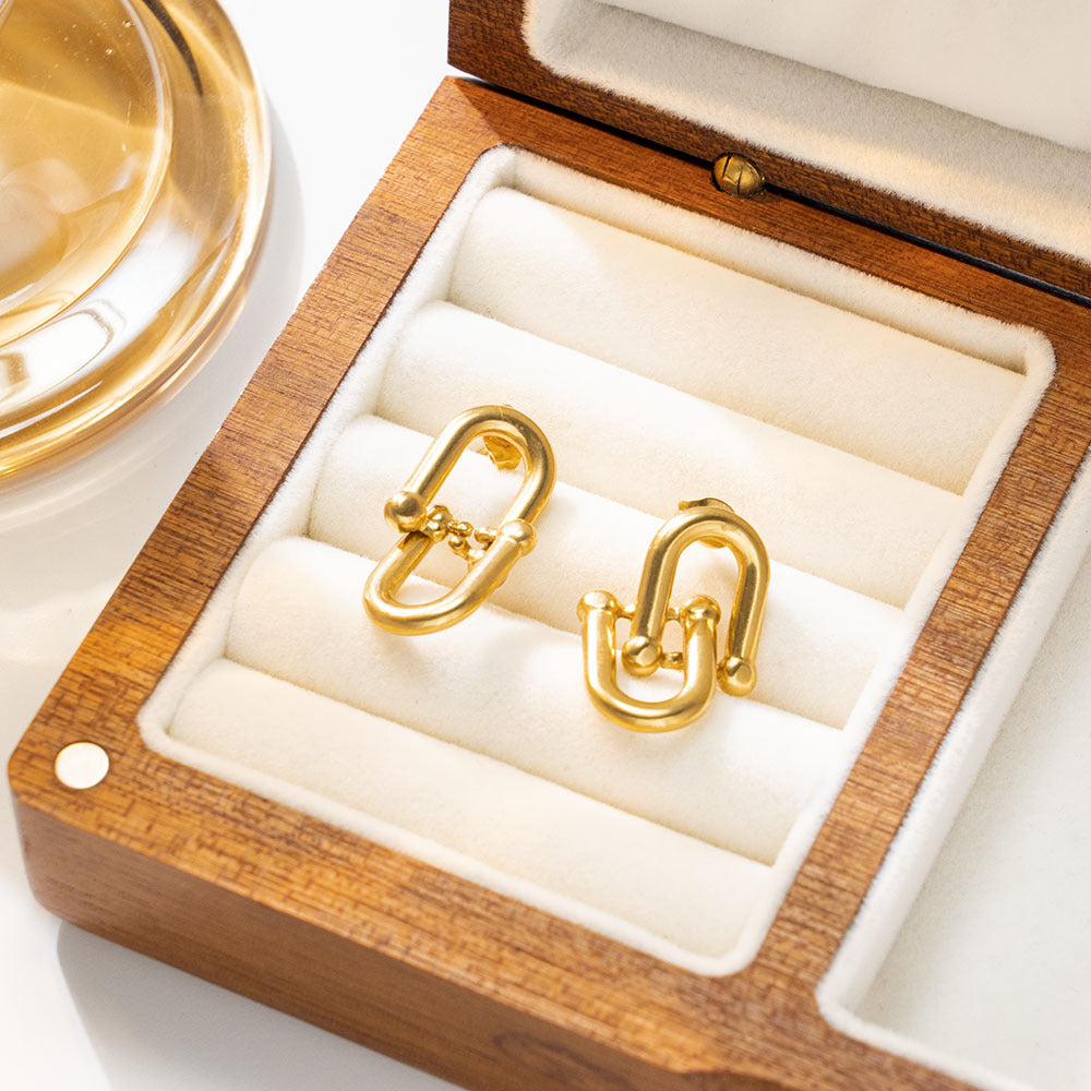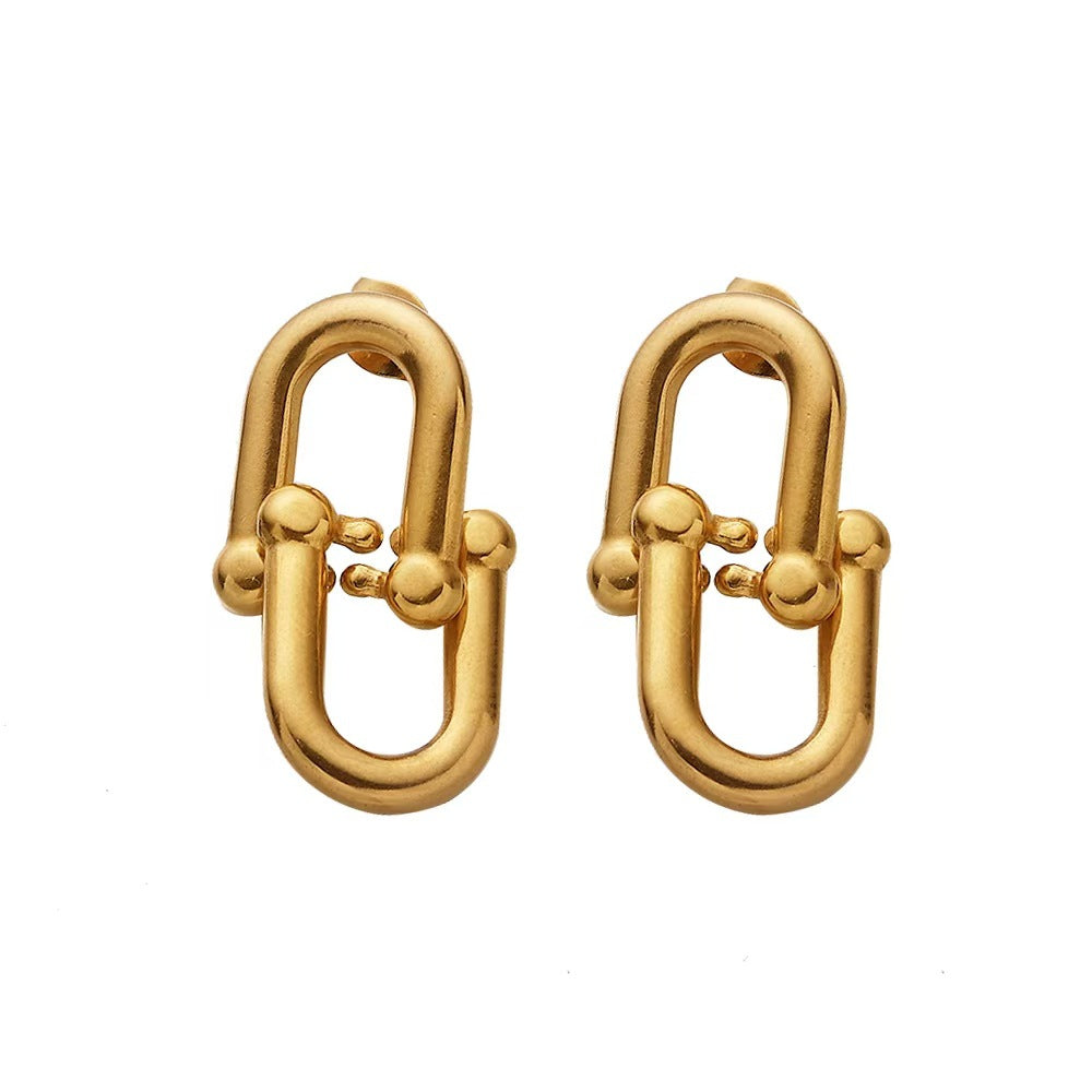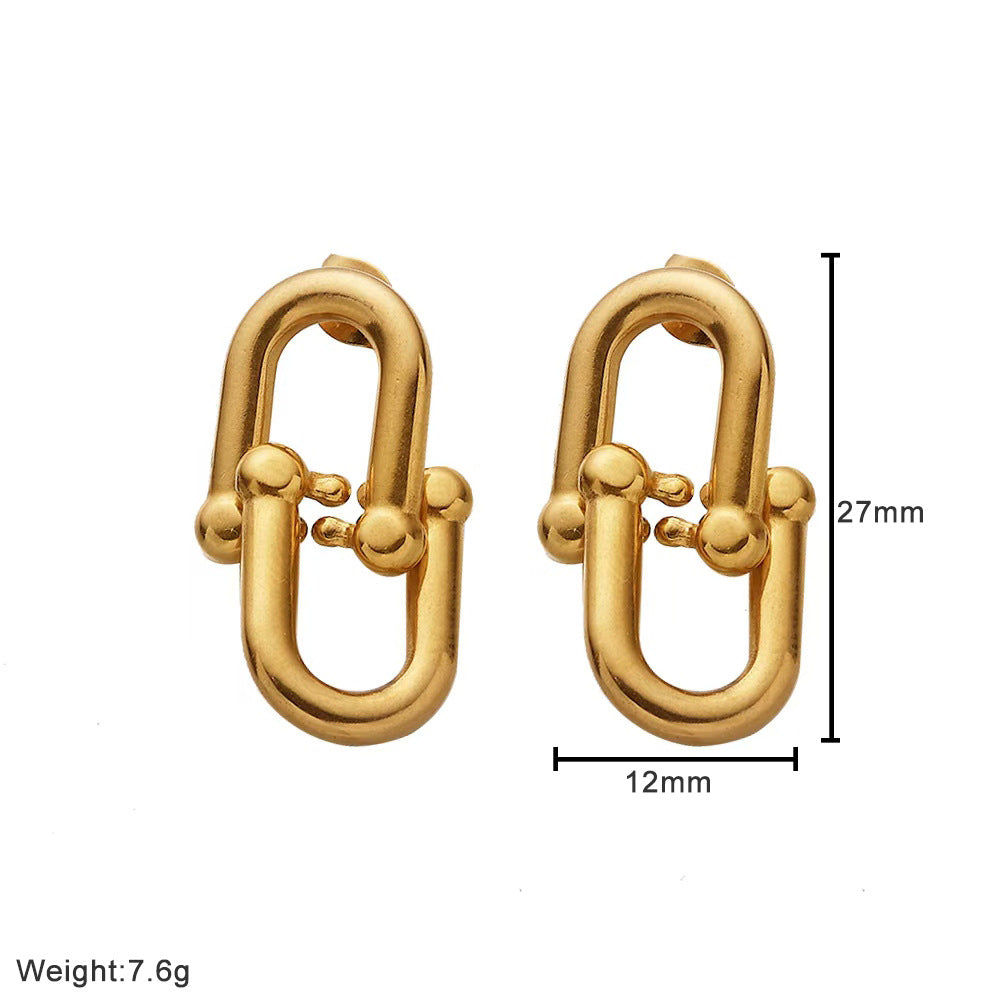 INS Style Stainless Steel Earrings - 18K Gold Plated Irregular Studs & Horseshoe - 扣 Double - Ring Titanium Steel Dangles