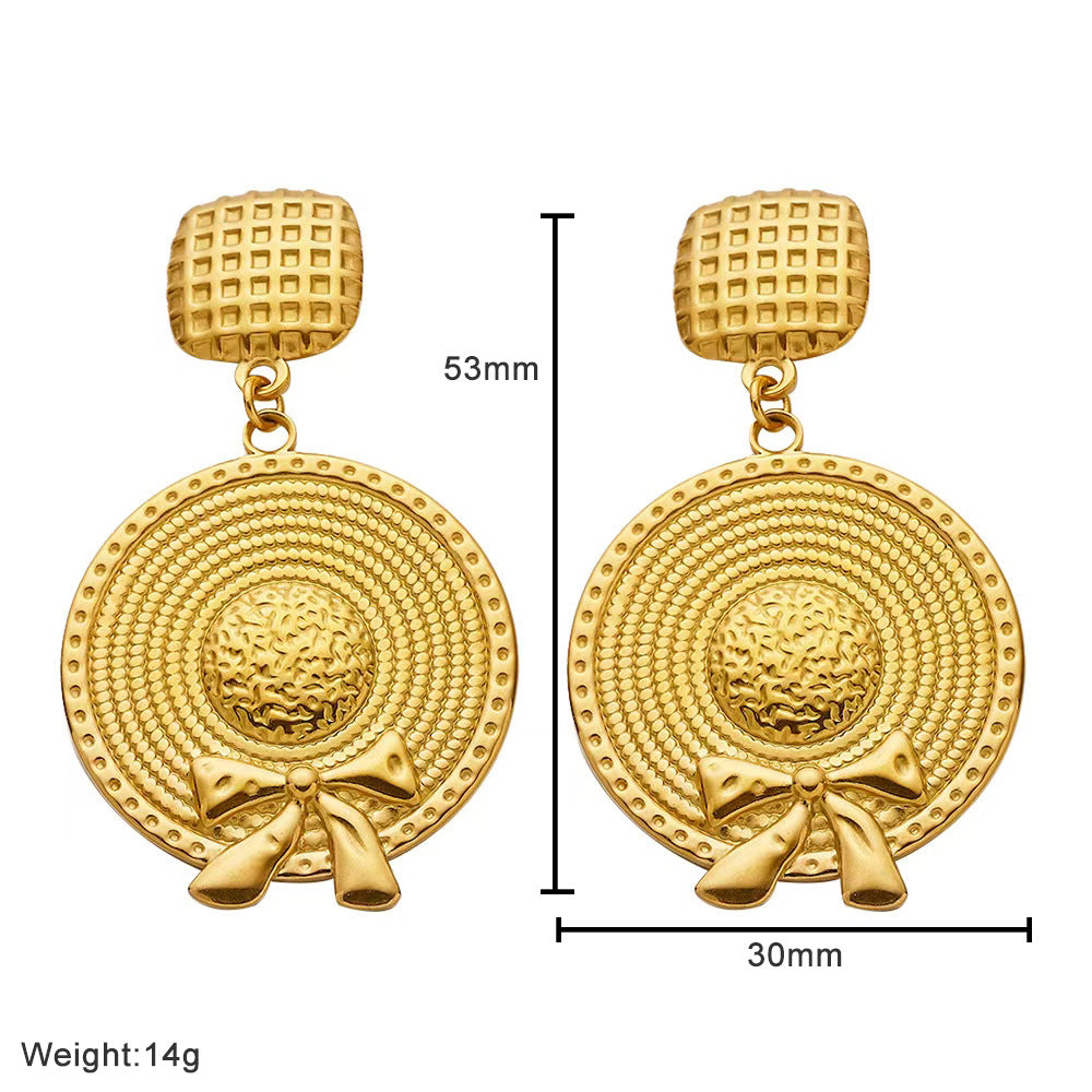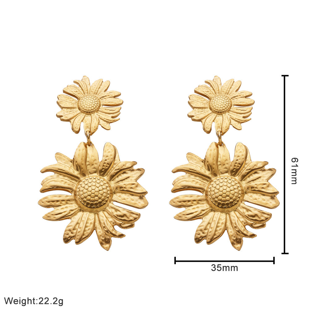 INS Style Stainless Steel Earrings - Geometric Texture Minimalist Studs & Gold Sunflower Titanium Steel Dangles for Women