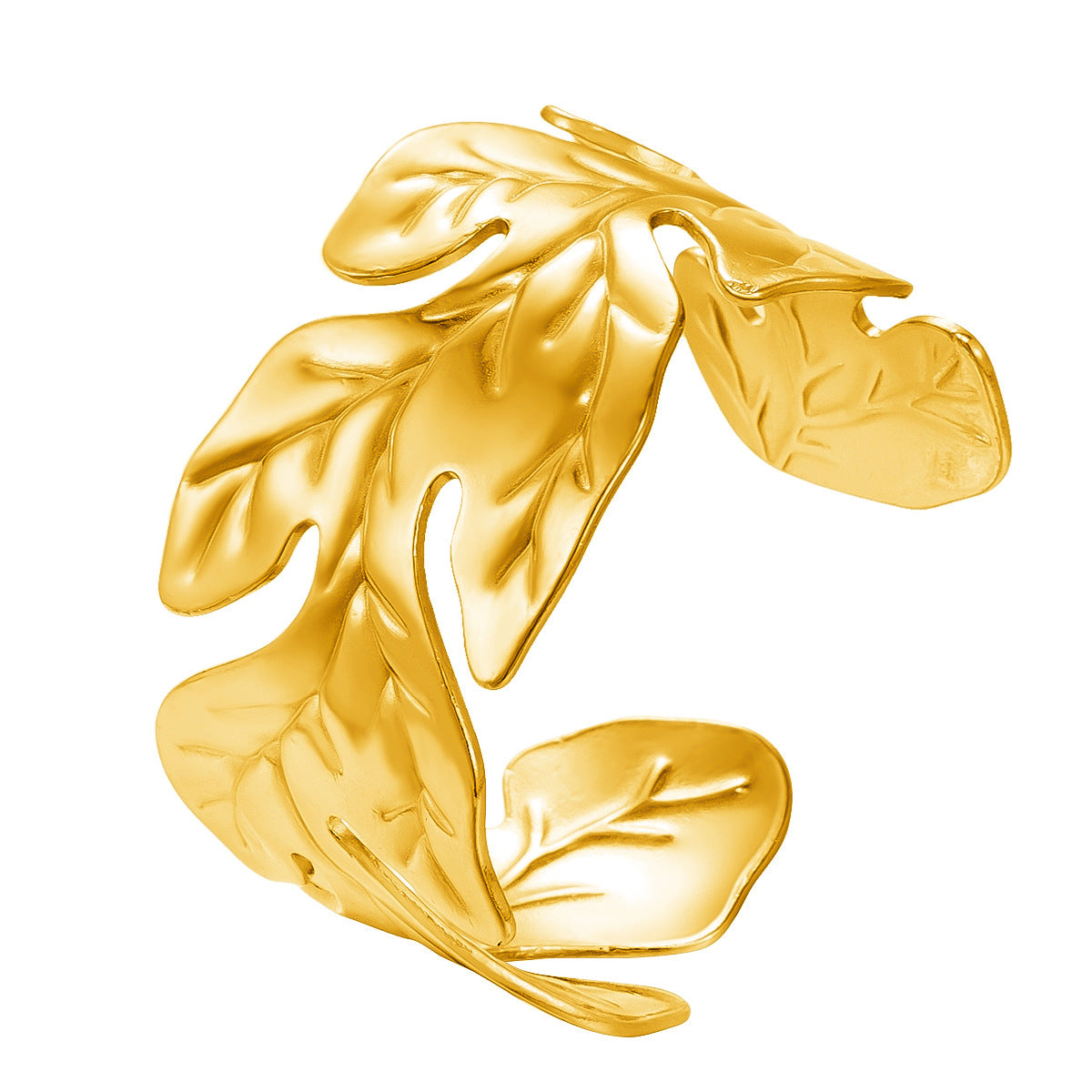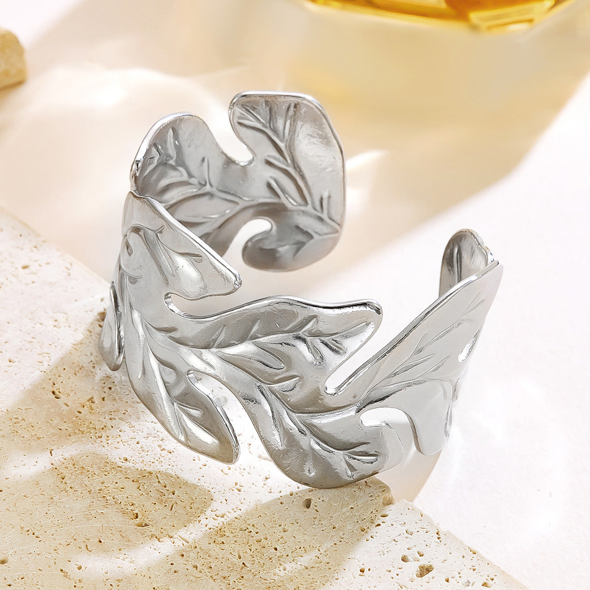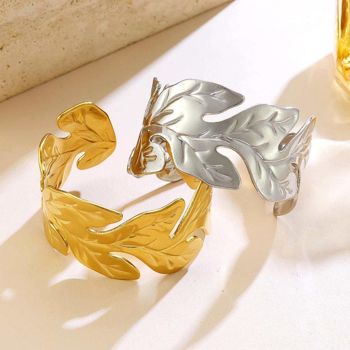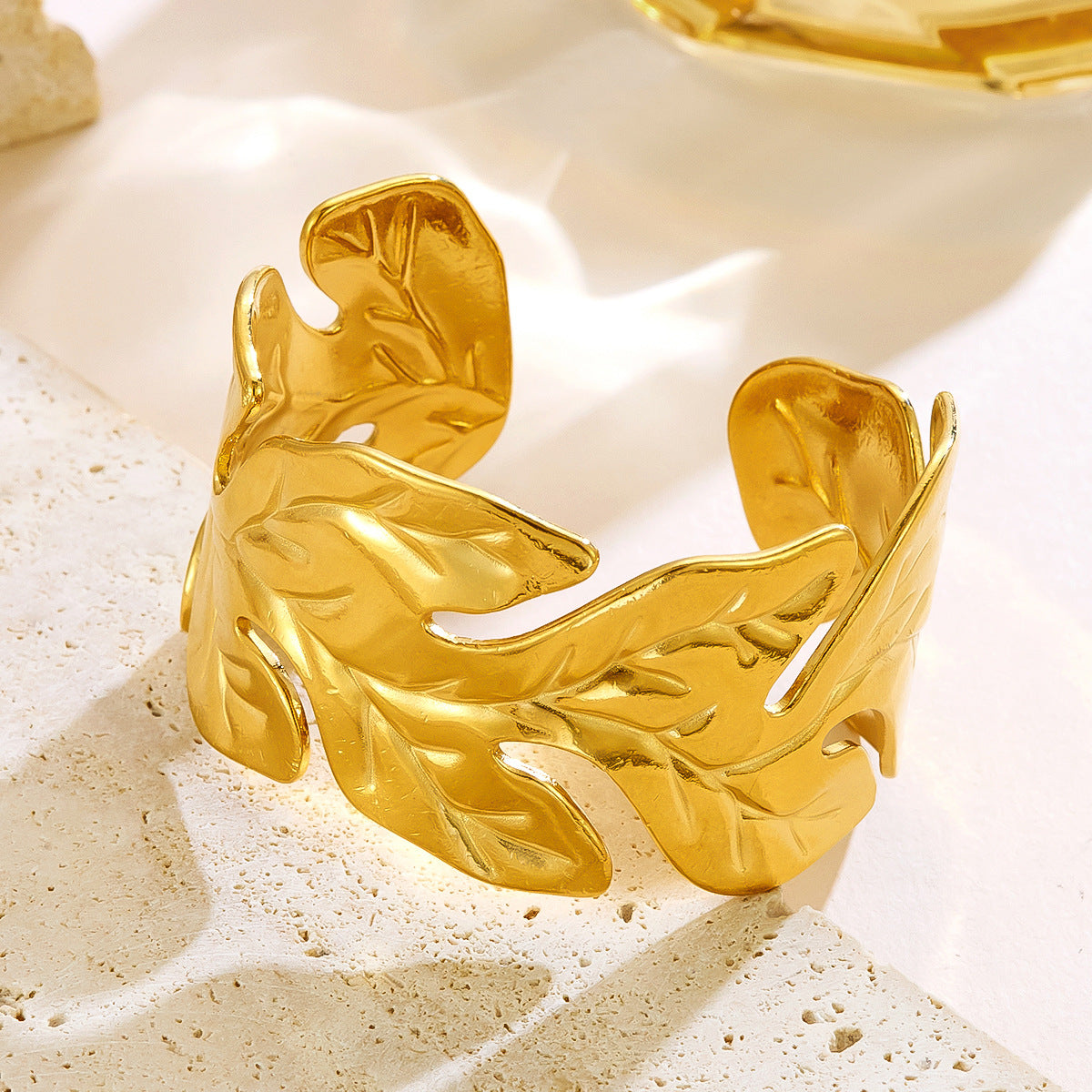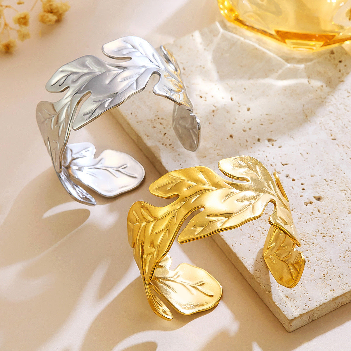 EU & US Cross-Border Best-Selling Wide Leaf Texture Titanium Steel Open Bracelets - Adjustable, European & American Stylish, Fade-Resistant