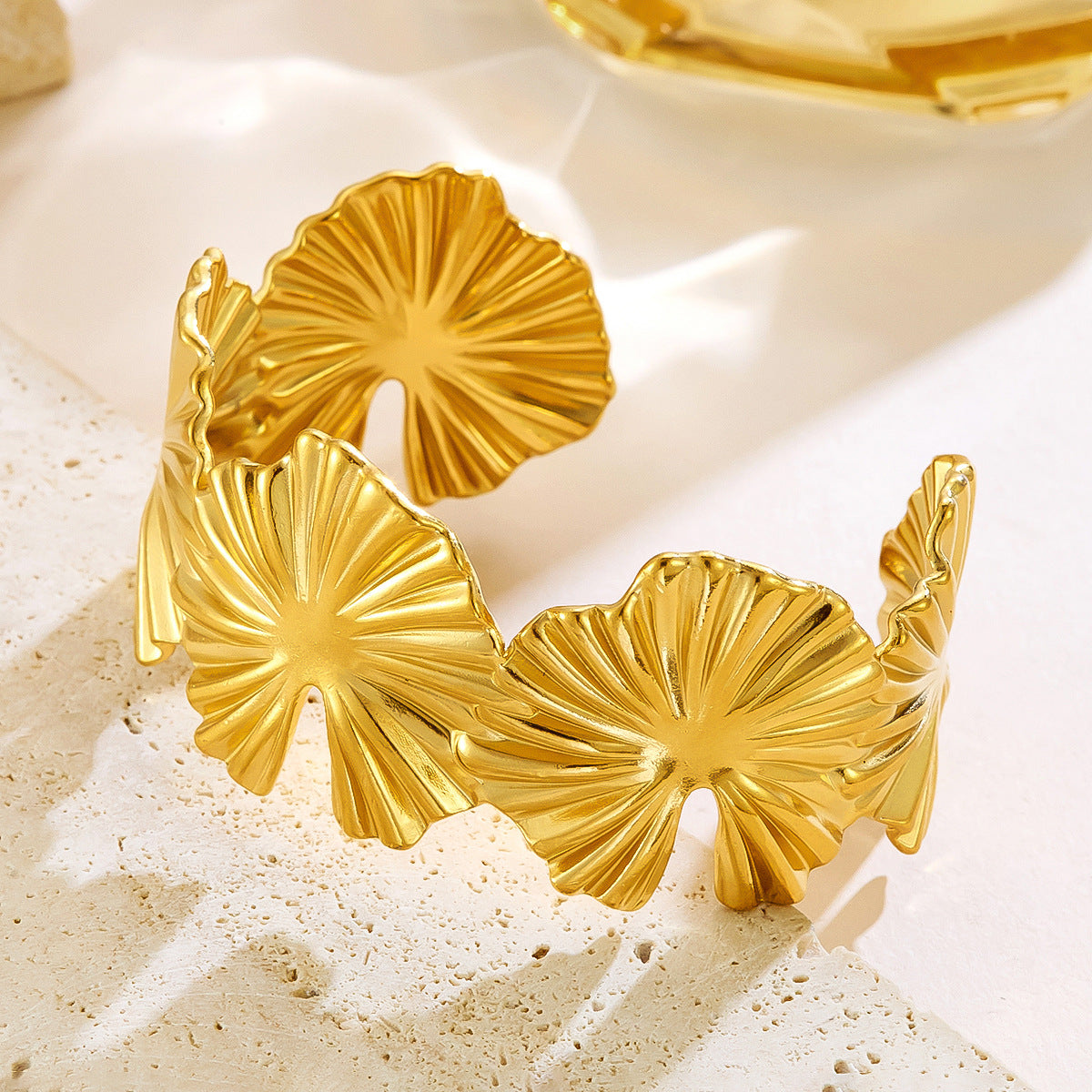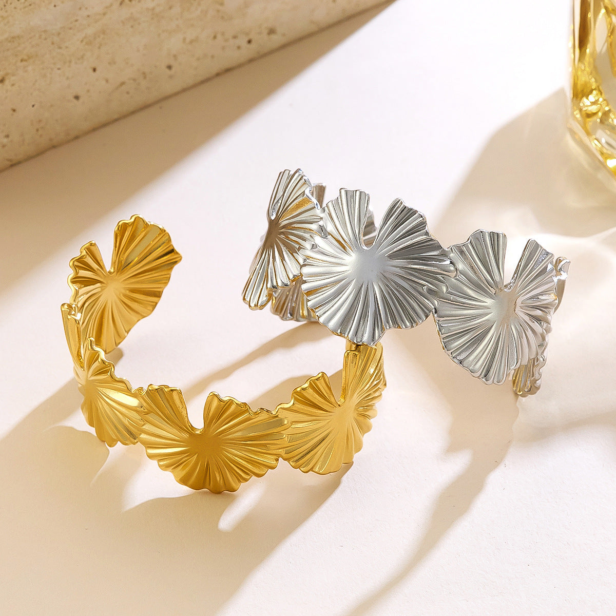 EU & US Cross-Border Stylish Women's Bracelets | Wide Versatile Stainless Steel Open Leaf Jewelry