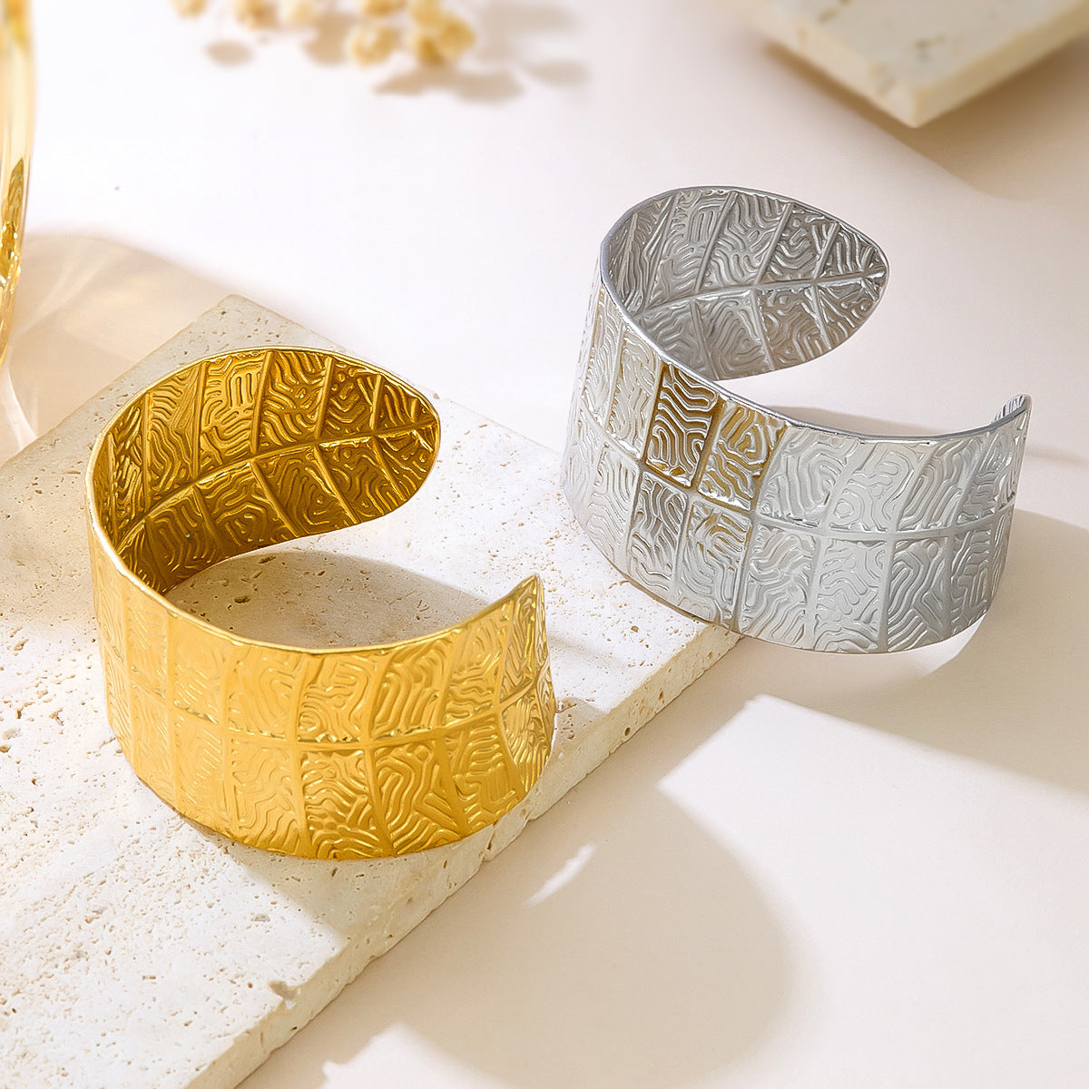 European & American Bold Leaf Texture Open Bracelets & Minimalist Fashion Cool-Tone Bangles - Niche Light Luxury Premium Jewelry