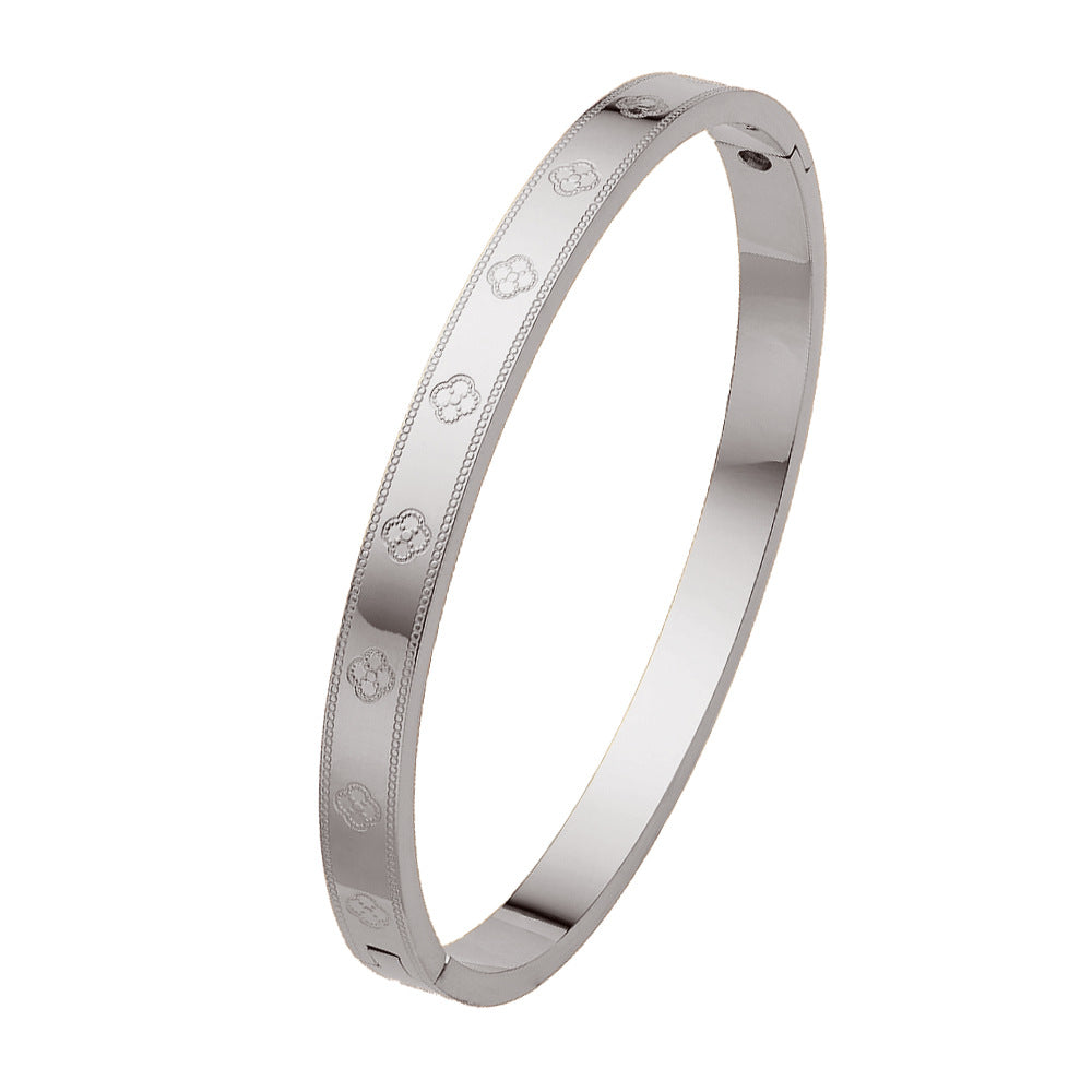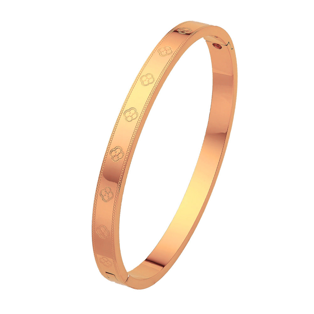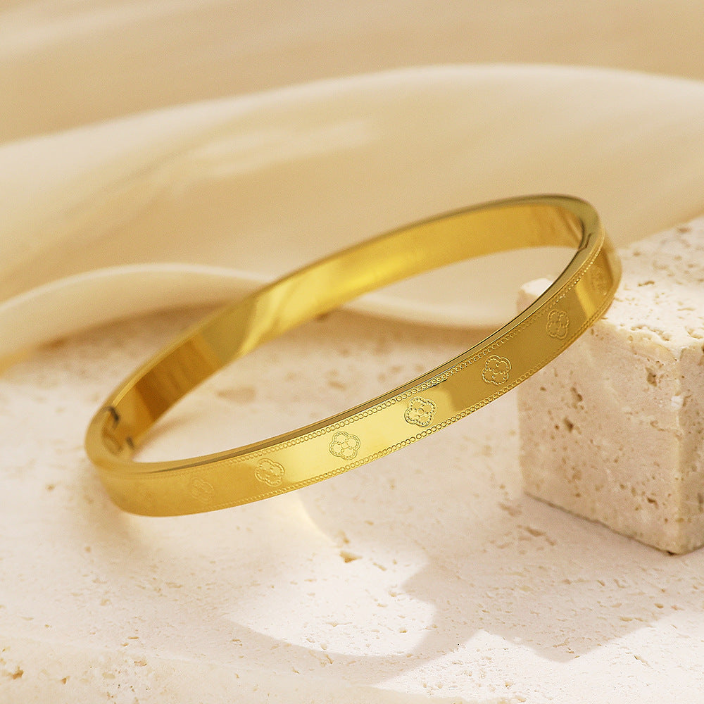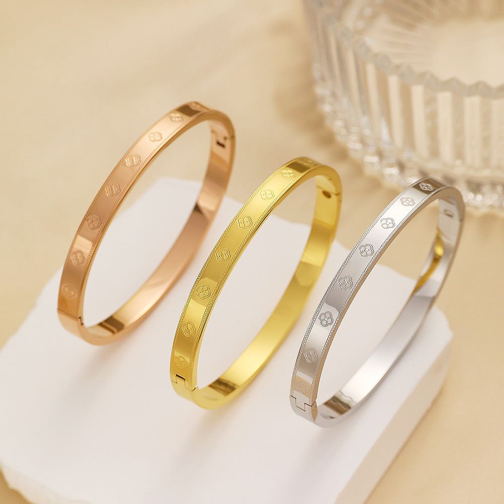 European and American Lucky Clover Bangle - Premium Fresh and Minimalist Four-Leaf Clover Fashion Niche Stainless Steel Closed Bracelet for Women (Wholesale)