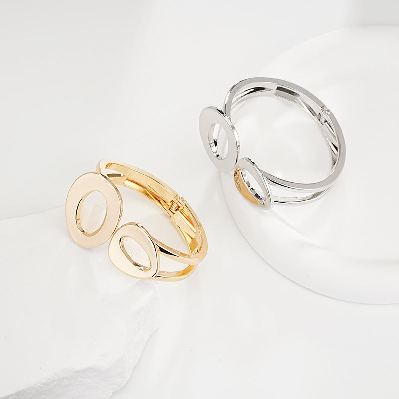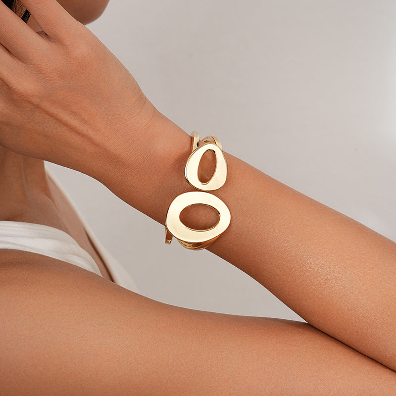Fashion Hollow Bracelet - Asymmetrical Different-Sized Rings Wristband, Niche Design Geometric Plain Ring Bracelet for Women