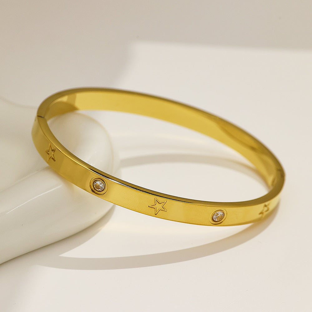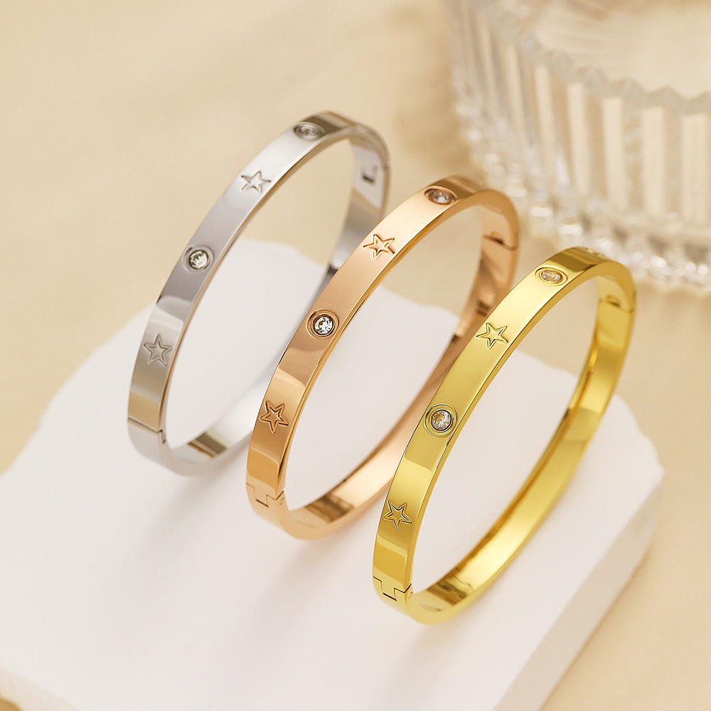Fashion Versatile Star Bracelet - Stainless Steel & Titanium Steel Zircon-Embedded Elegant Bangle for Women