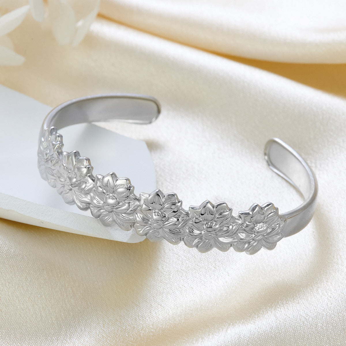 18K Gold Plated Stainless Steel Open Cuff - Euro-American Hot Selling Flower Oil-Pressed C-Shaped Bracelet Creative Stylish Temperament