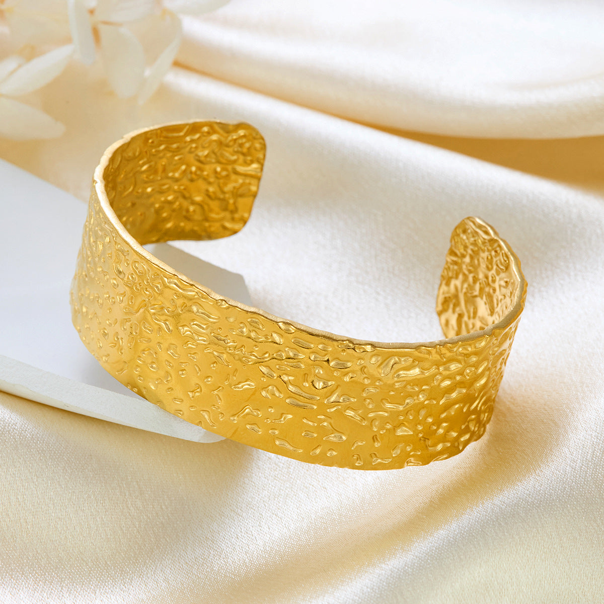 Best-Selling Wide Embossed Bracelets for EU & US Cross-Border - Retro Geometric, Stainless Steel, Unique Hammered, Open Design Jewelry