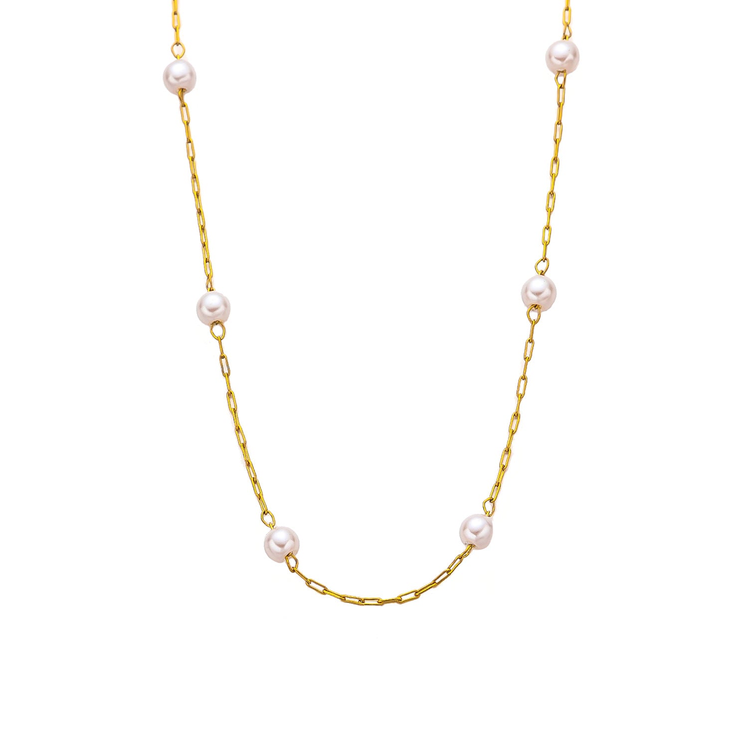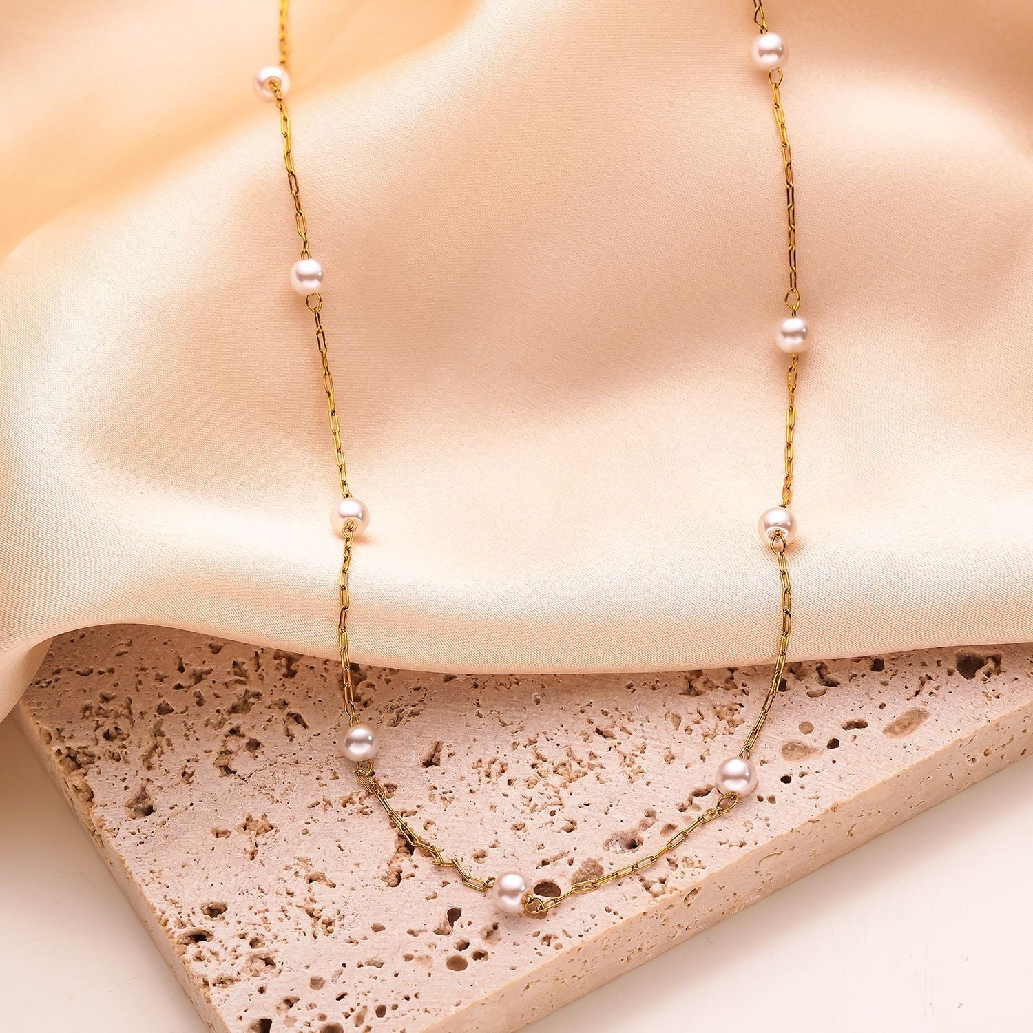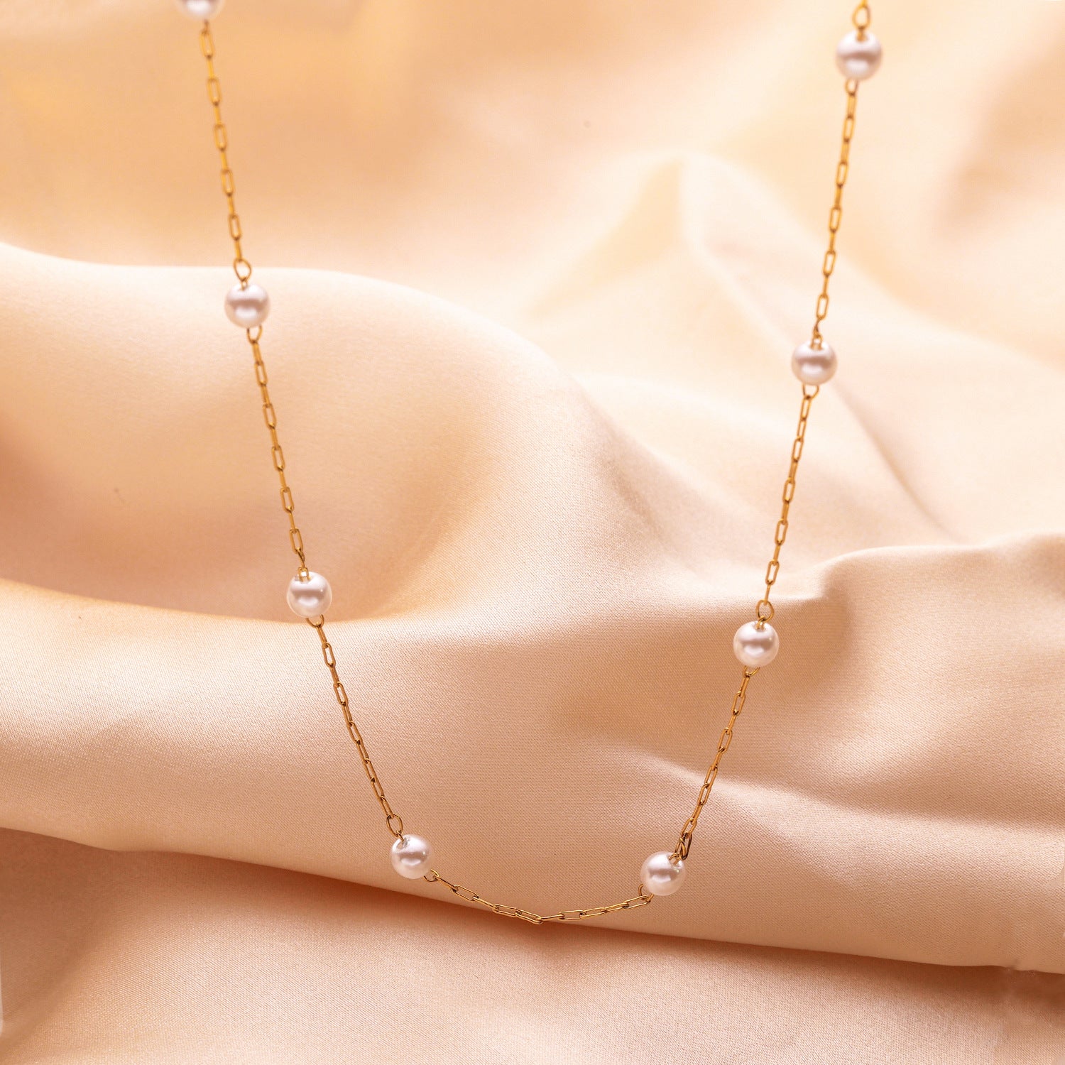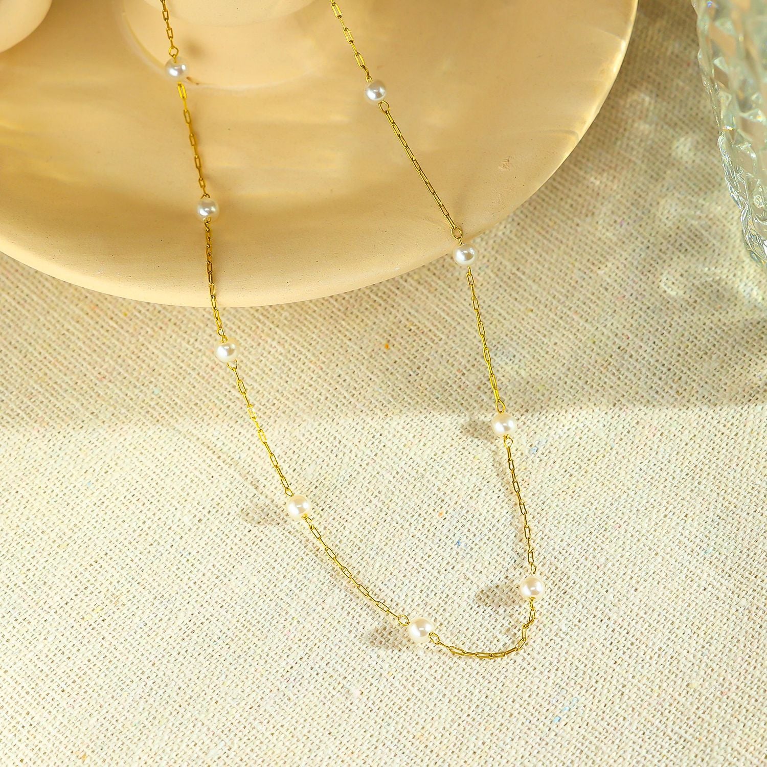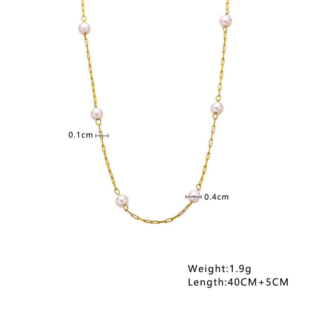 High-End Elegant Titanium Steel Necklace - Minimalist Geometric Pearl Bead Tassel Women's Jewelry