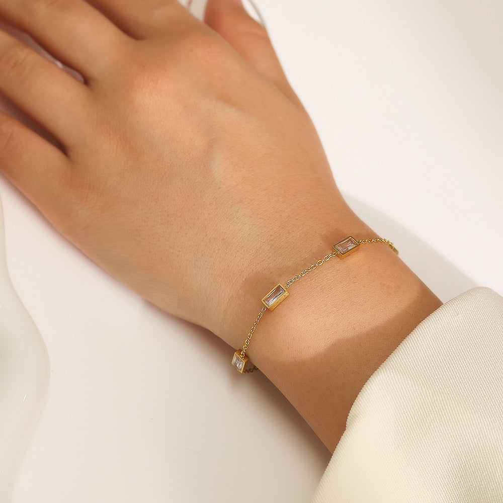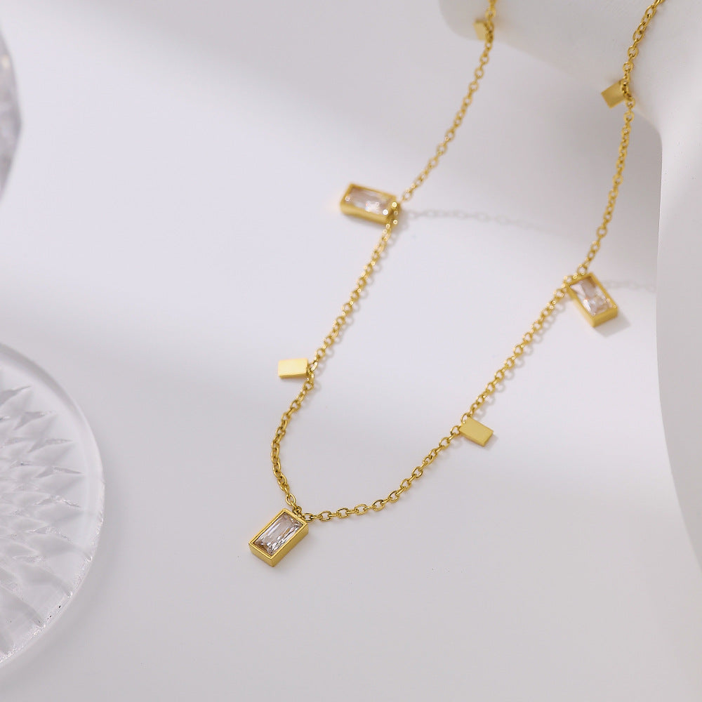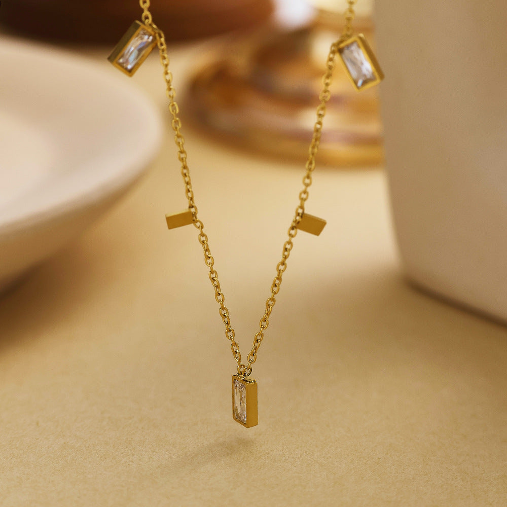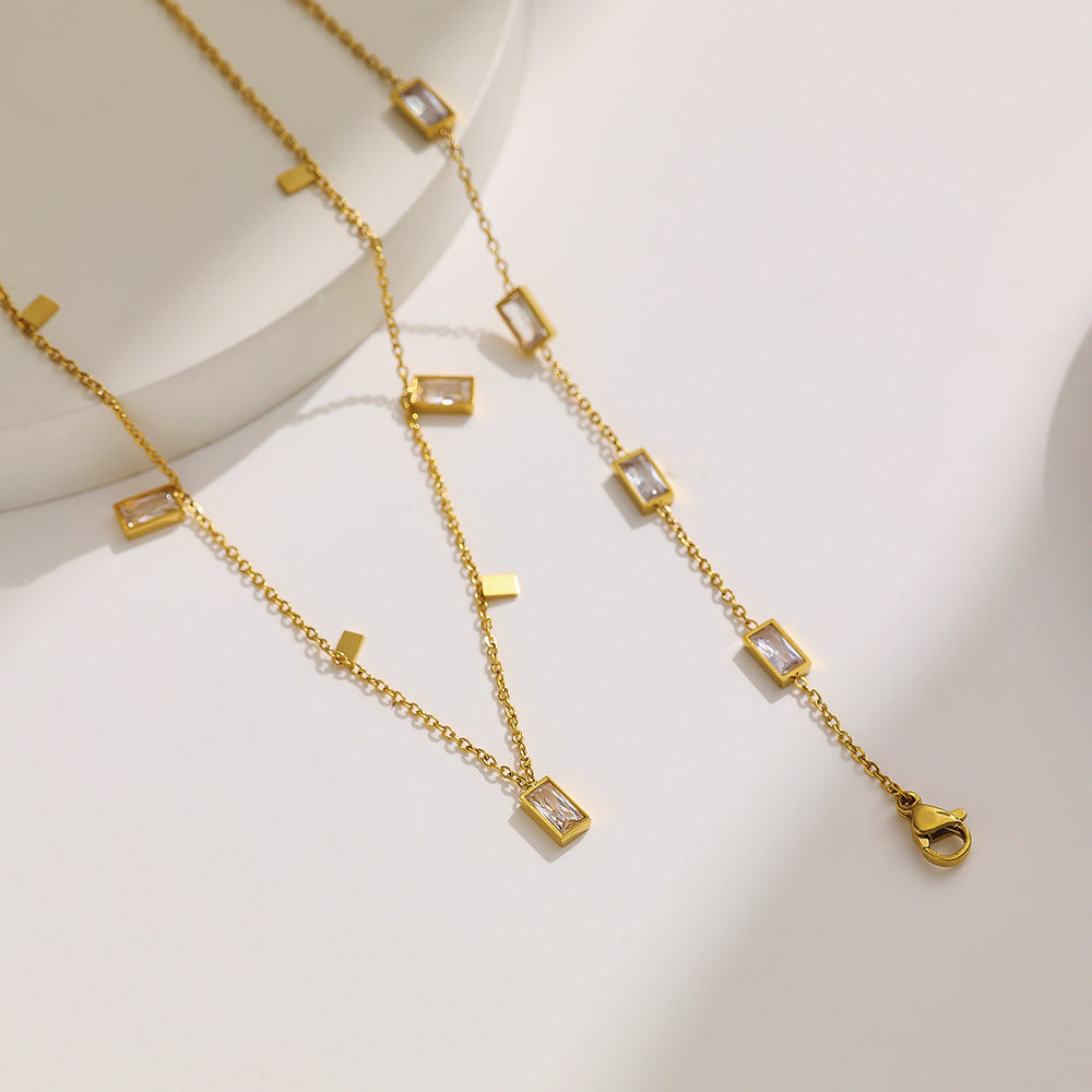 High-End European & American Collarbone Chain & Bracelet - Gold Titanium Steel Zircon-Studded Versatile Jewelry