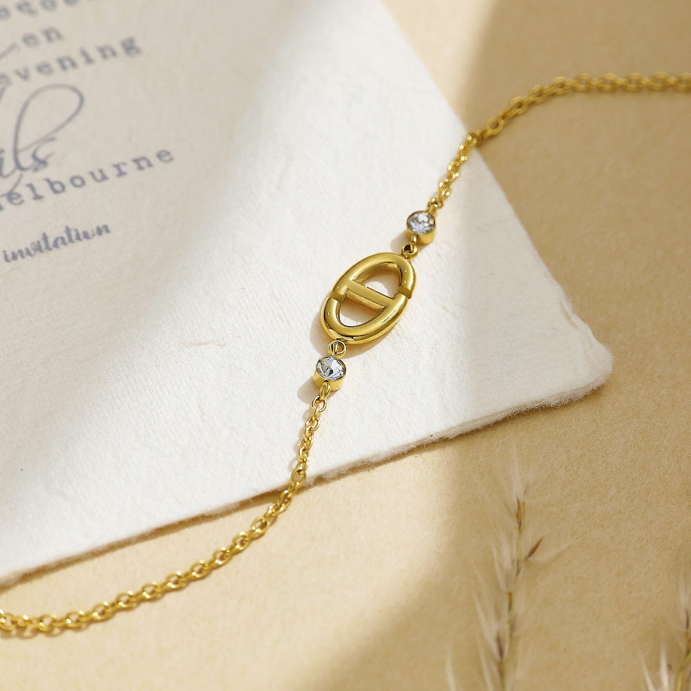 Hot-Selling INS Retro Gold Pig Nose Bracelet - Vacuum Plated Stainless Steel Titanium Steel Open Bangle for Women Wholesale