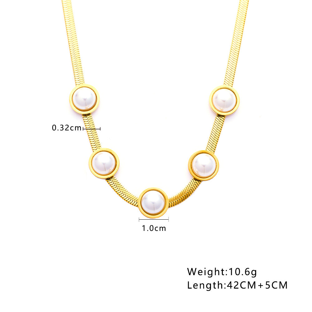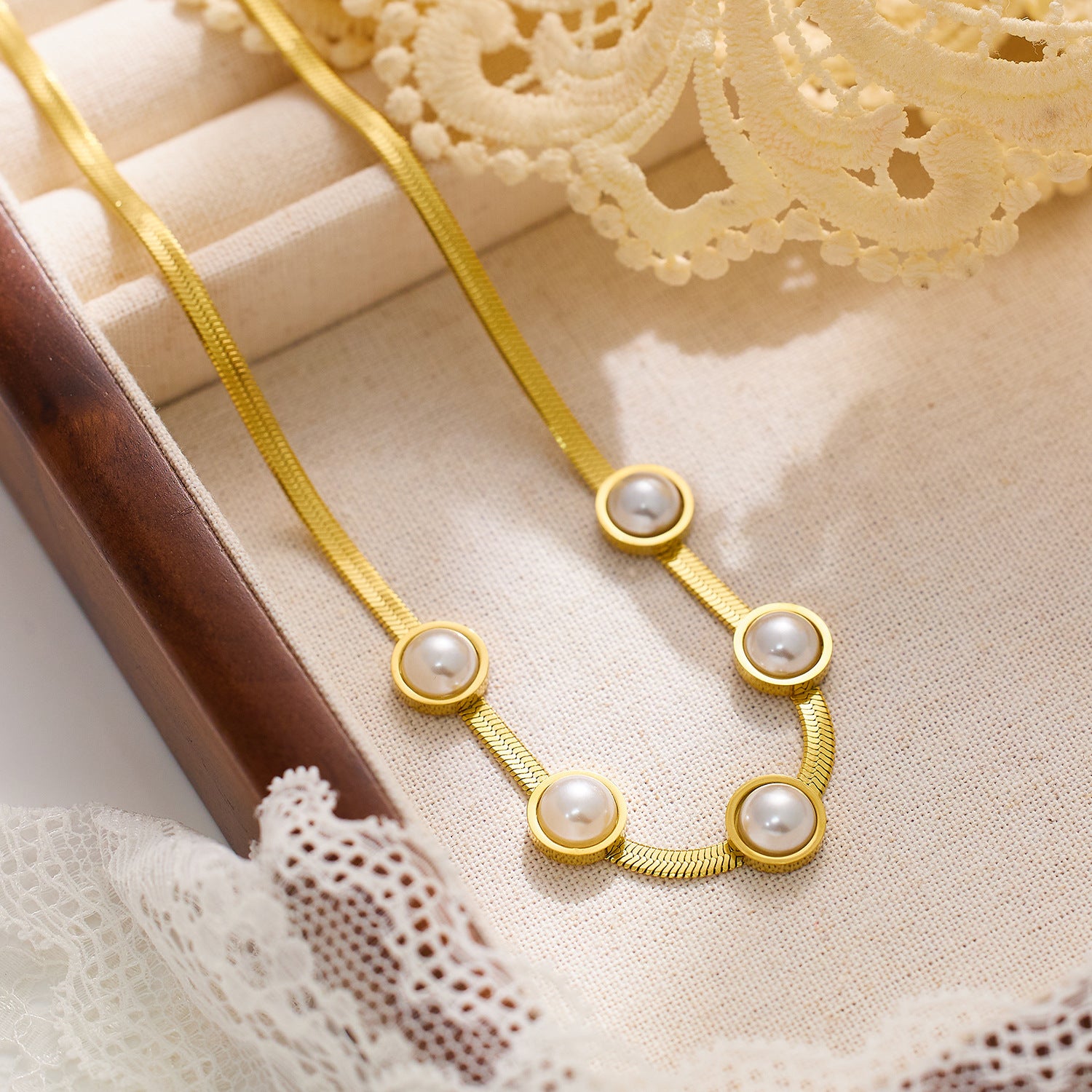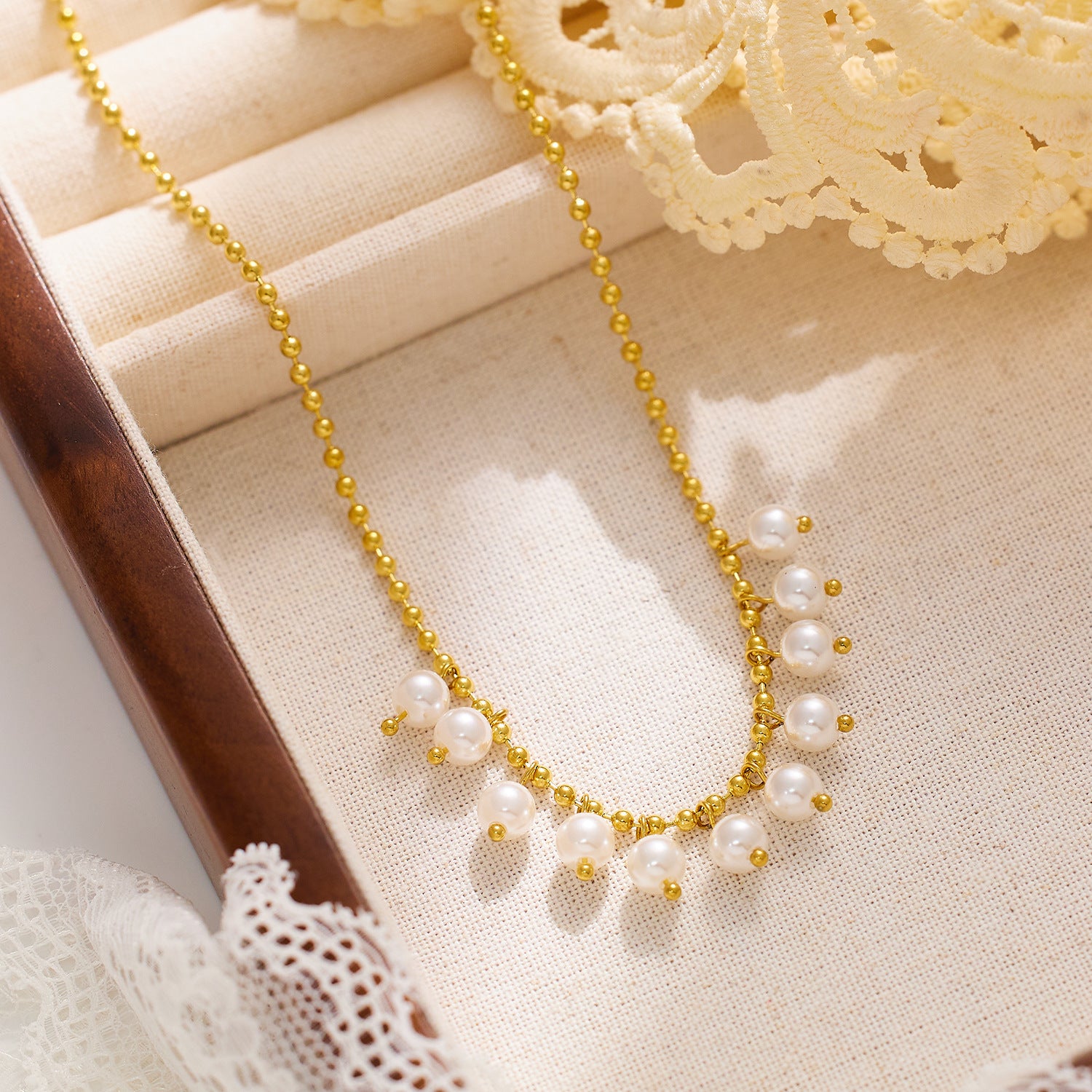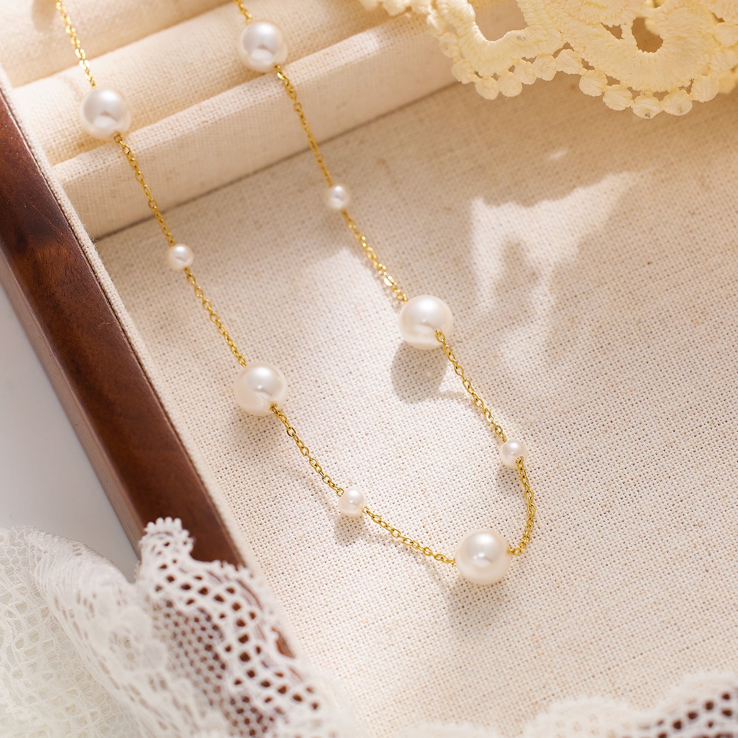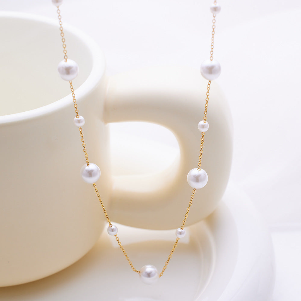 INS French Retro Style Necklace - High-End Gold-Plated Pearl Titanium Steel Sweater Chain, Light Luxury Versatile Women's Collarbone Chain