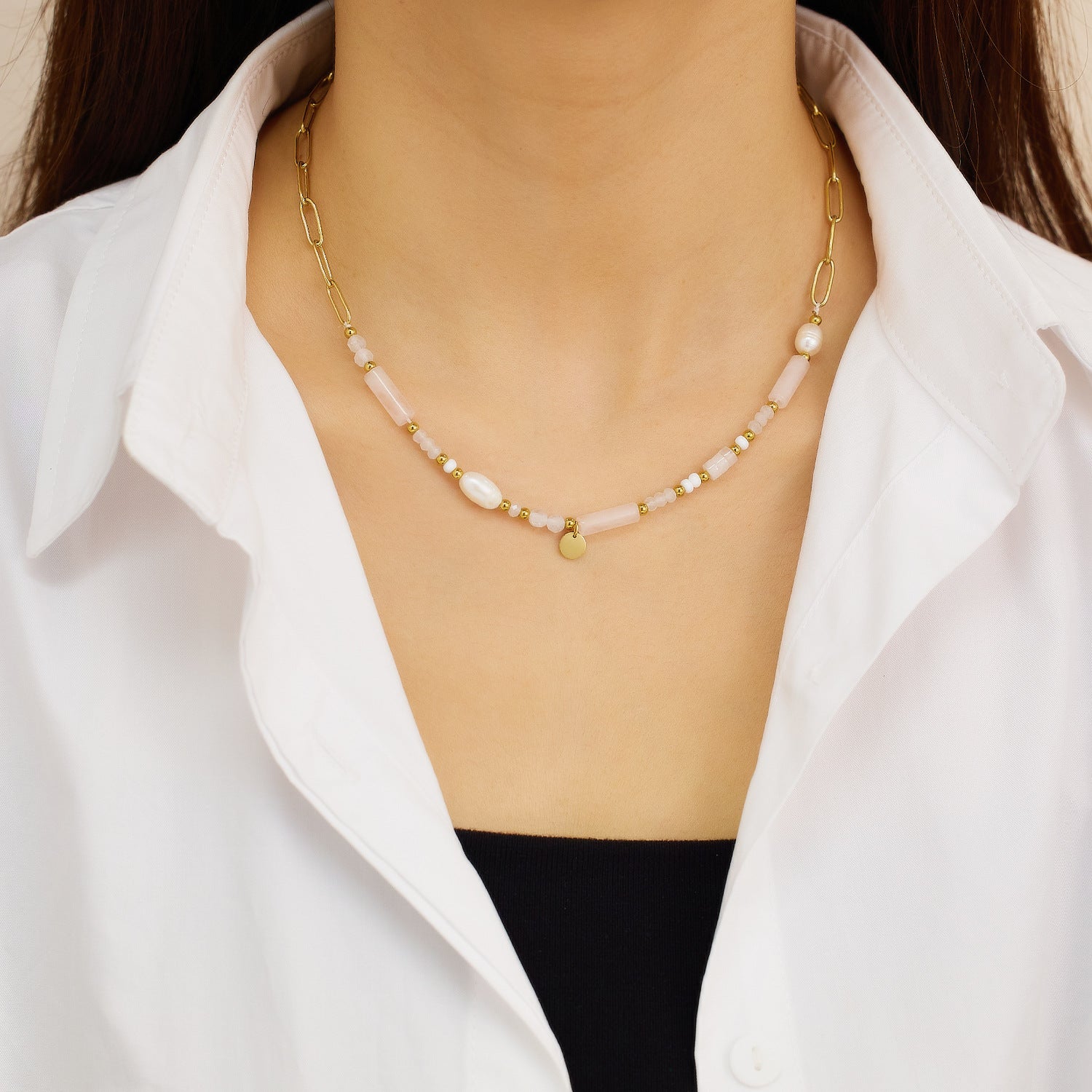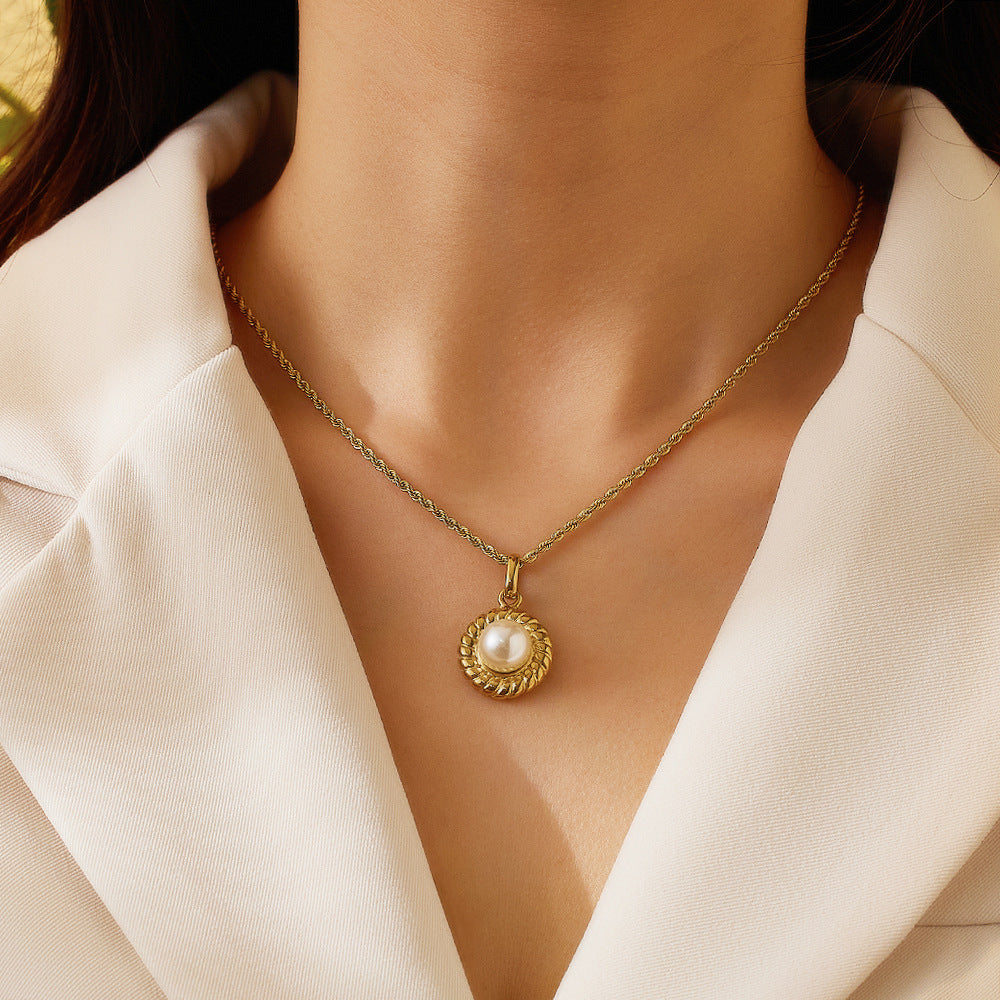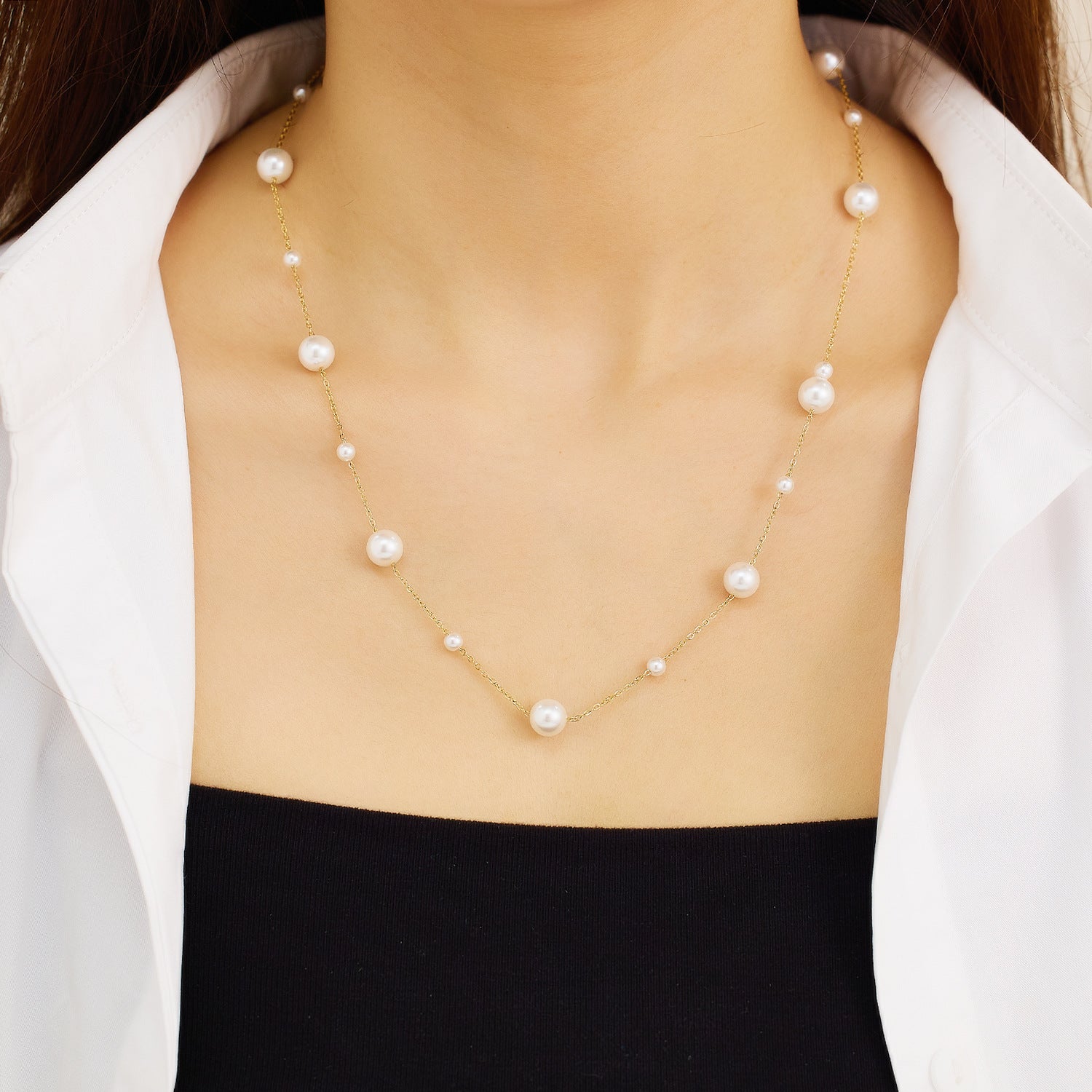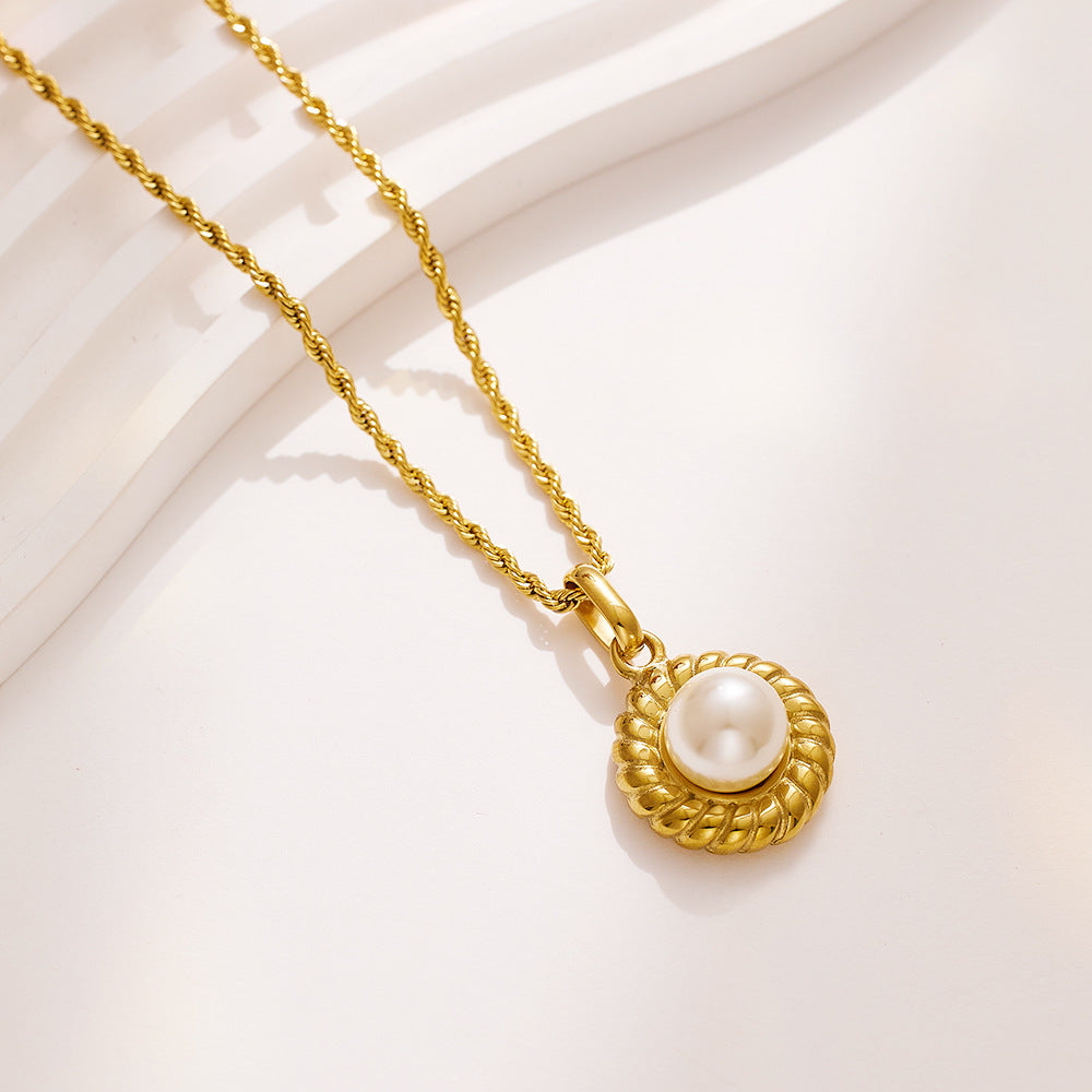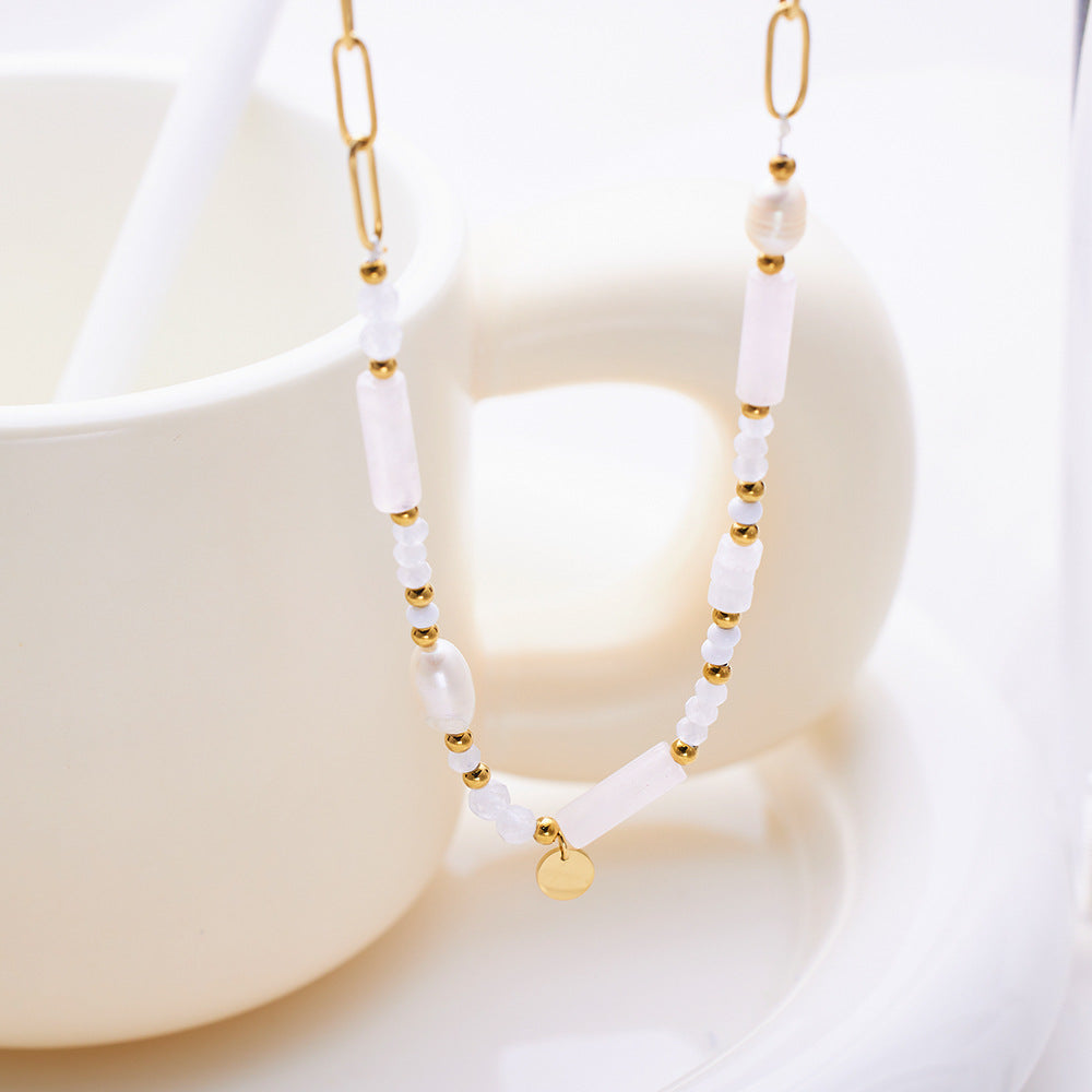 INS French Retro Style Necklace - High-End Gold-Plated Pearl Titanium Steel Sweater Chain, Light Luxury Versatile Women's Collarbone Chain
