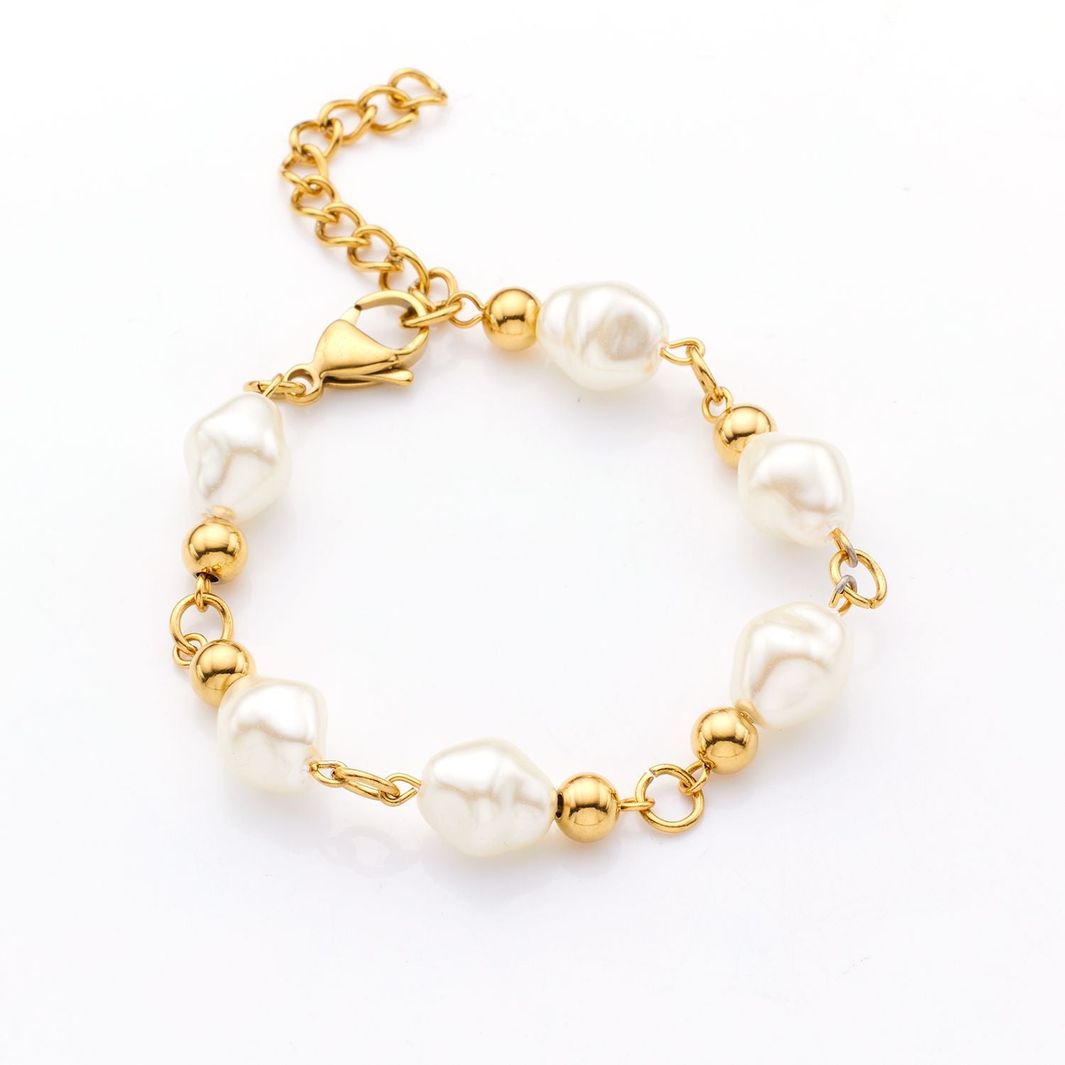 INS Hot - Selling Women's Titanium Steel Bracelet with 18K Gold - Plated Stainless Steel Chain and French - Style Pearls