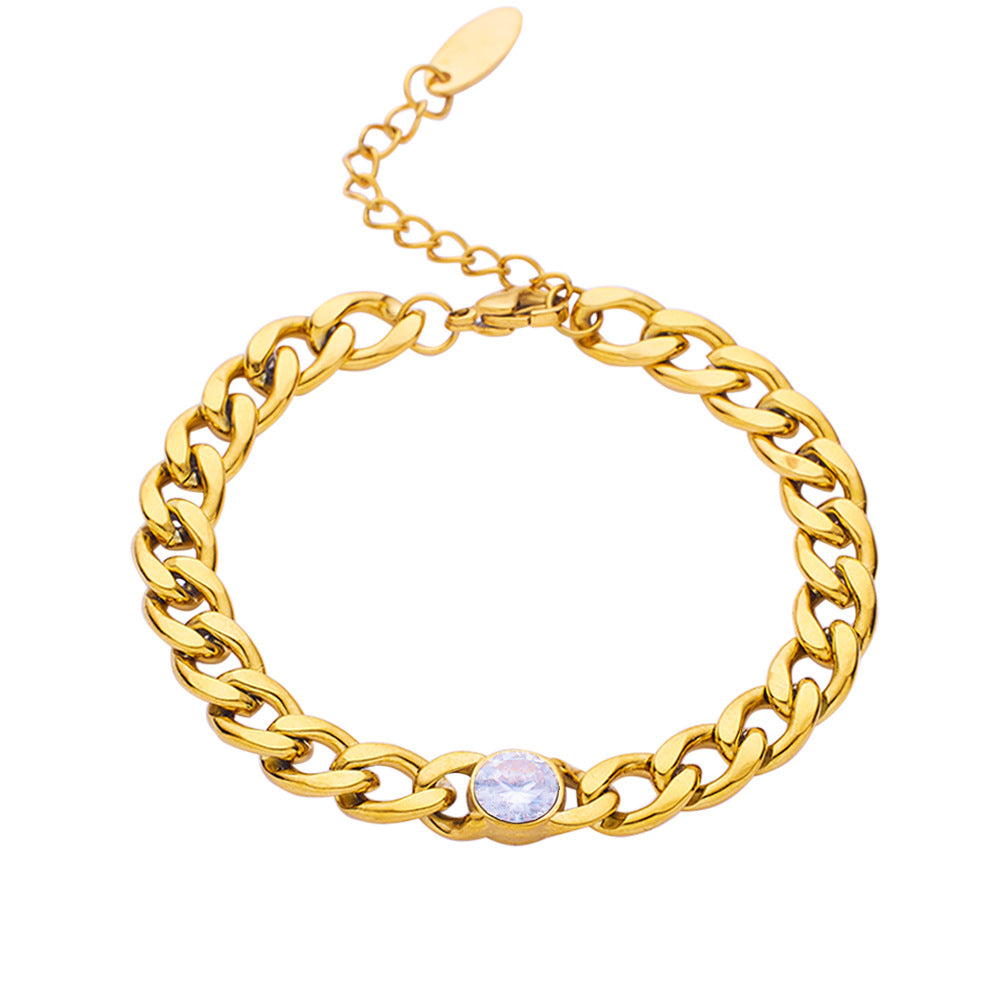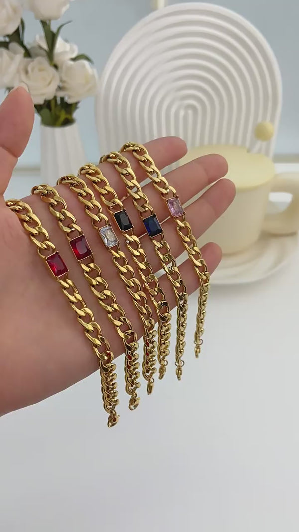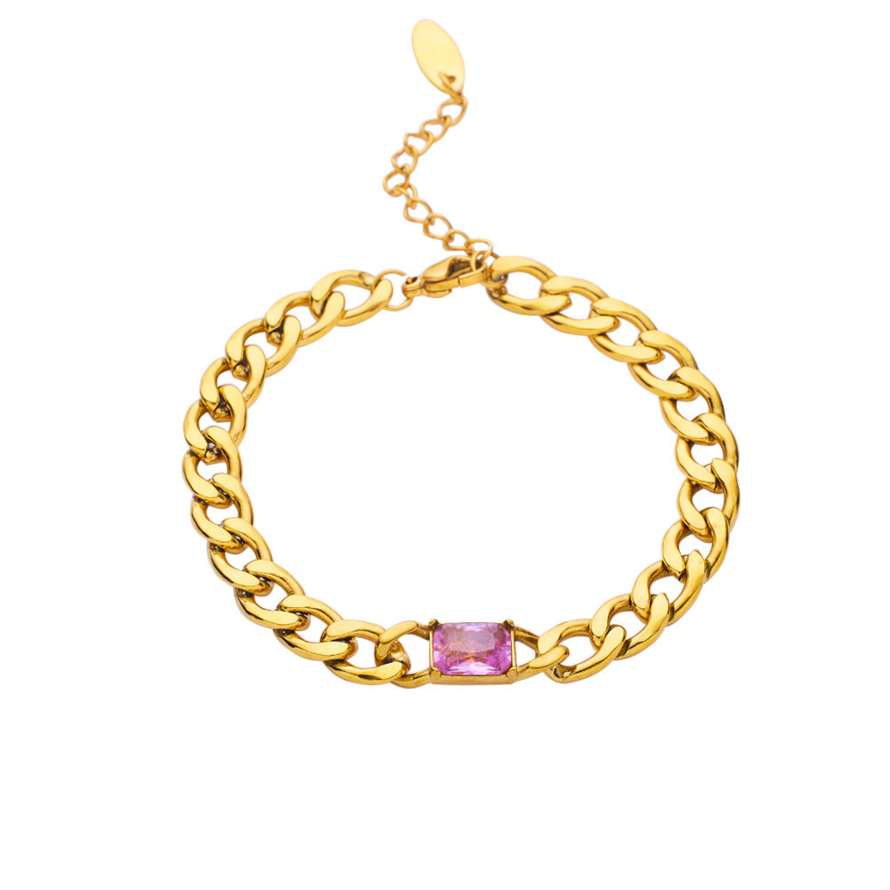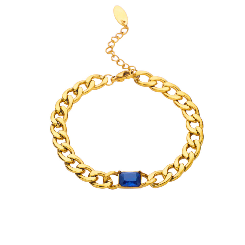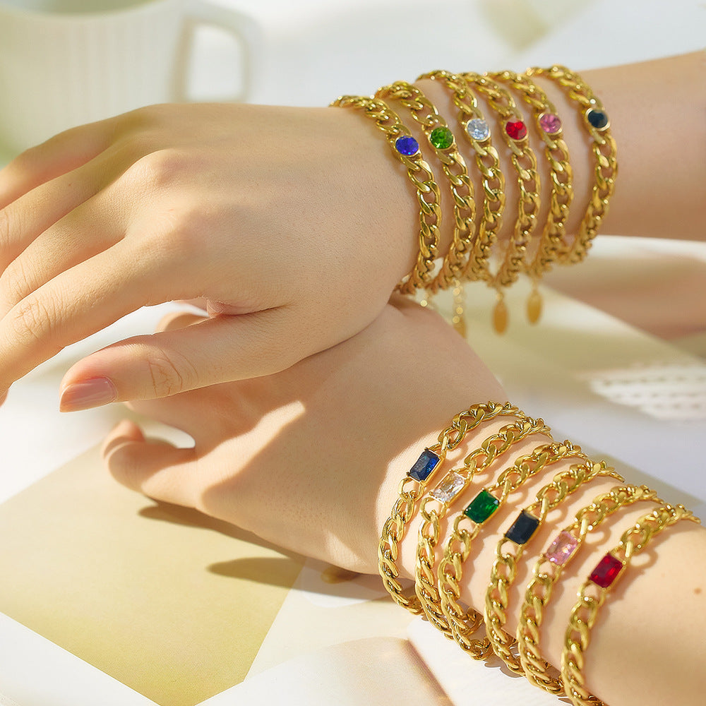 INS Retro Vibe Chunky Cuban Bracelet - Titanium Steel Square Cut Diamond & Colorful Zircon Elegant Jewelry