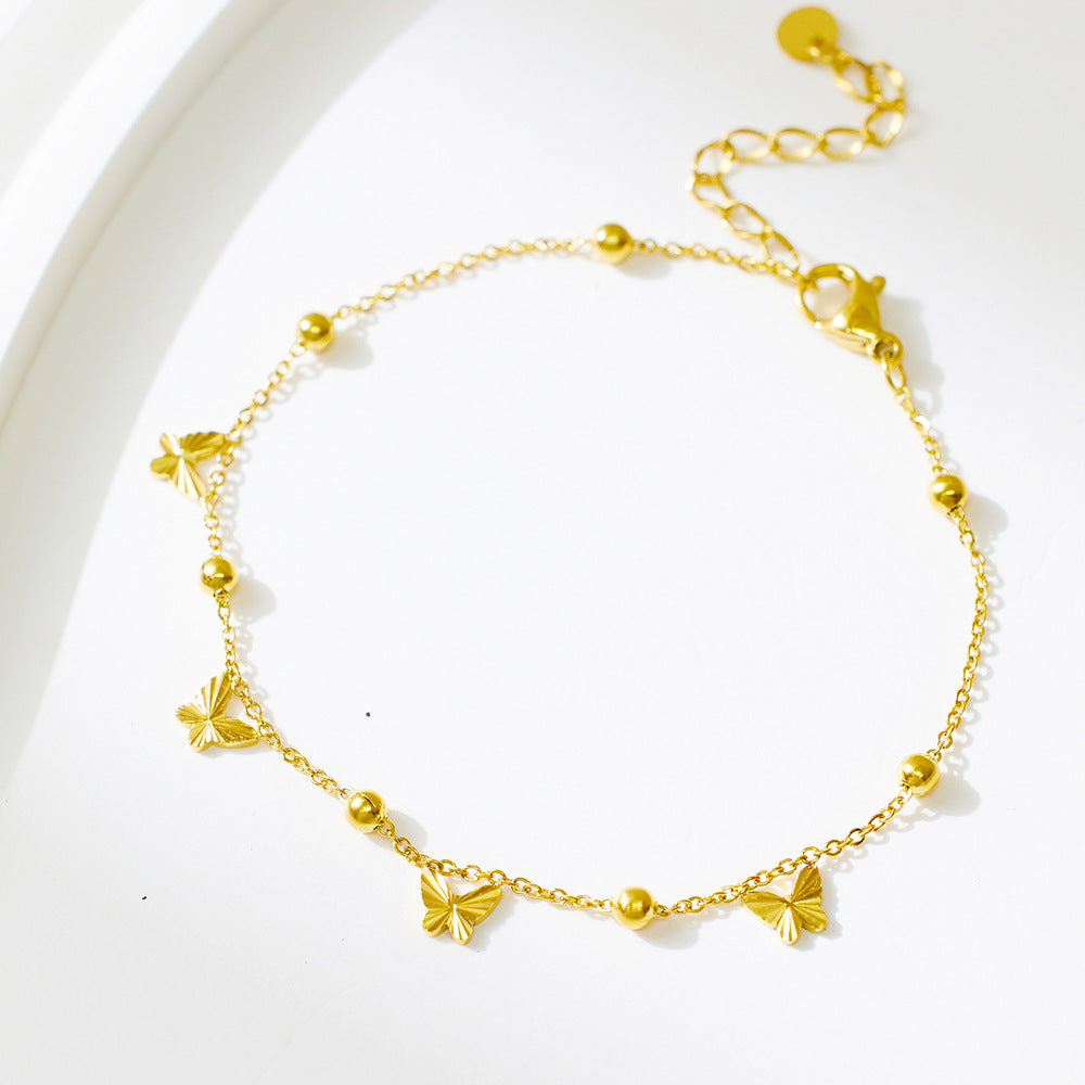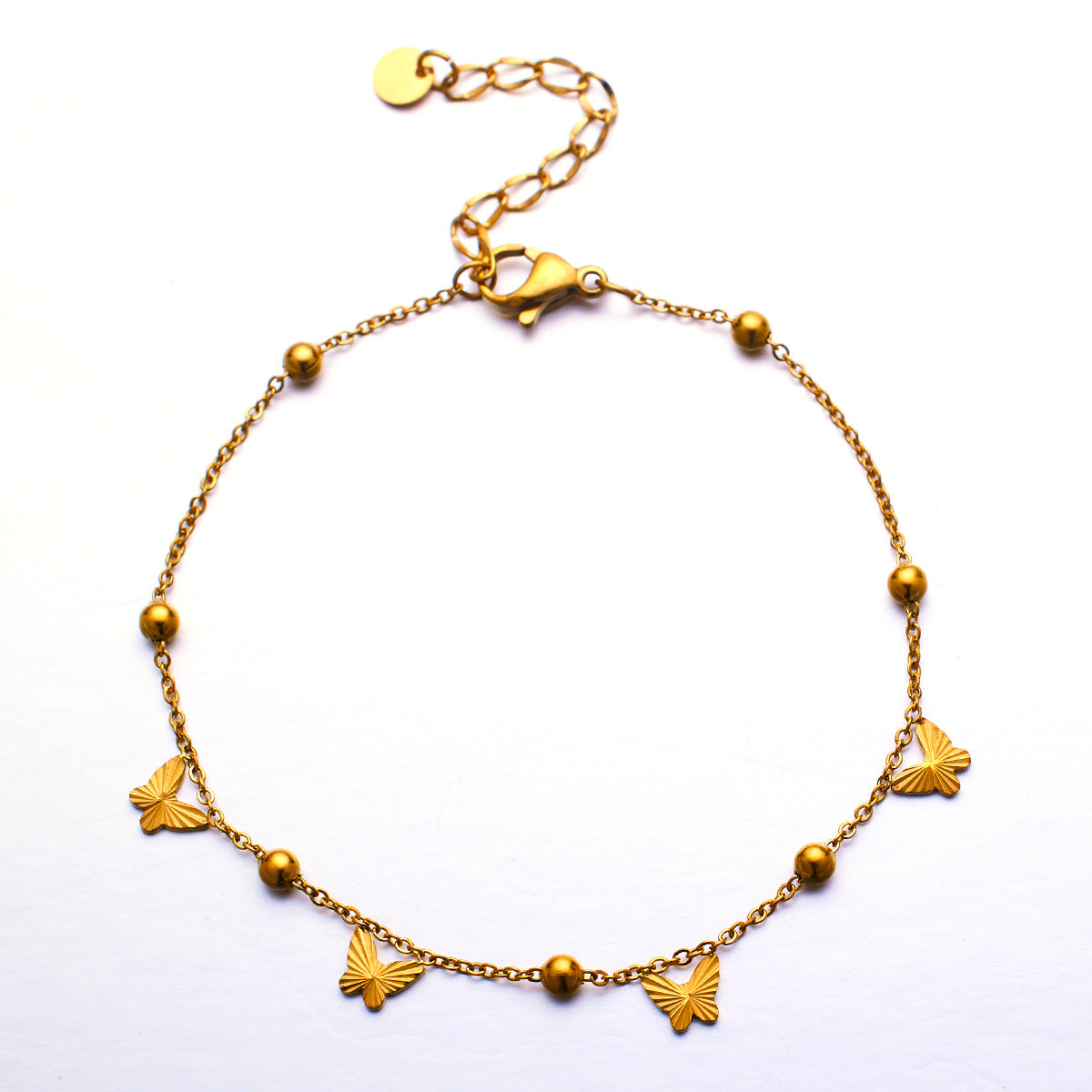 INS-Style 18K Gold-Plated Bracelet - Stainless Titanium Steel Butterfly Pendant Minimalist Bangle