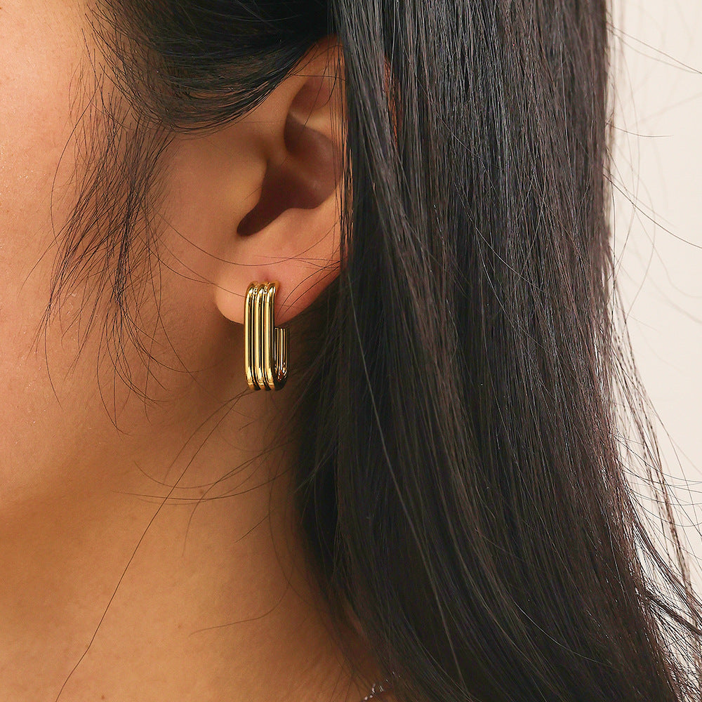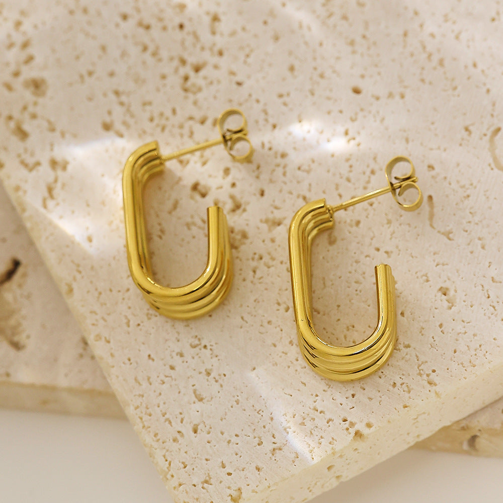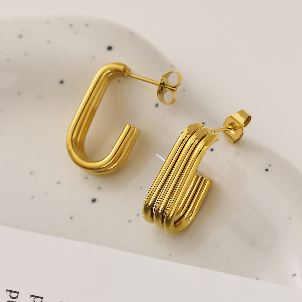 Ins Style Titanium Steel Earrings, Geometric Multi-Layer U-Shaped Minimalist Studs, Retro Unique Gold Jewelry for Wholesale Women