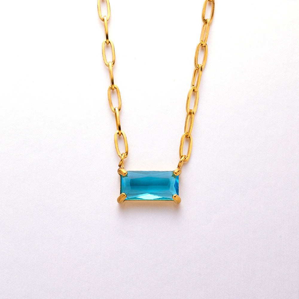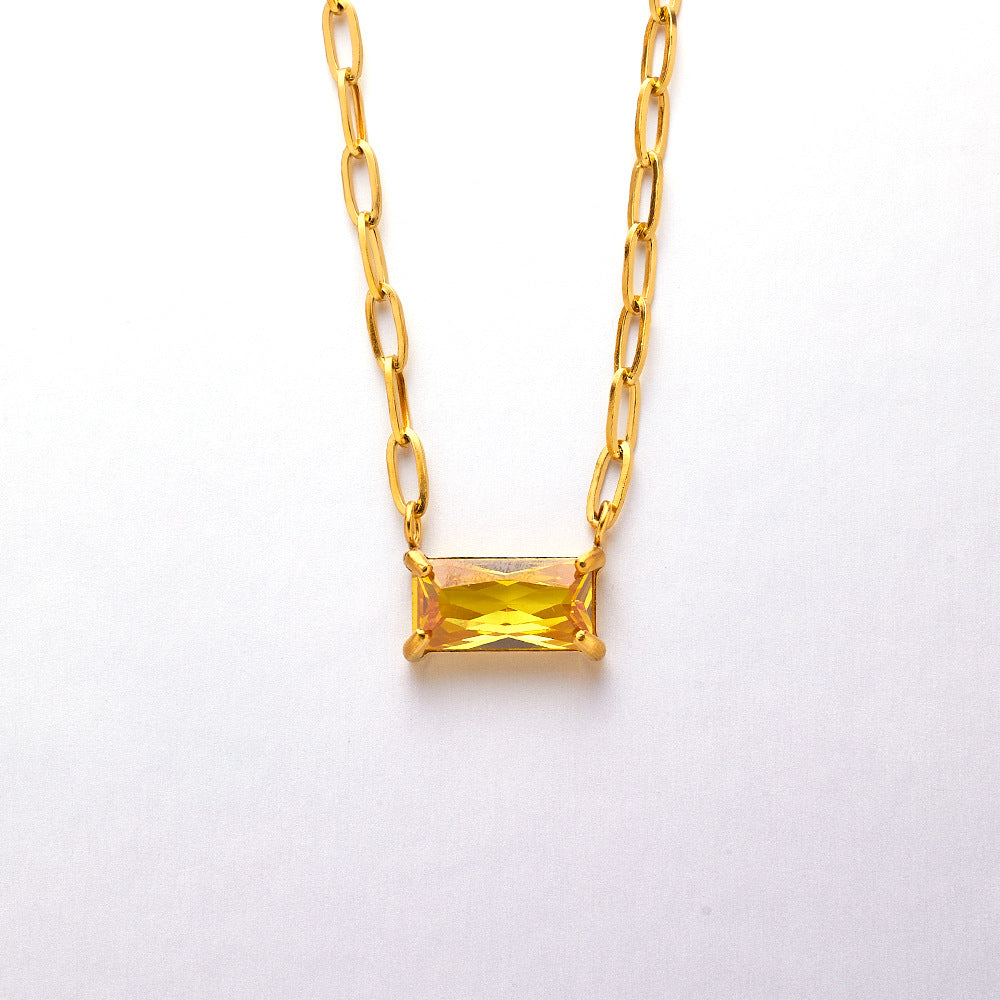 INS Vibe French Retro Necklace - Colored Sugar Cube Zircon Collarbone Chain, Light Luxury Fashion Versatile High-End Jewelry