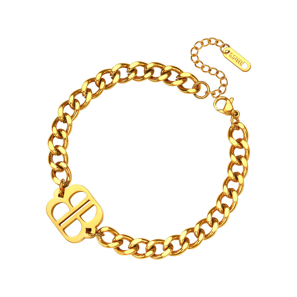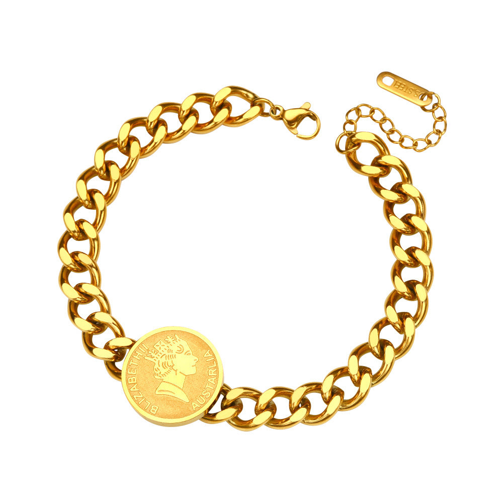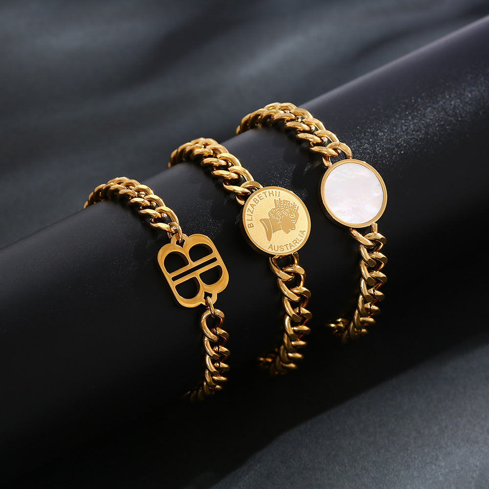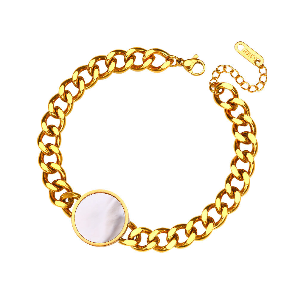 INS Vibe Gold Queen Bracelet - High-End Titanium Steel Bangle with White Mother-of-Pearl for Women